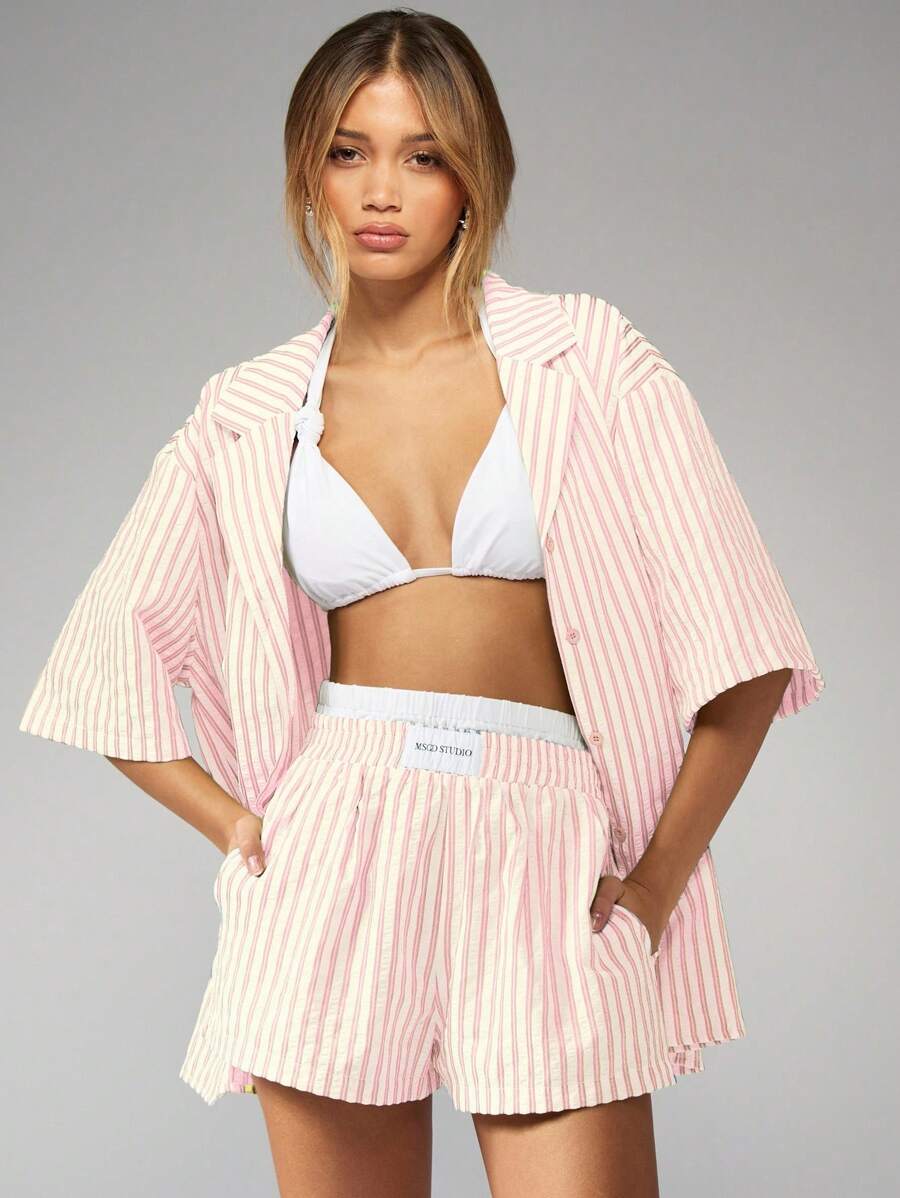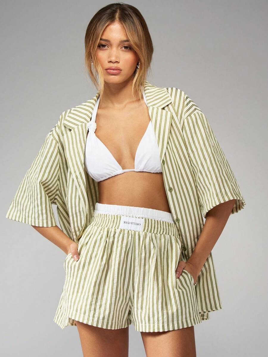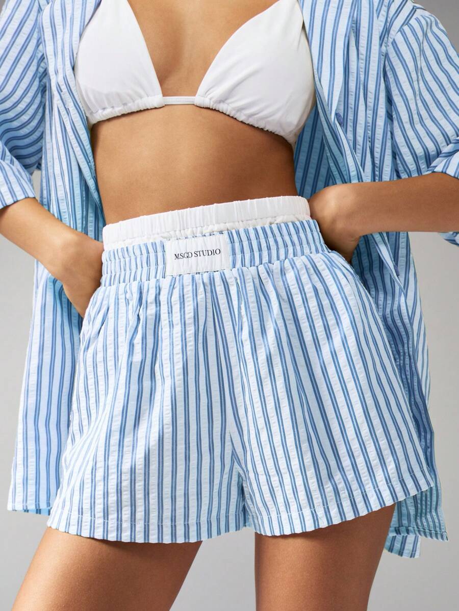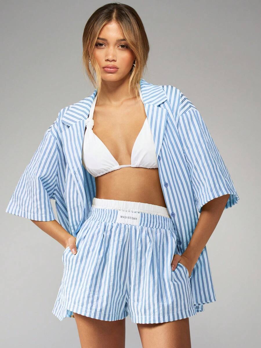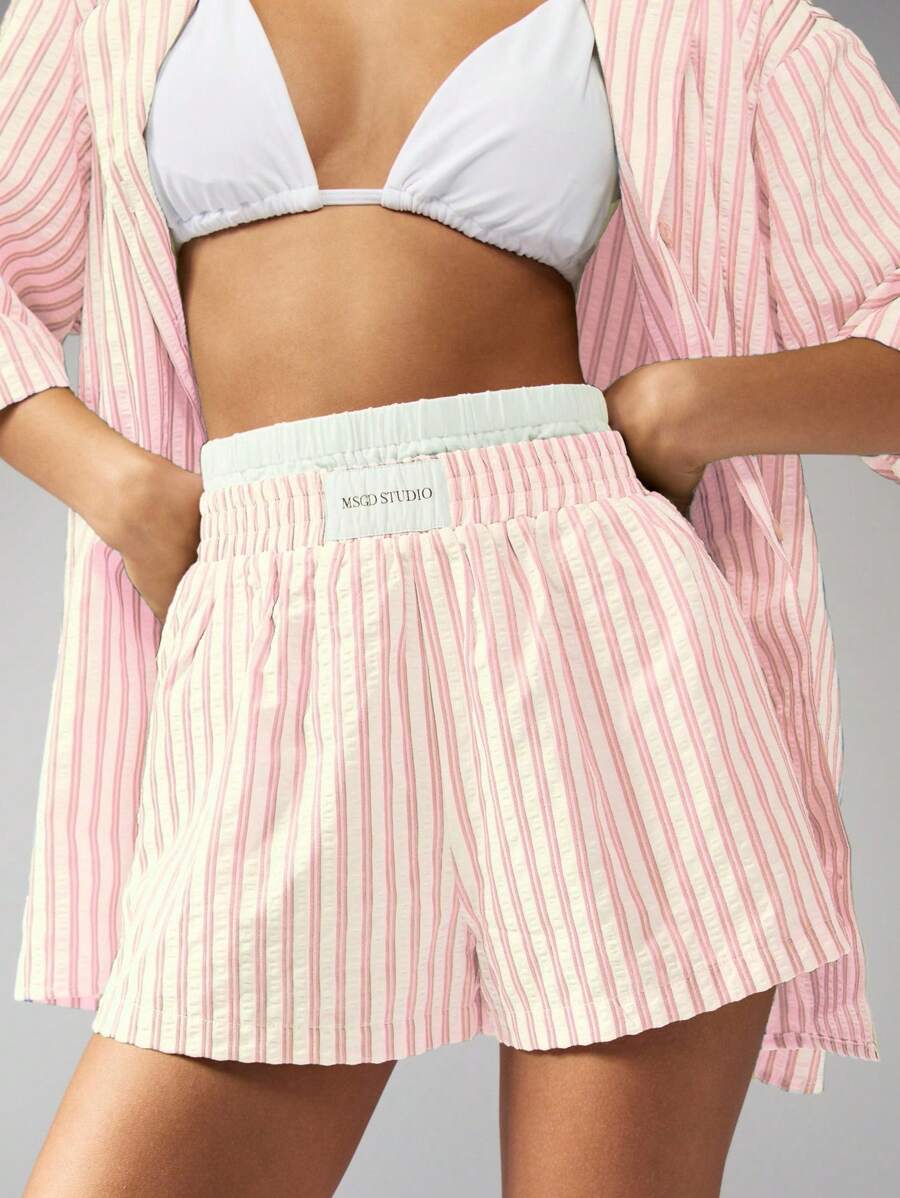 MIU Contrast Double Waistband Wide Leg Beach Shorts