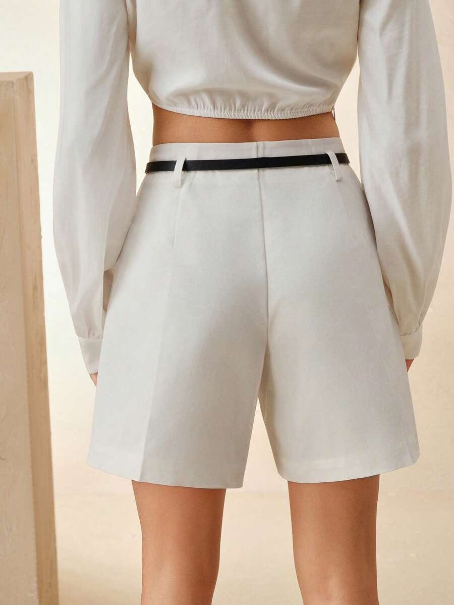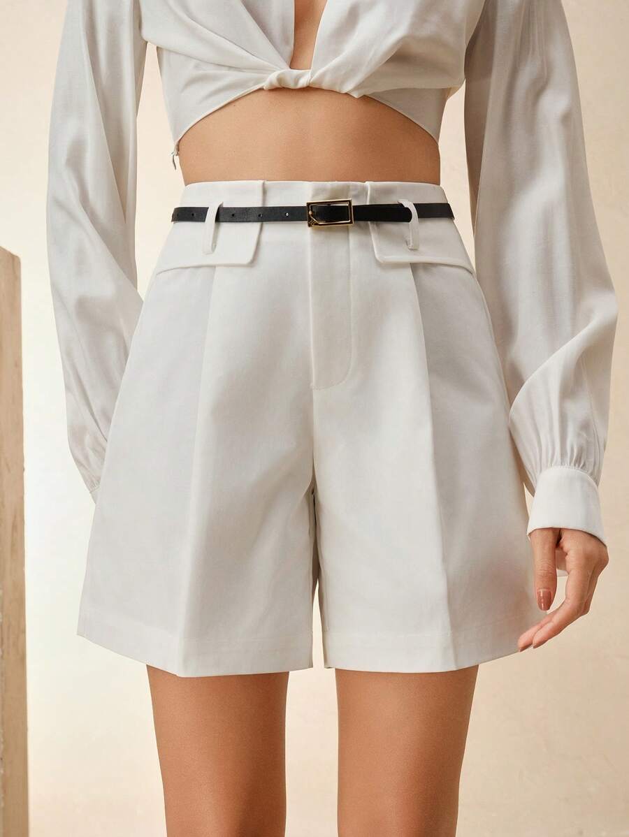 MIU Elaire A-Line Flare Shorts With Belt For Women, Modern Old Money Vacation New Years Business Casual Outfit