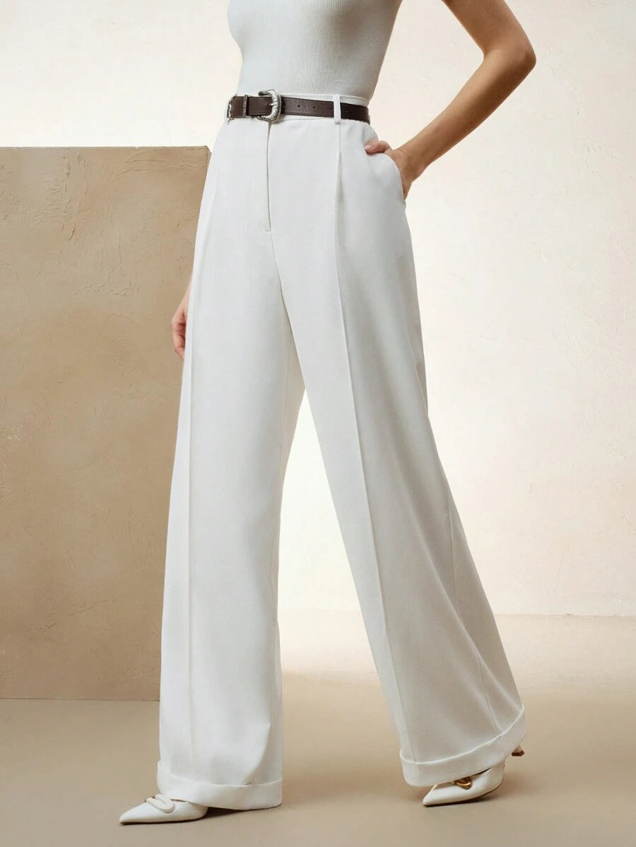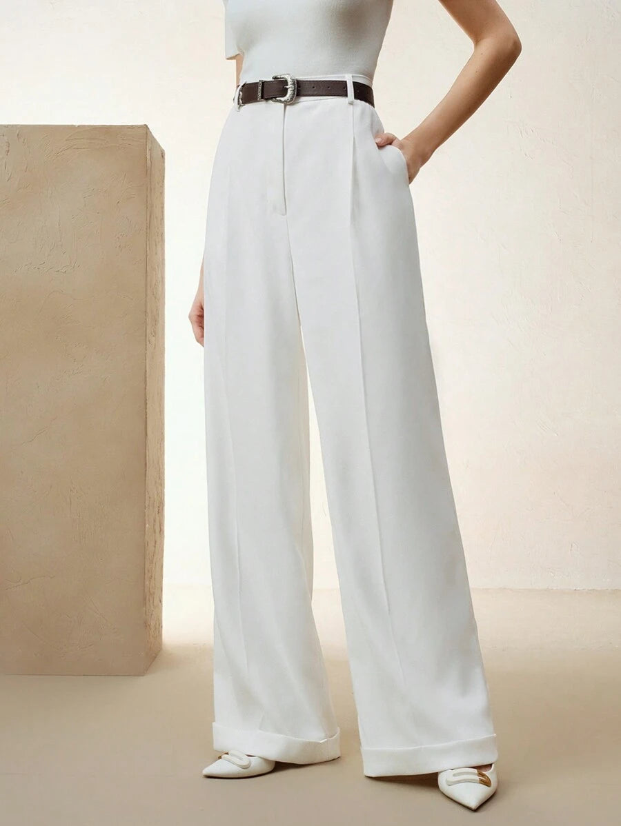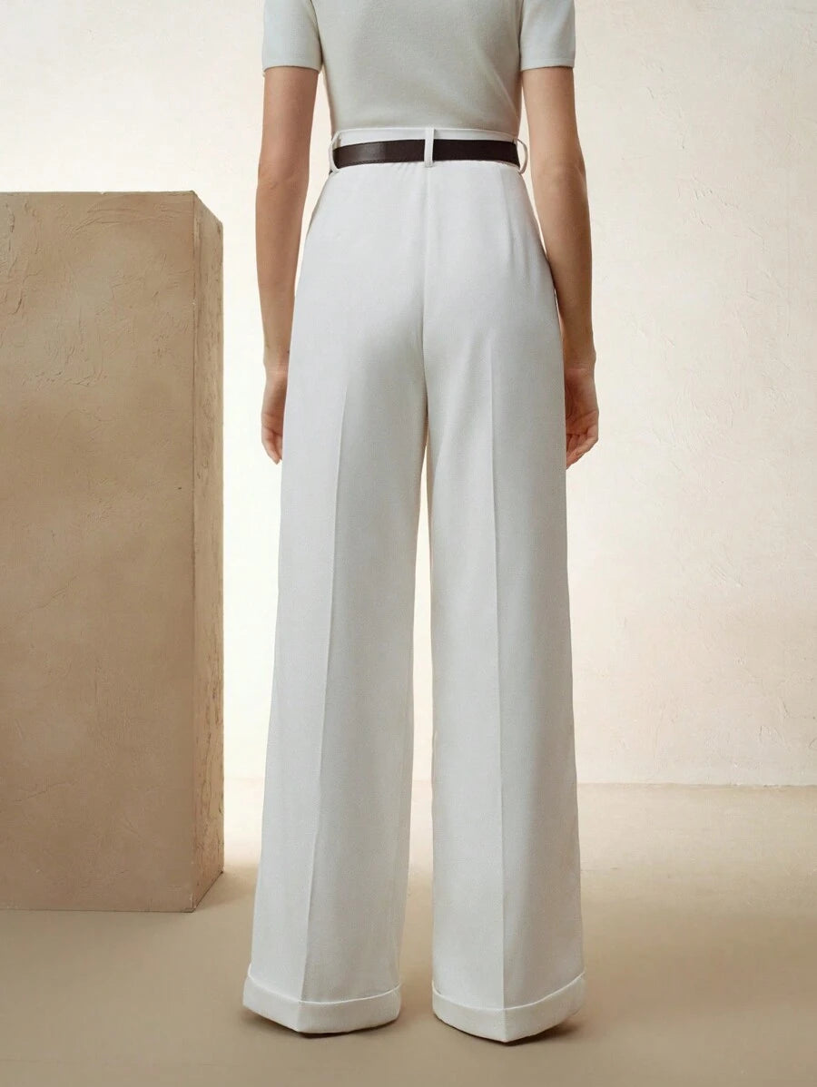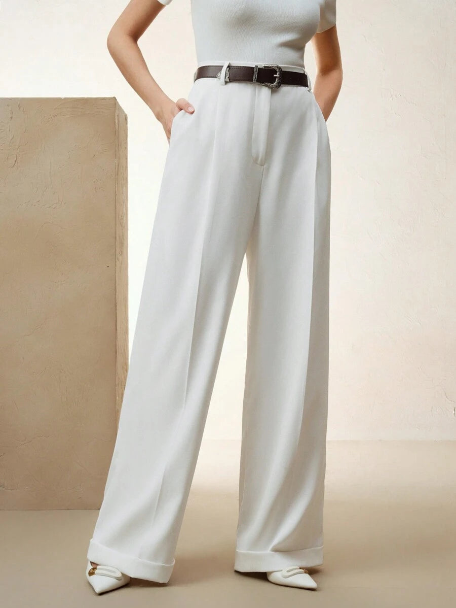 MIU Elaire Casual Straight Suit Pants White High Waist Slim With Belt Ladies Suit Pants Old Money