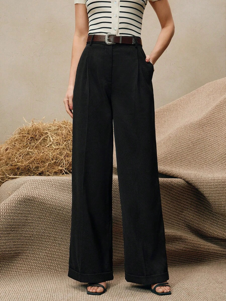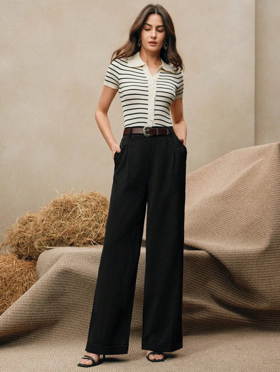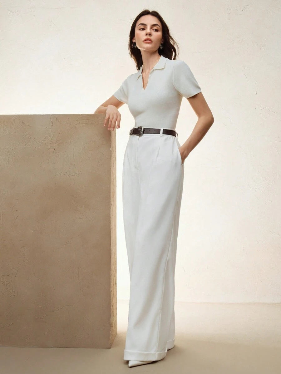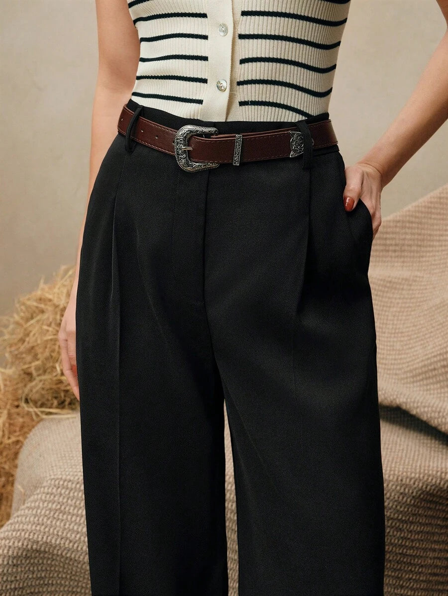 MIU Elaire Casual Straight Suit Pants White High Waist Slim With Belt Ladies Suit Pants Old Money
