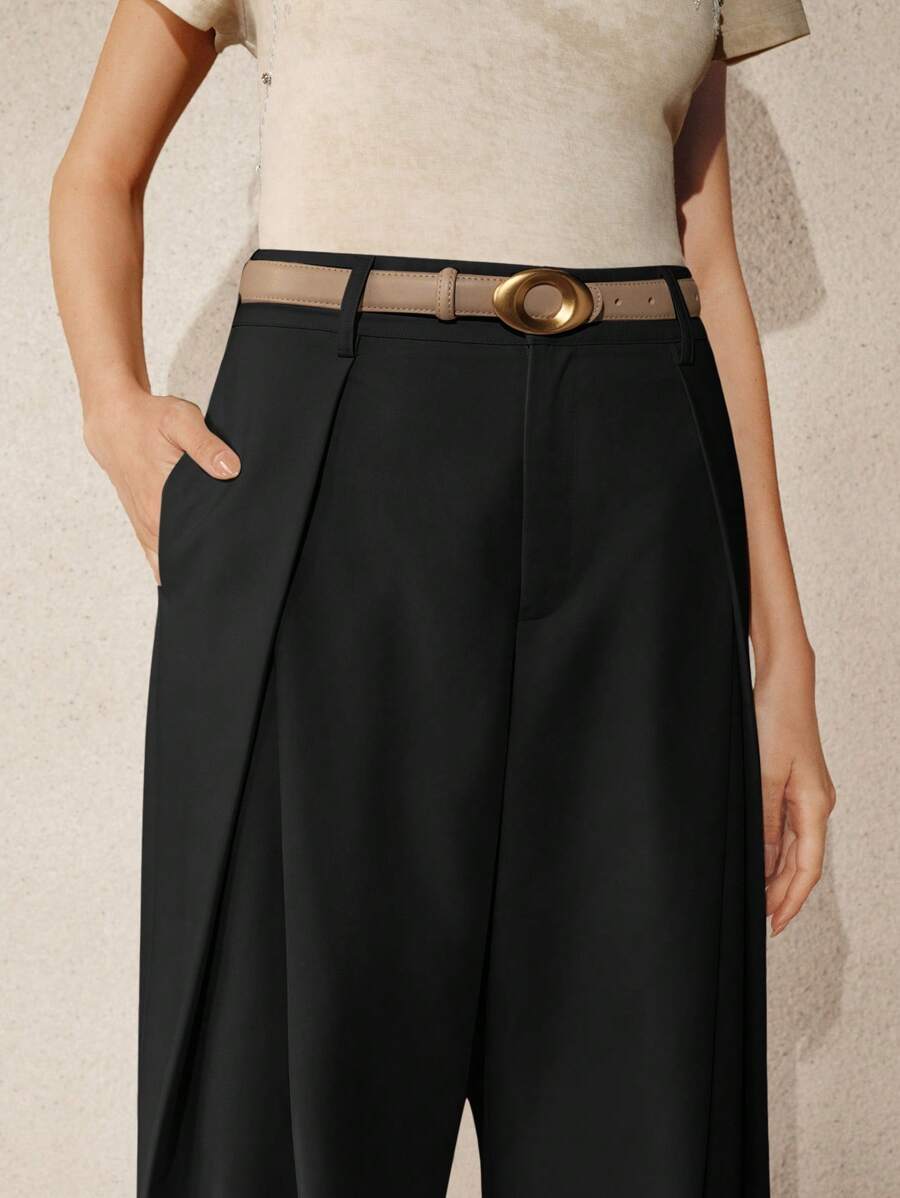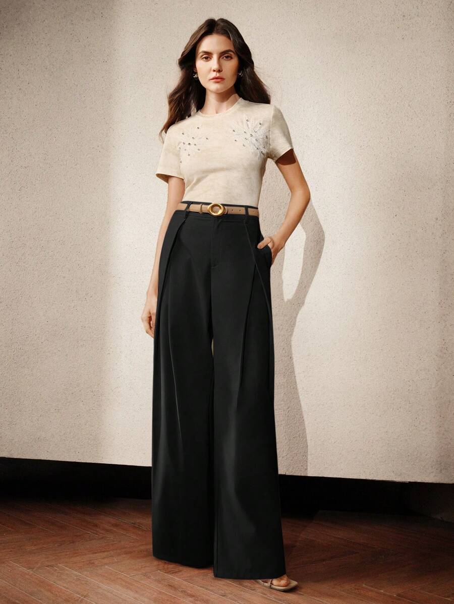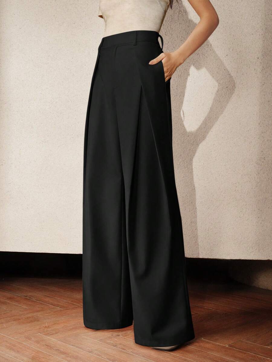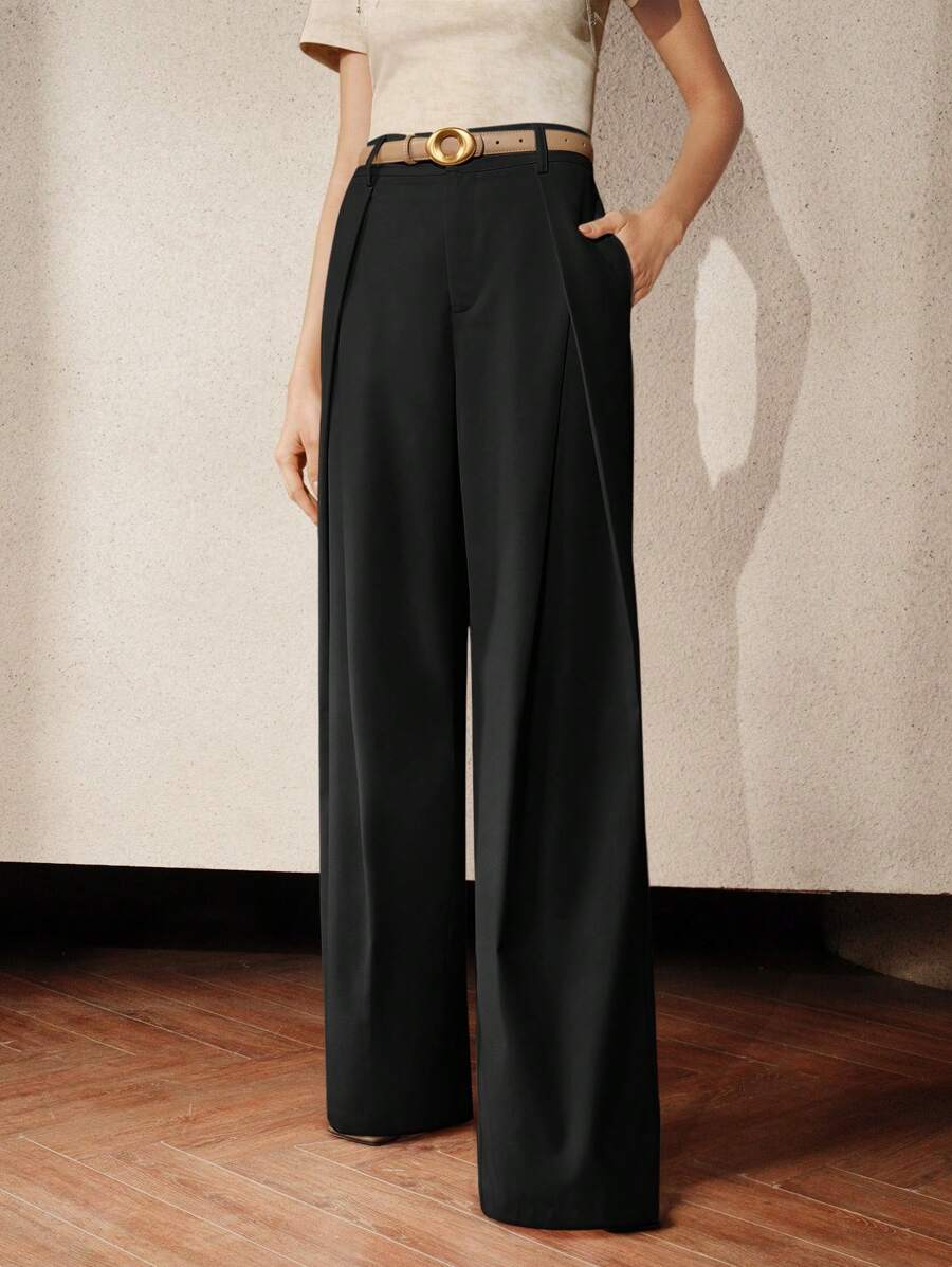 MIU Elaire Women's High Waist Pleated Casual Wide Leg Suit Pants Old Money