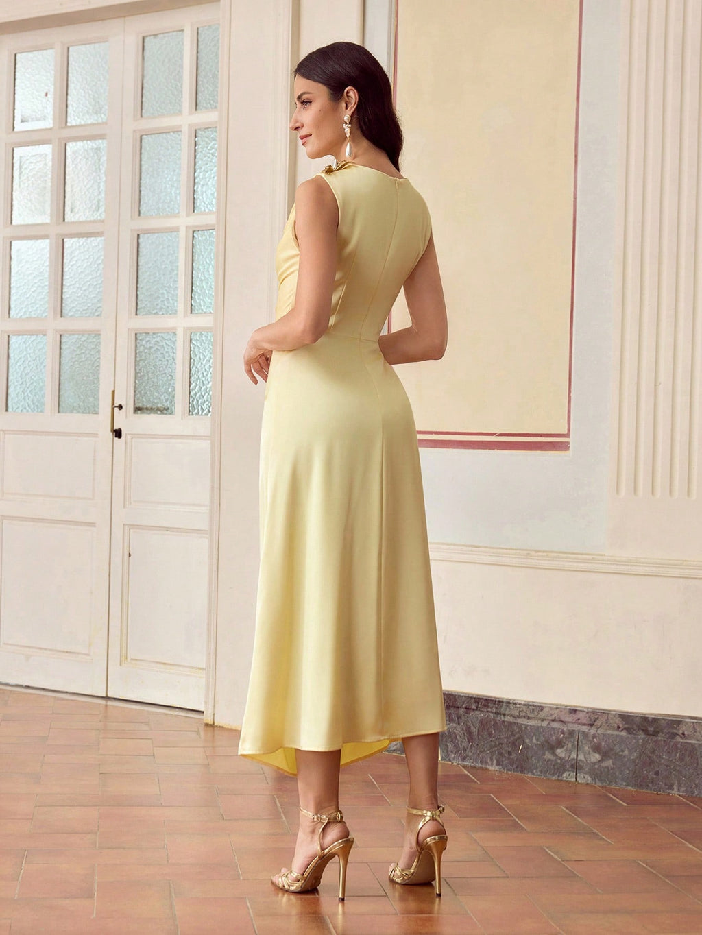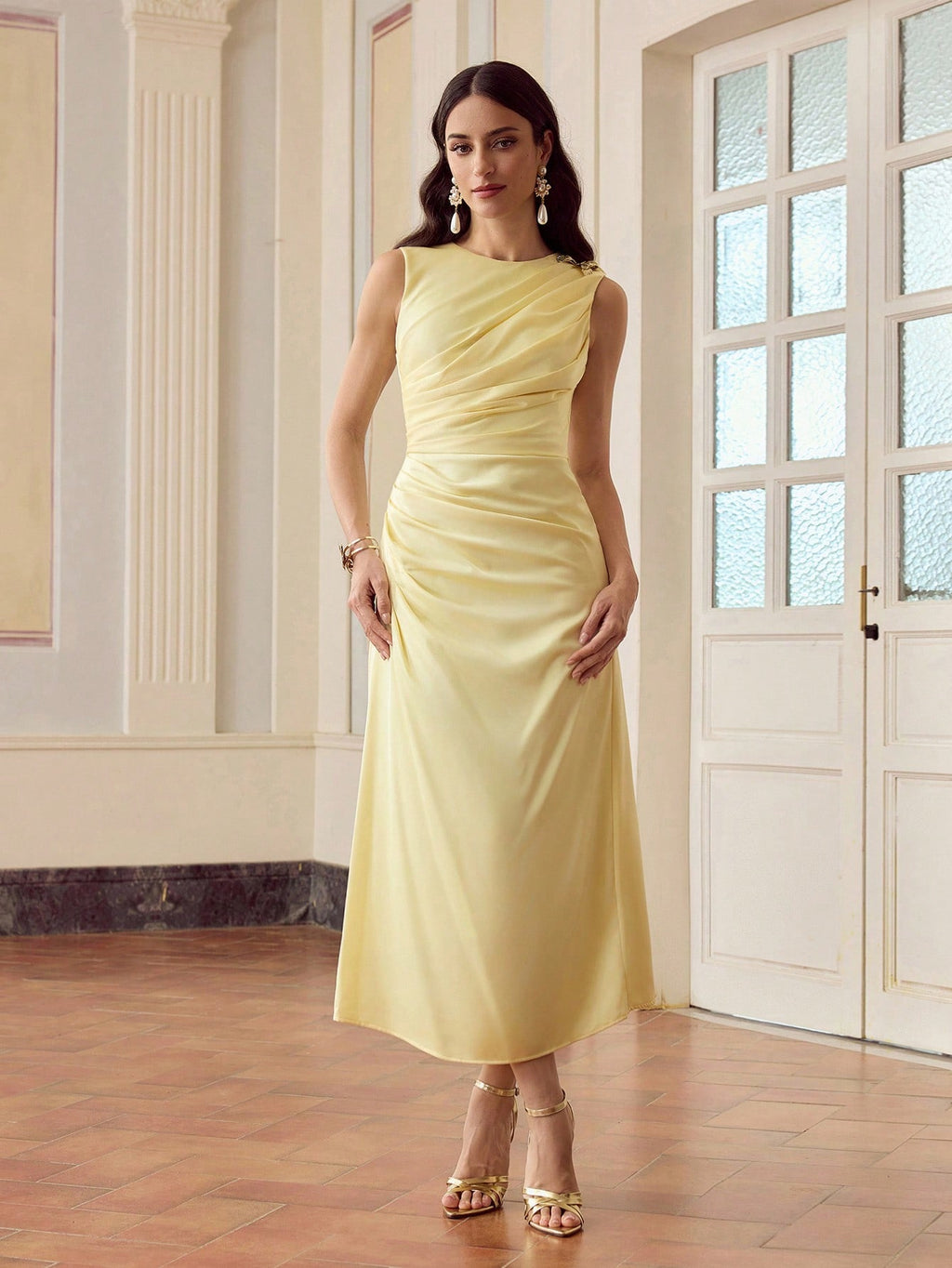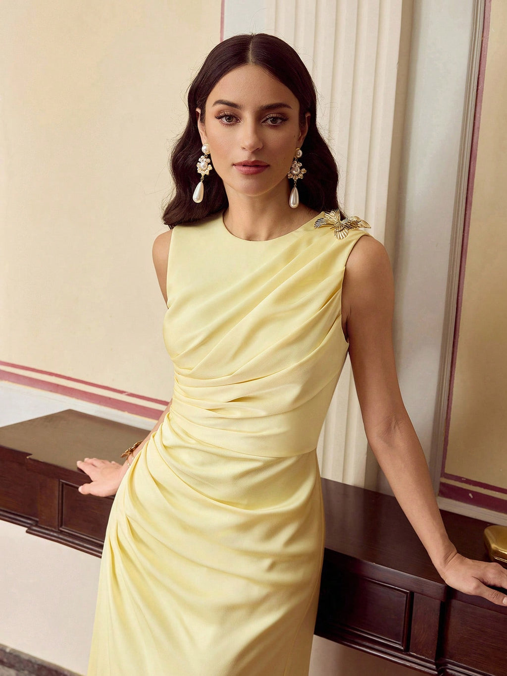 MIU ELEGANT BUTTERFLY DETAIL FOLD PLEATED MIDI DRESS FOR DATING AND EVERYDAY WEAR