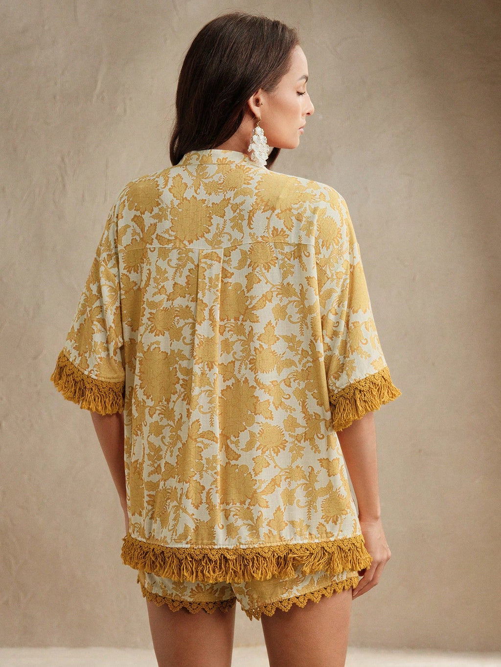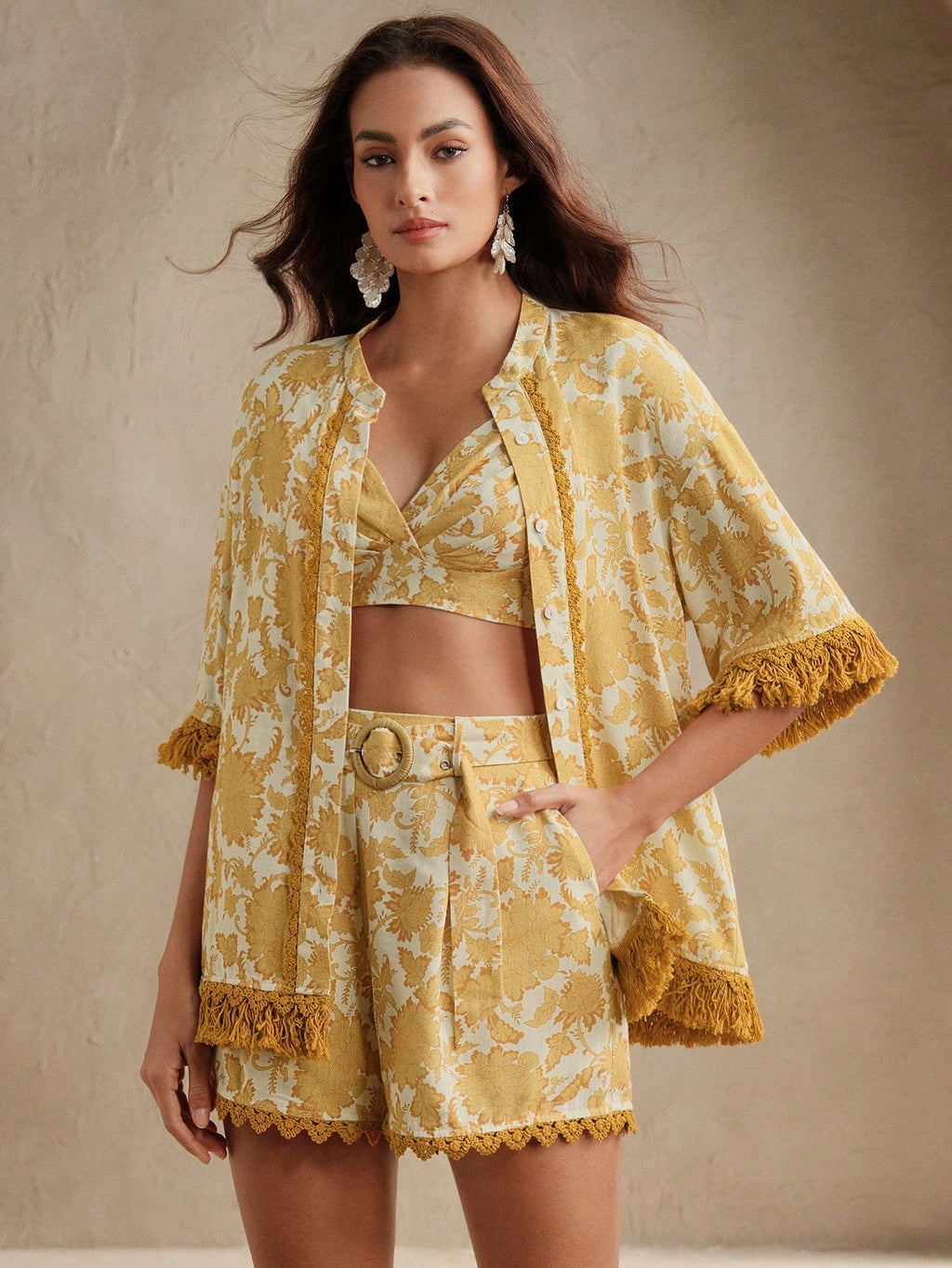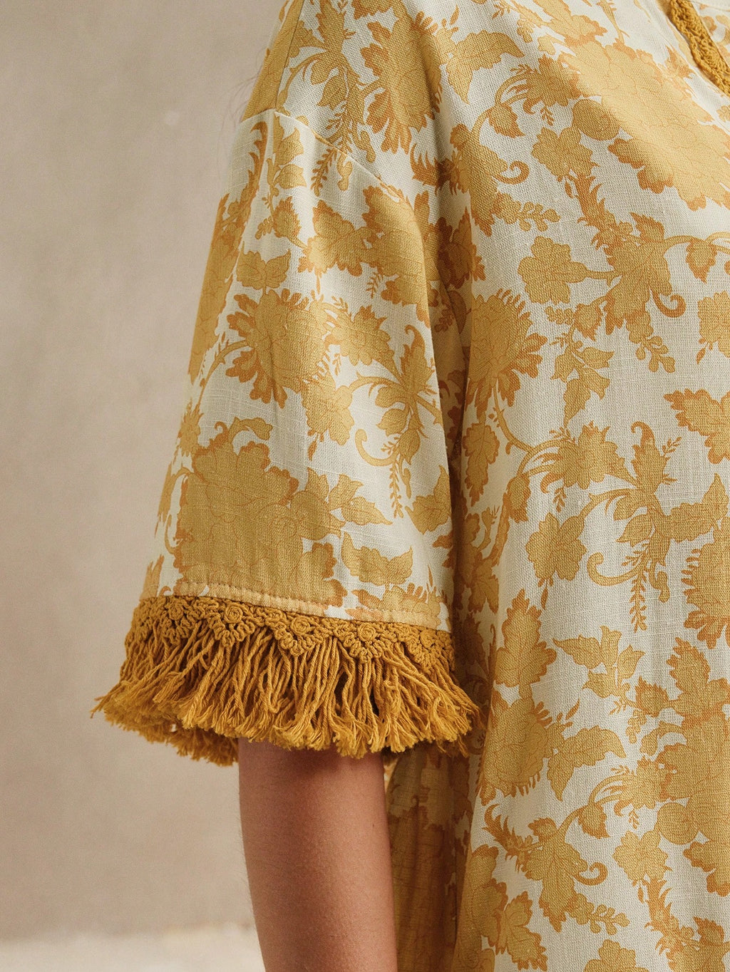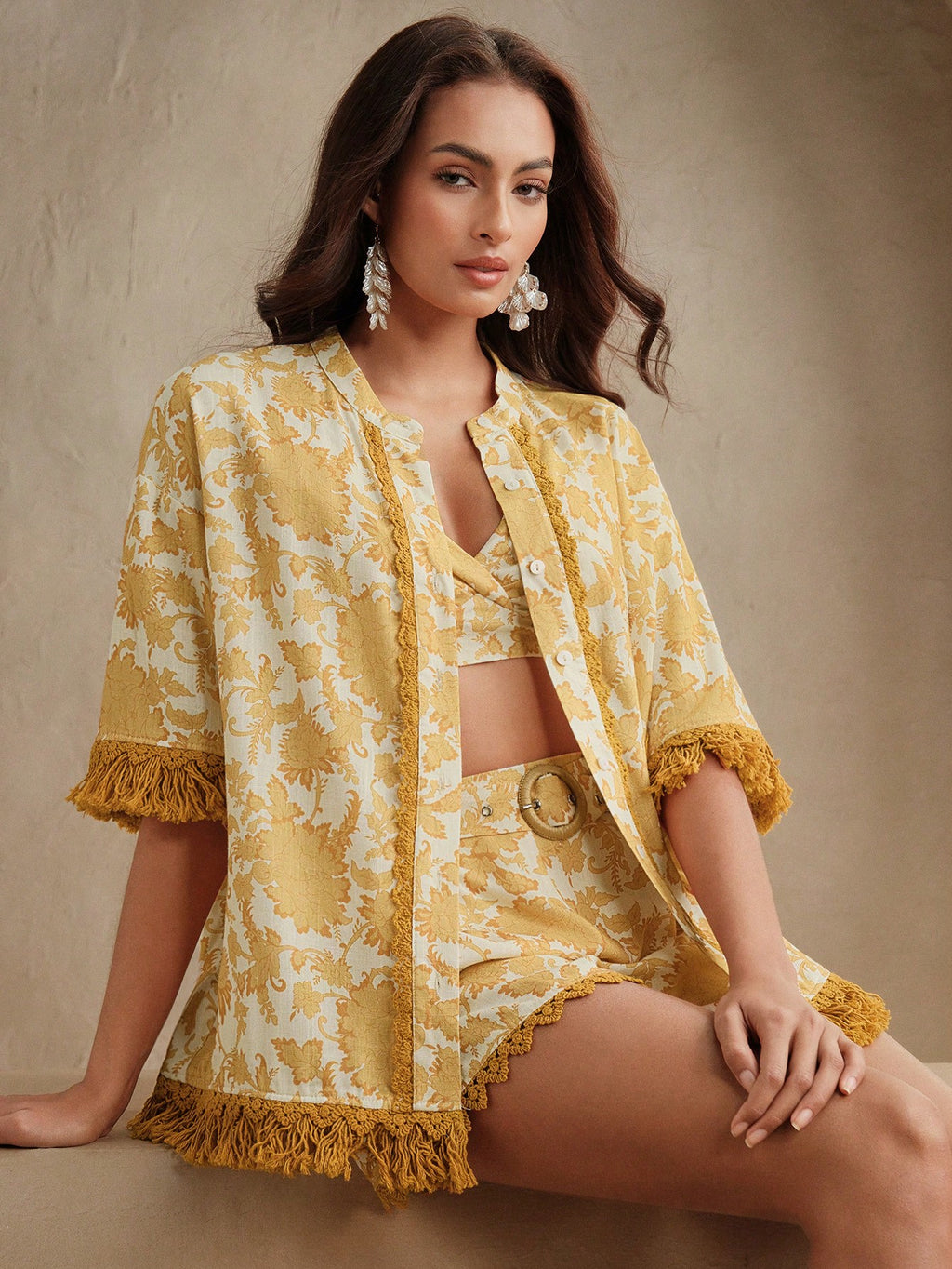 MIU Elegant, Casual, Bohemian, Beach, Festival, Vacation Outfits Women, Spring/Summer Linen Blend Printed Suit