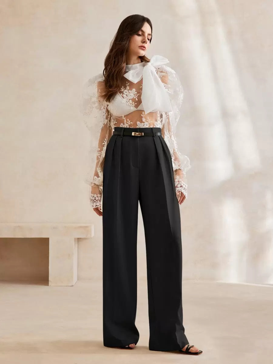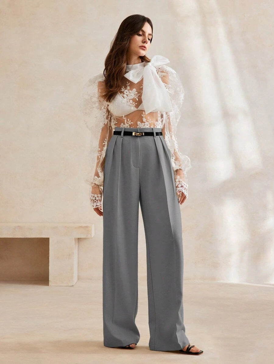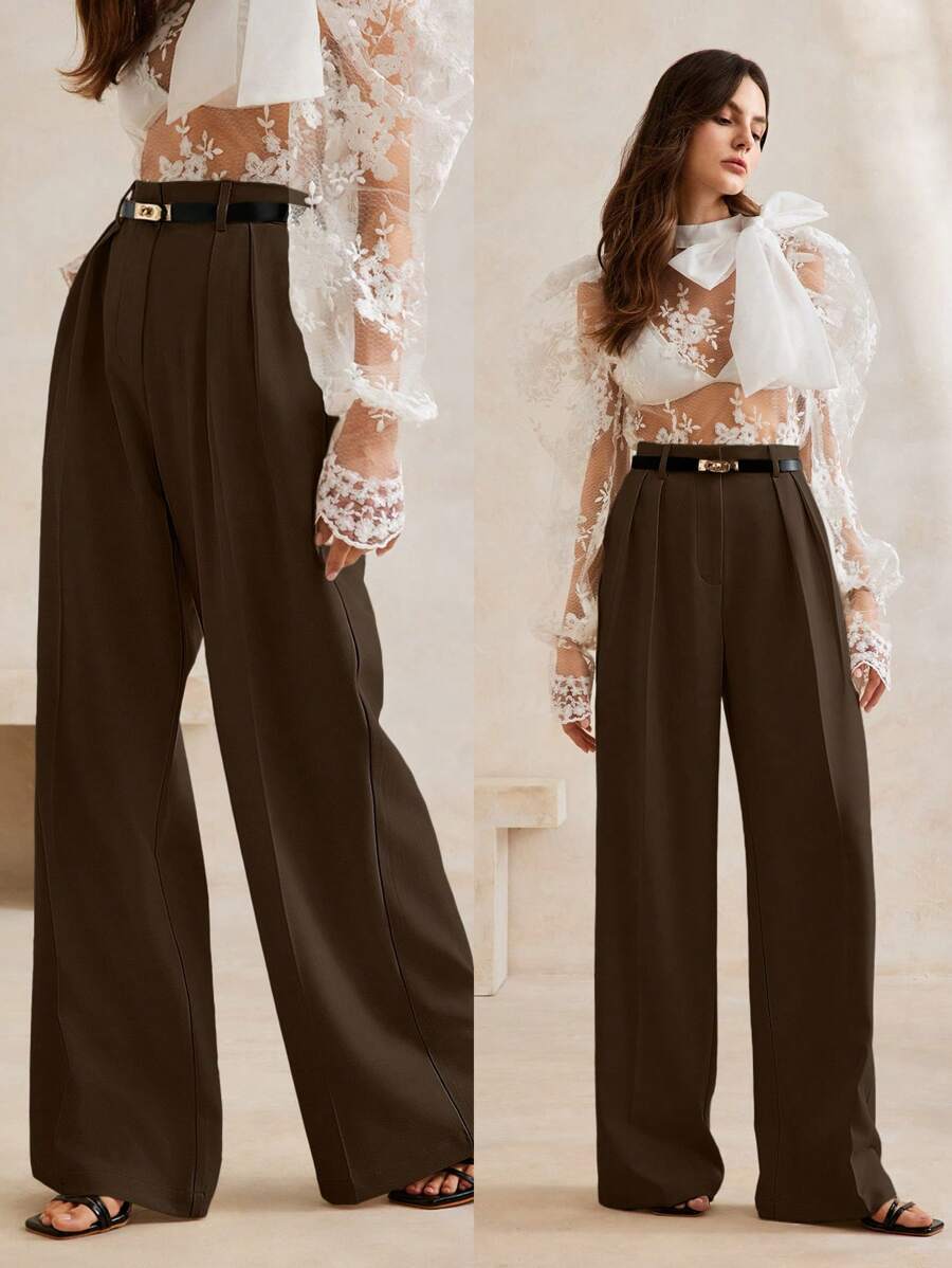 MIU Elegant City Style Solid Color Wide Leg Dress Pants