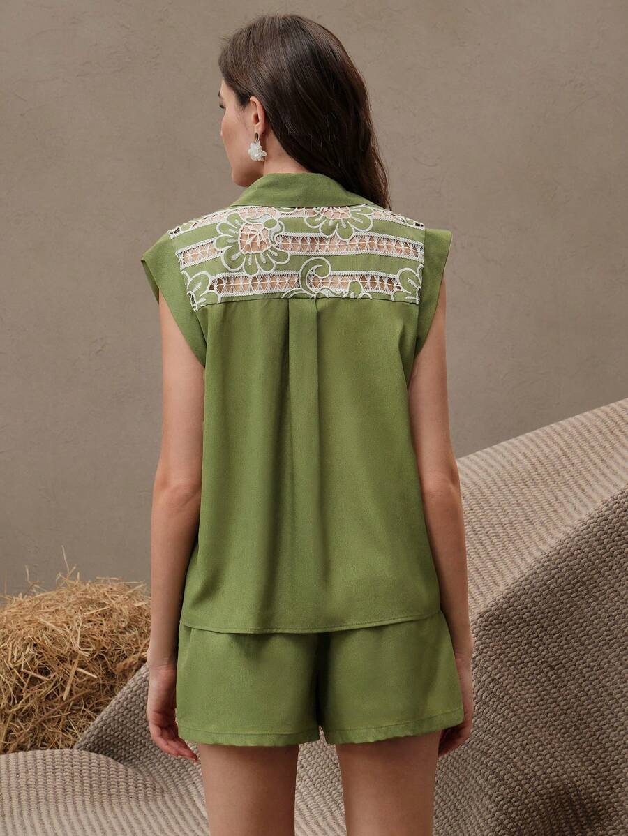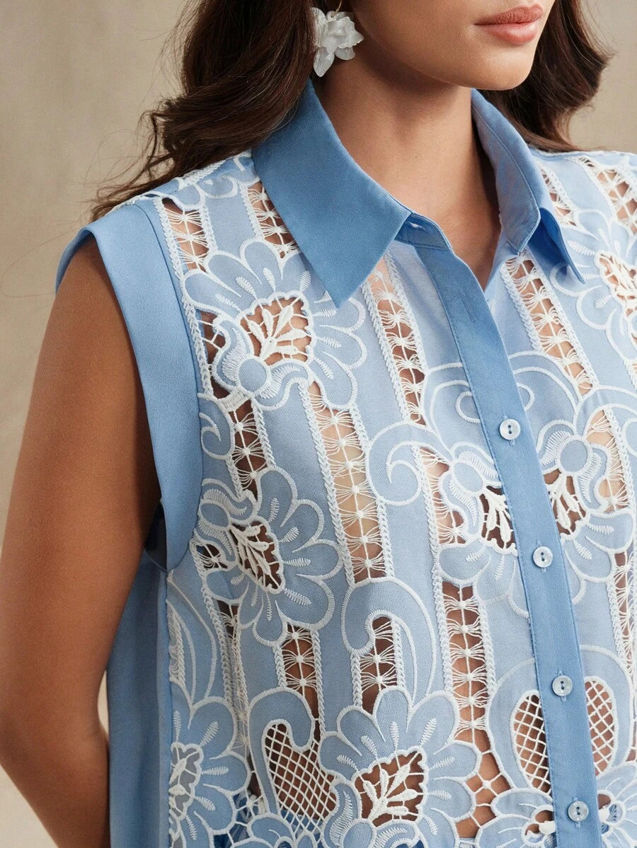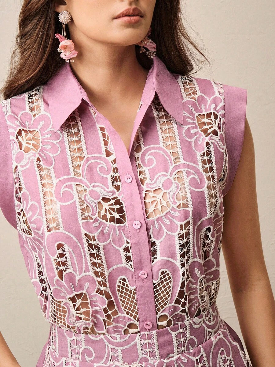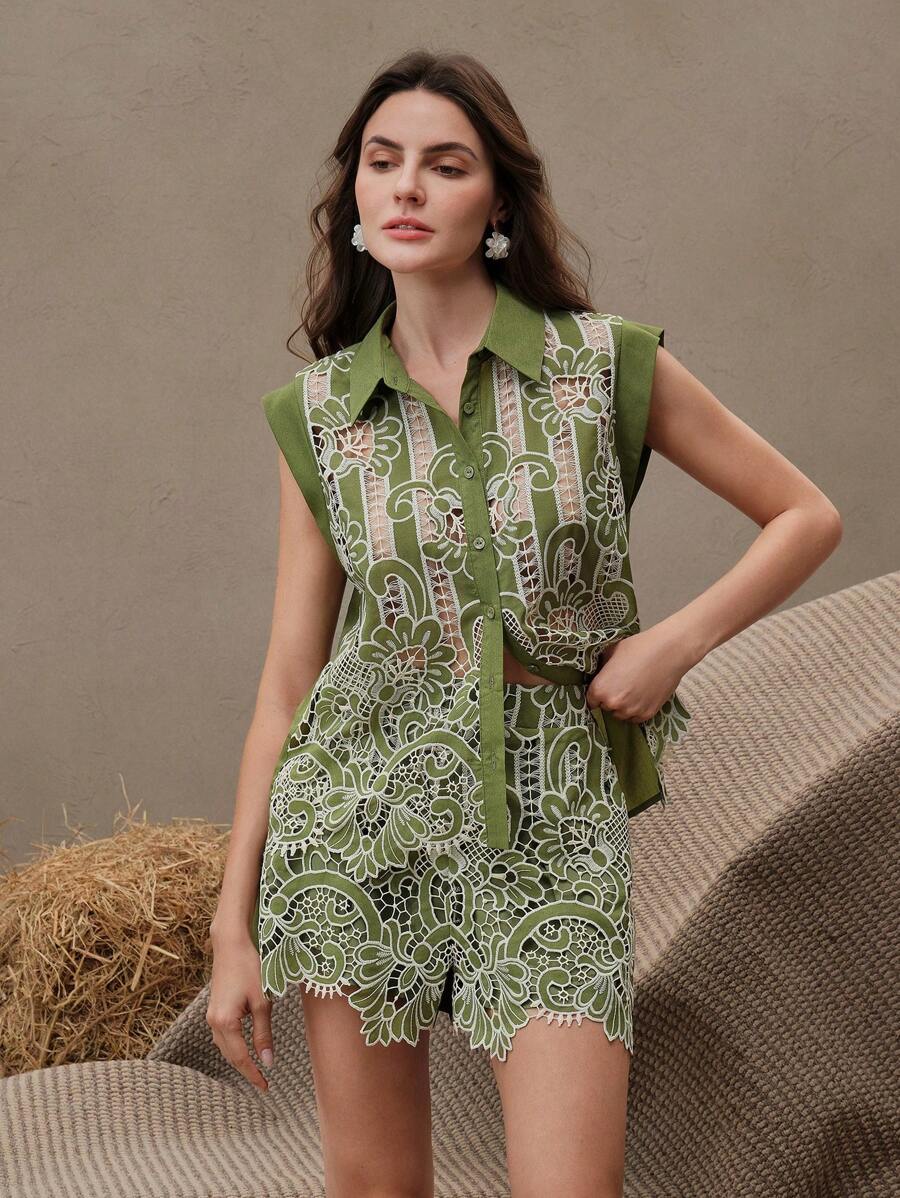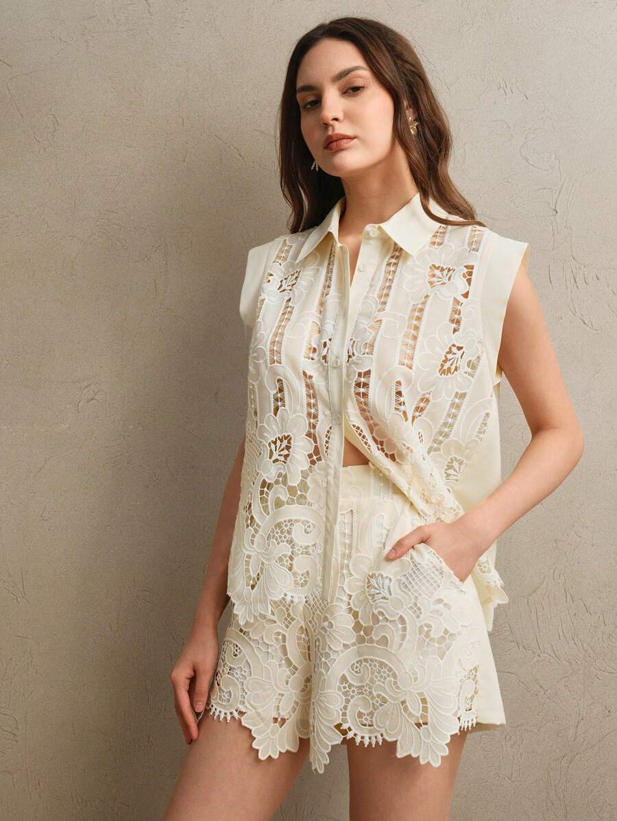 MIU Elegant Embroidered Lace Set, Low-Key Luxury "Old Money" Style, Suitable For Summer, Vacation, Festival, Holiday, Casual