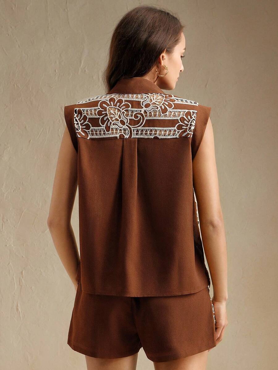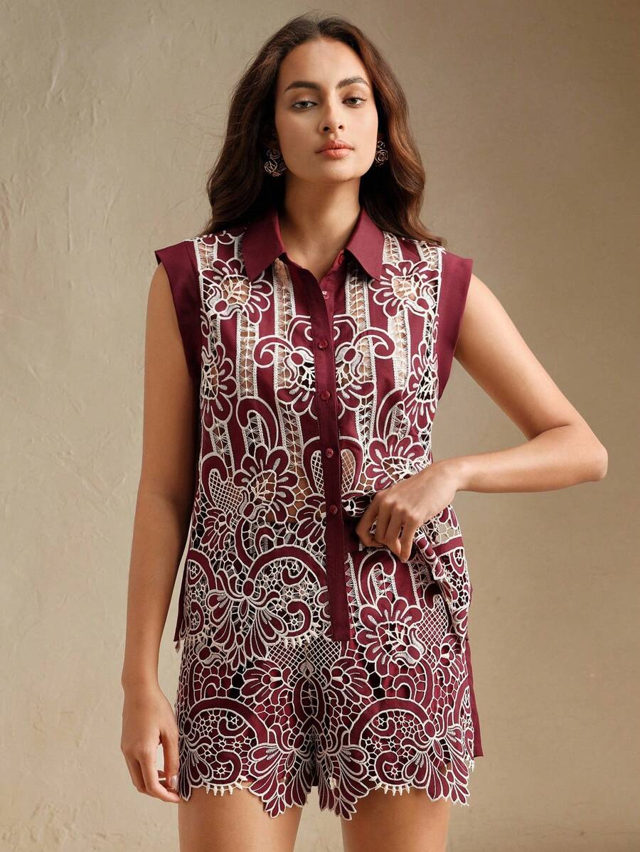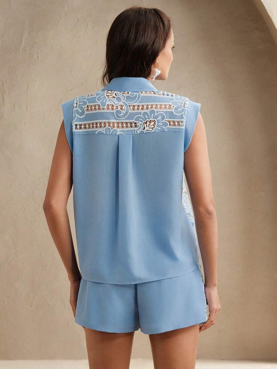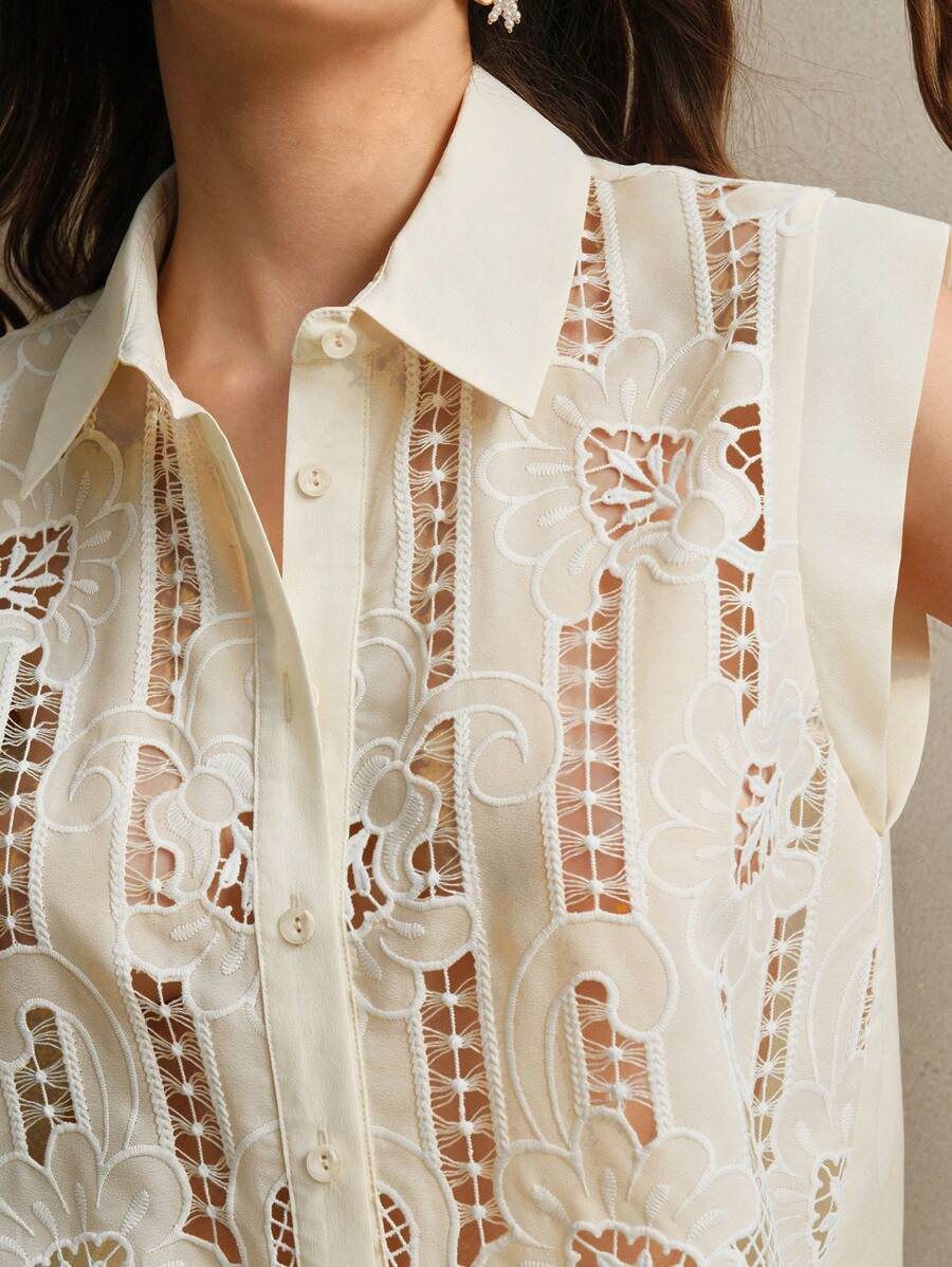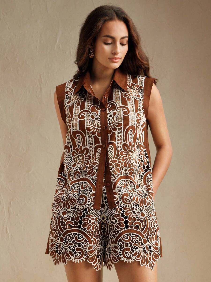 MIU Elegant Embroidered Lace Set, Low-Key Luxury "Old Money" Style, Suitable For Summer, Vacation, Festival, Holiday, Casual