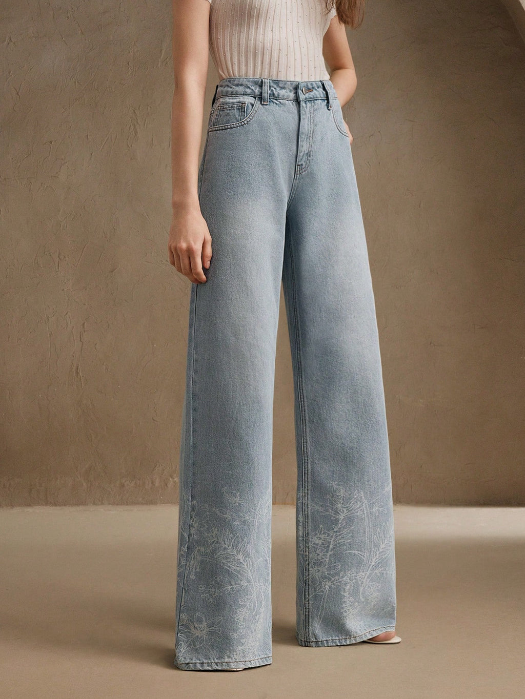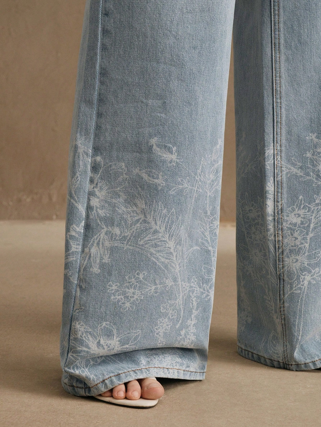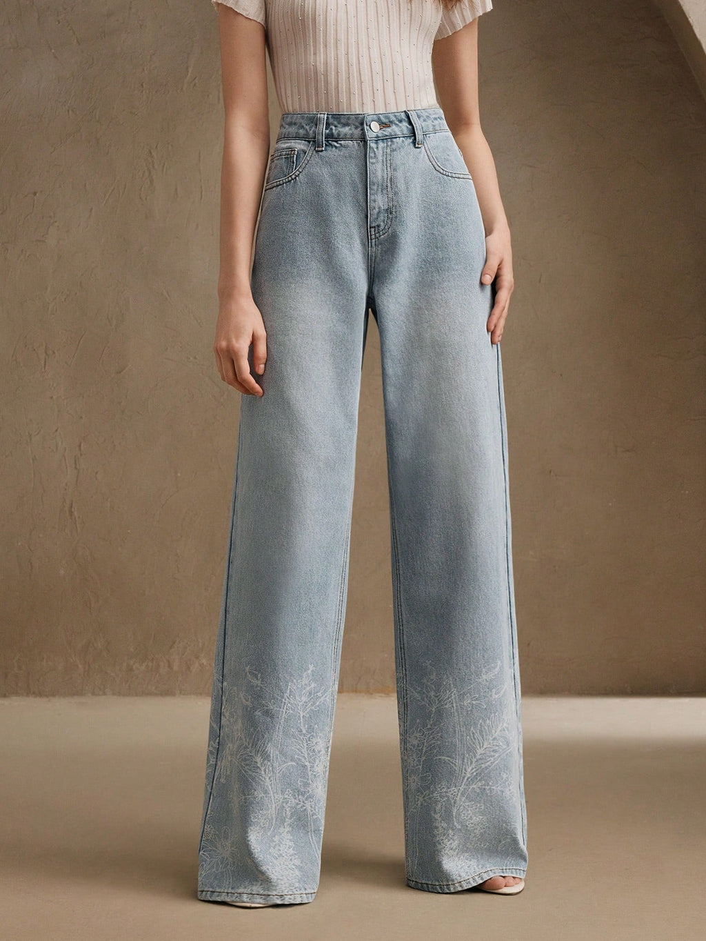 MIU Elegant Festival Casual Women Floral Print Straight Leg Trousers, For Spring Summer Festival Graduation
