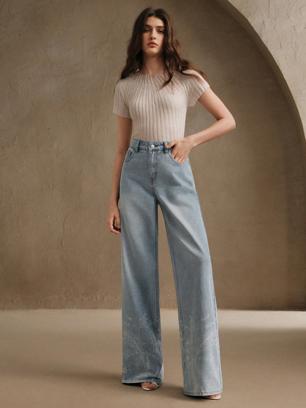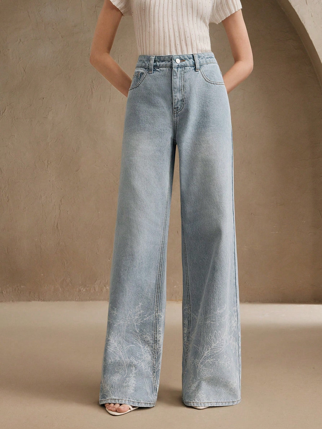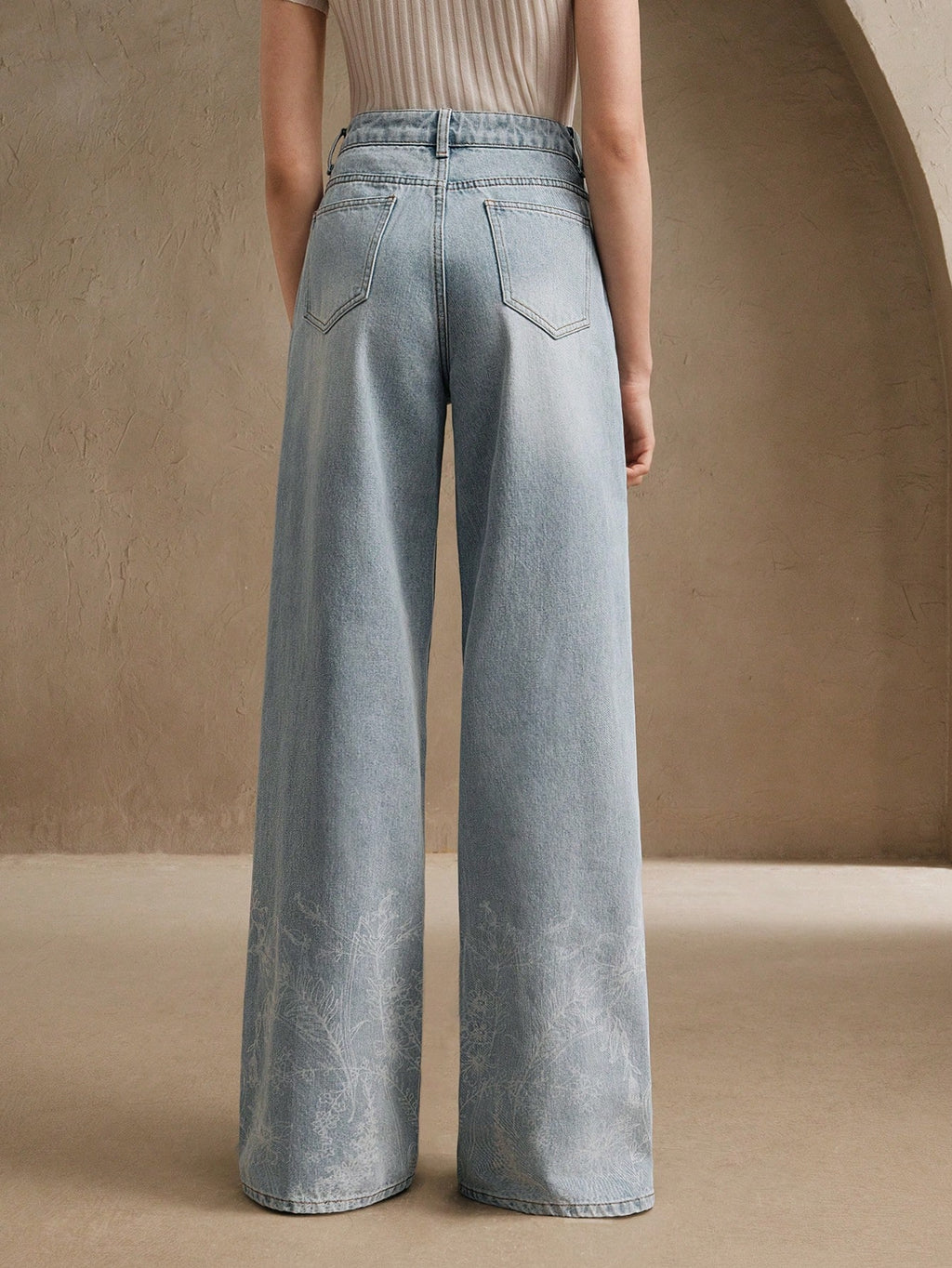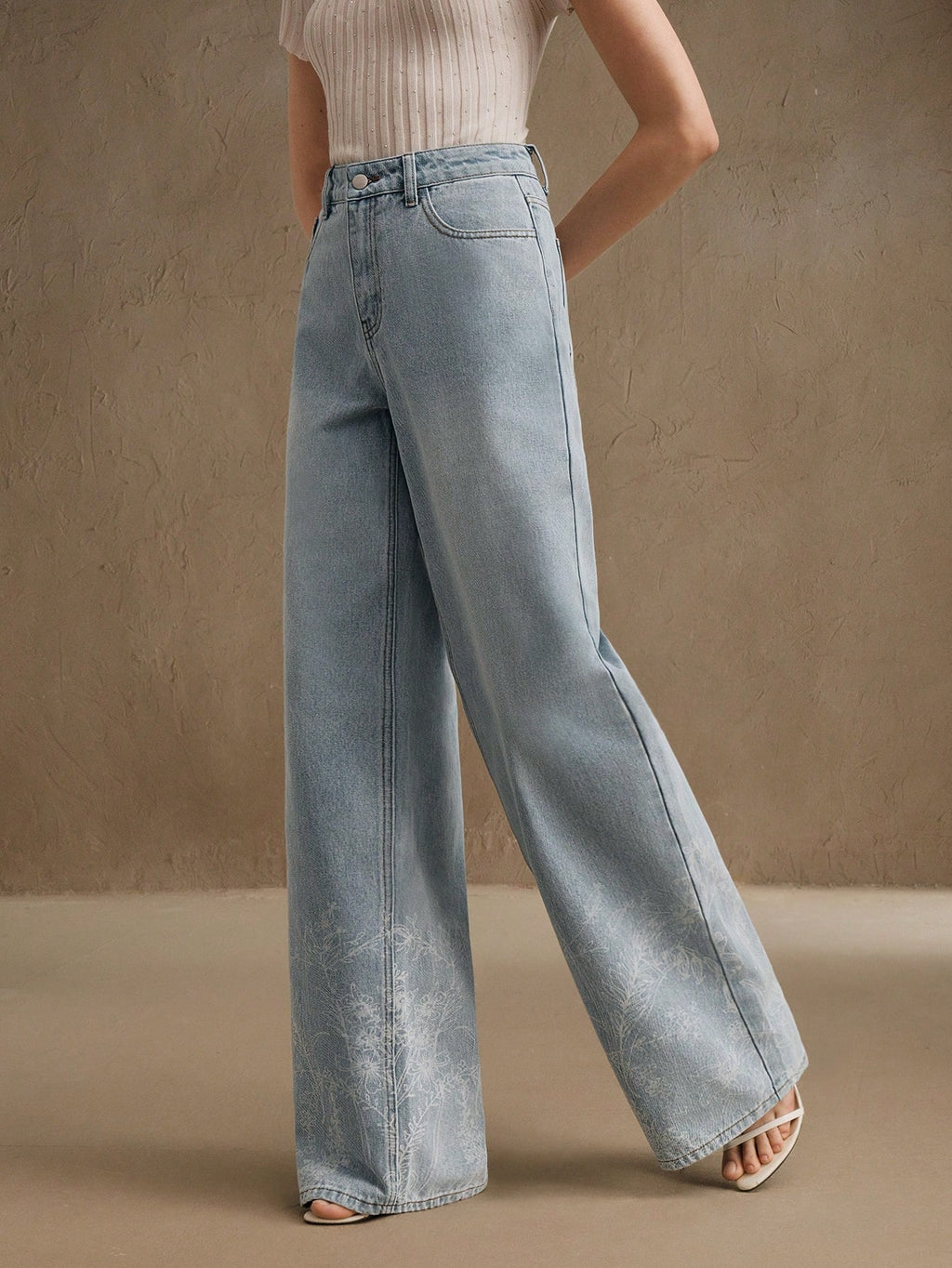 MIU Elegant Festival Casual Women Floral Print Straight Leg Trousers, For Spring Summer Festival Graduation