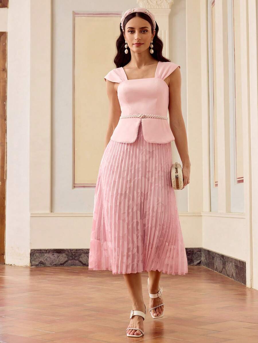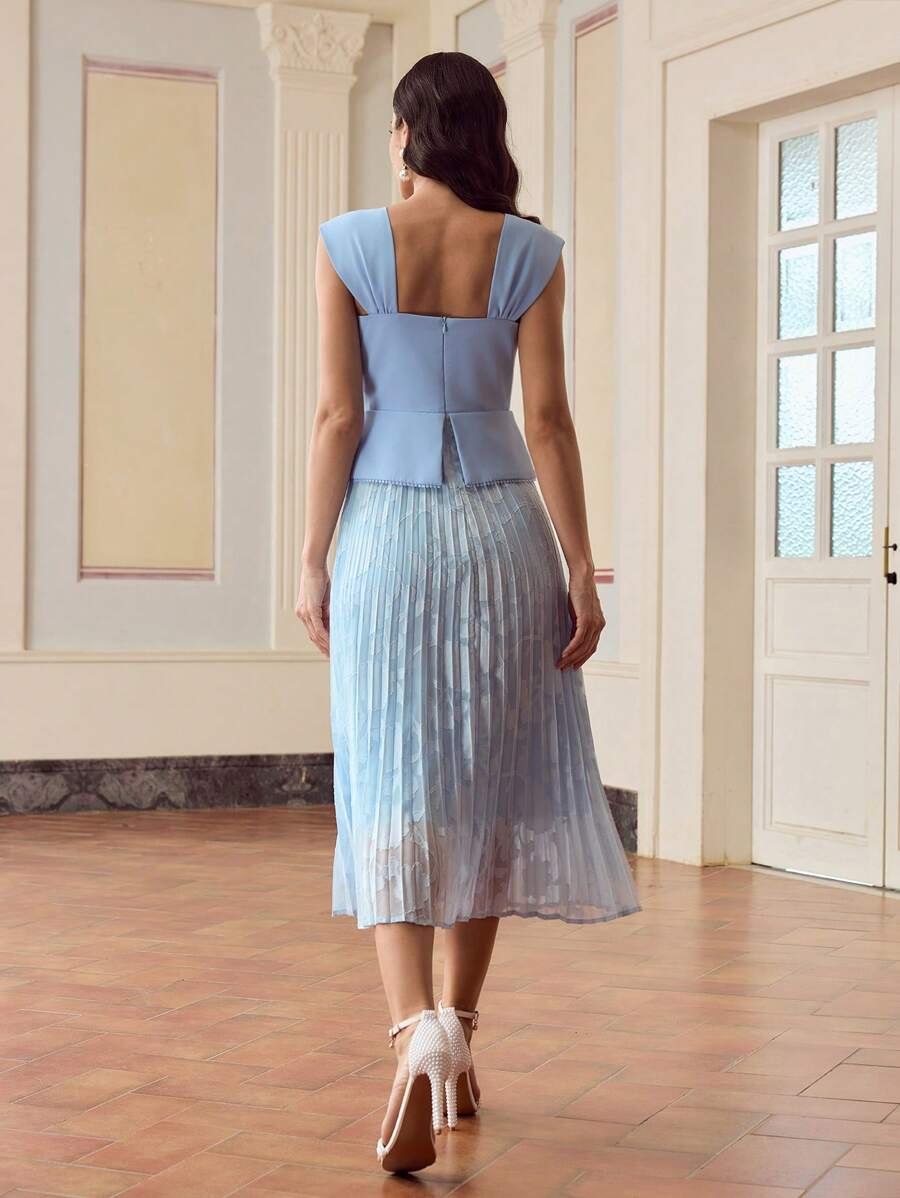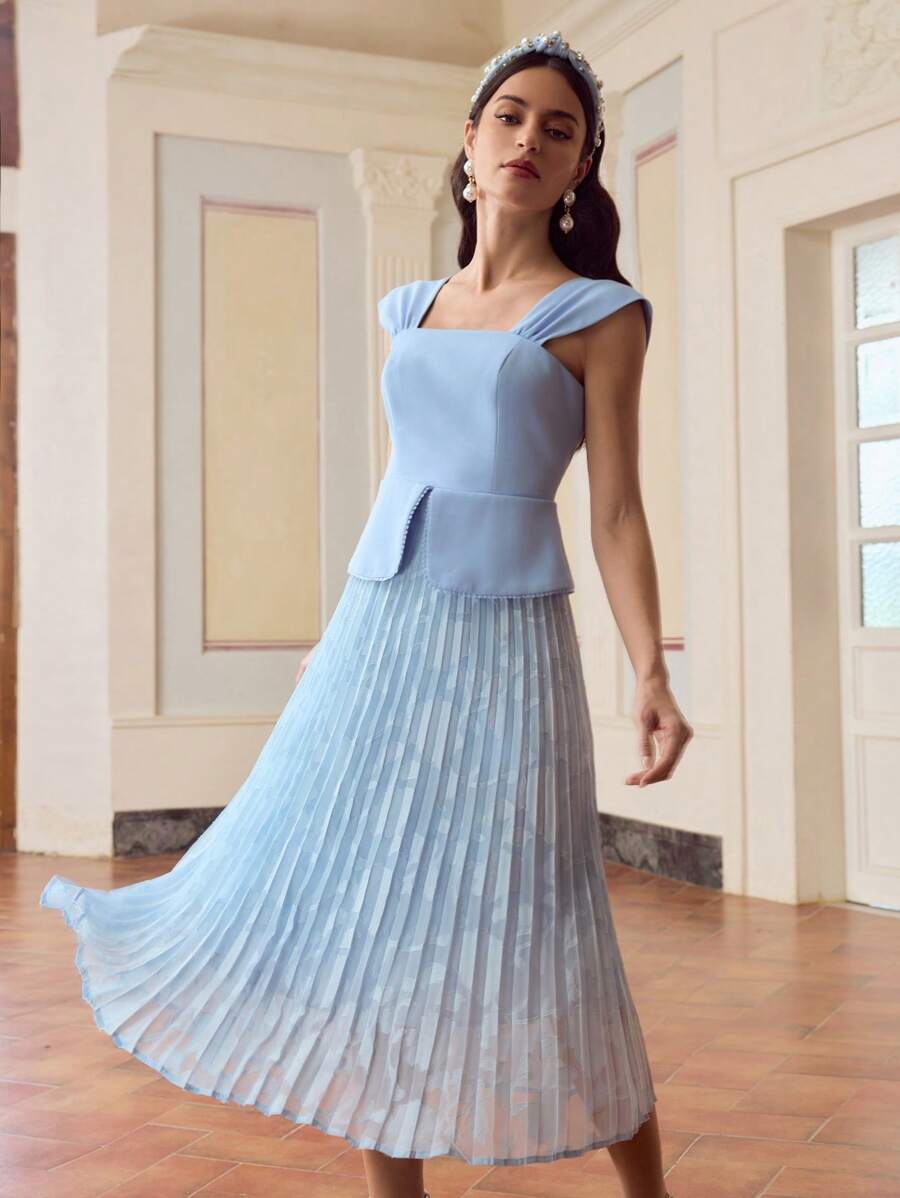 MIU Elegant Patchwork 2 In 1 Cut-Out Pleat Dress