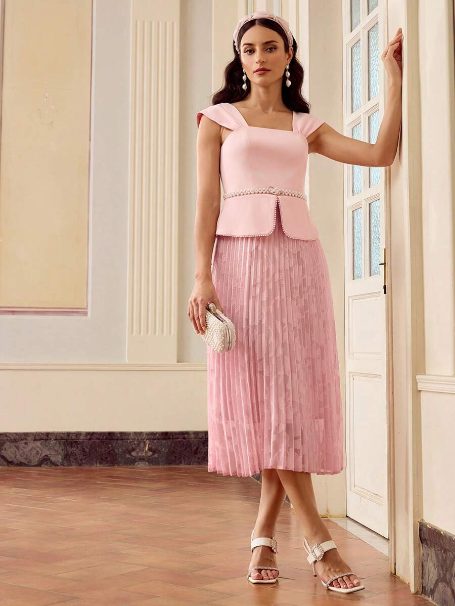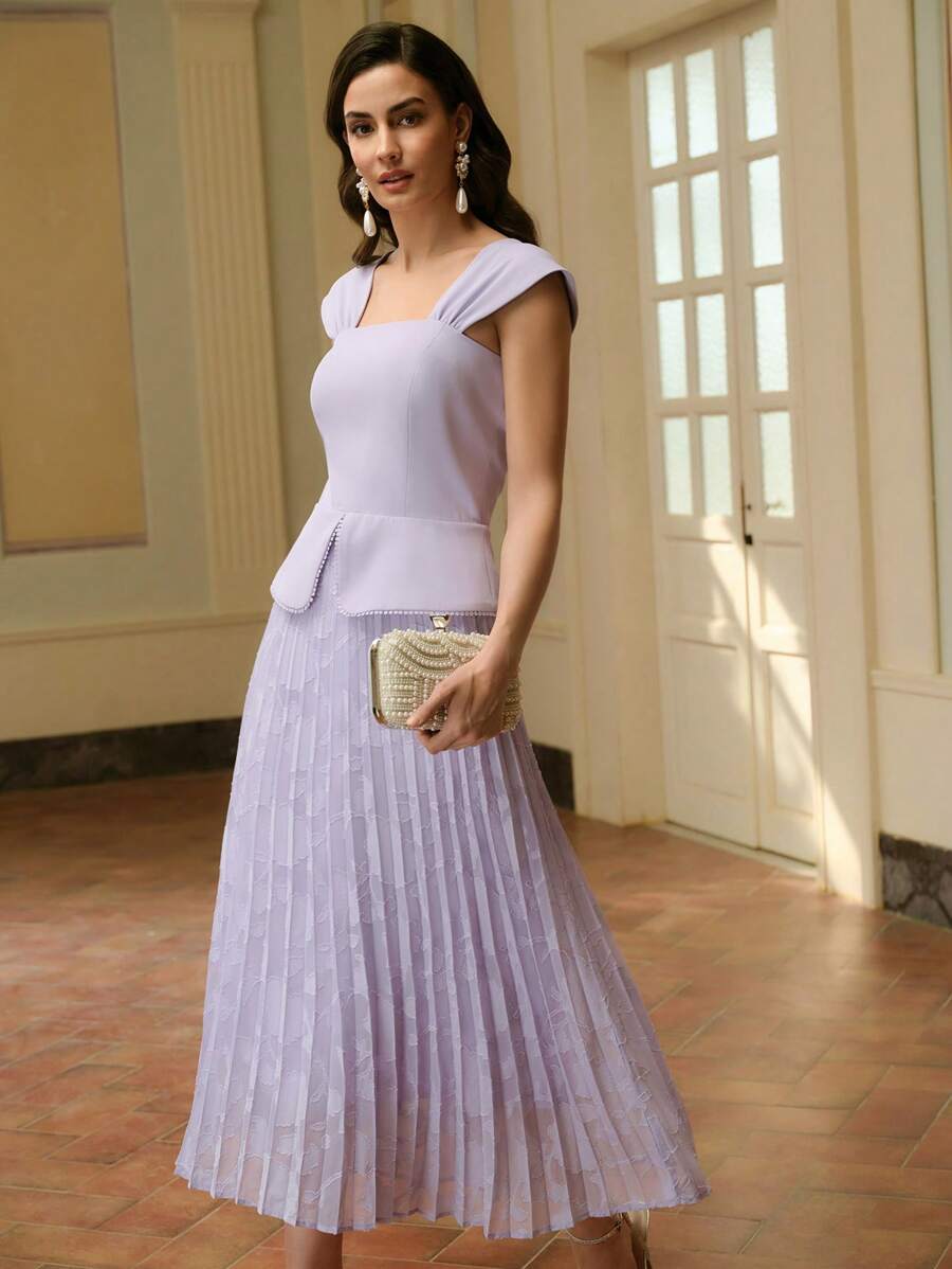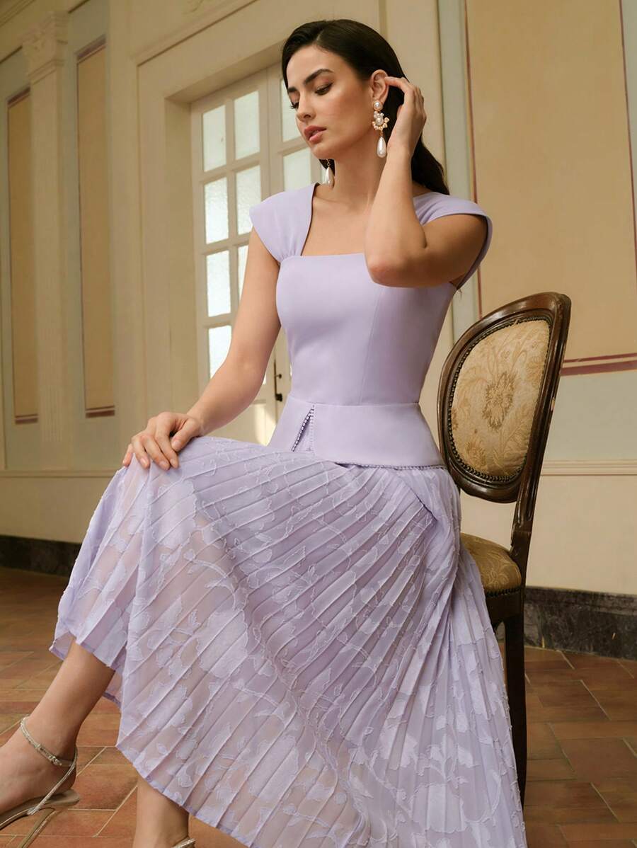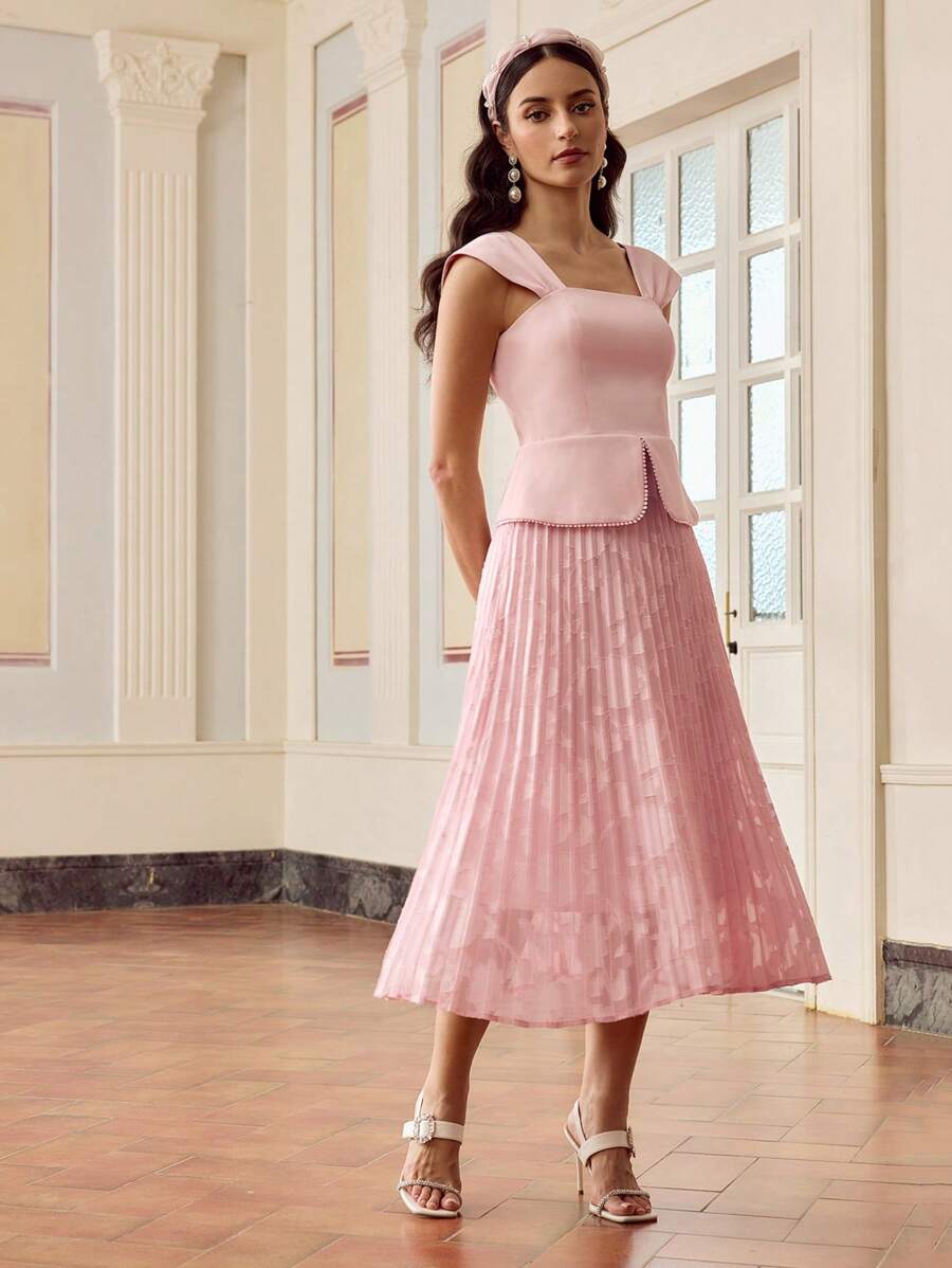MIU Elegant Patchwork 2 In 1 Cut-Out Pleat Dress