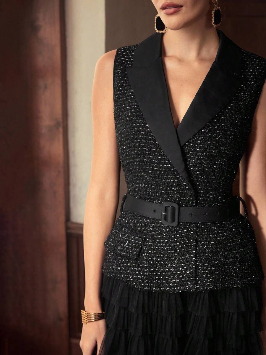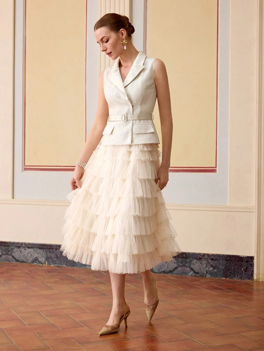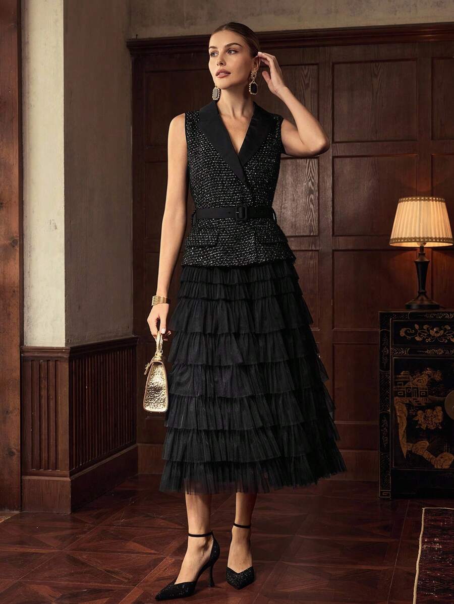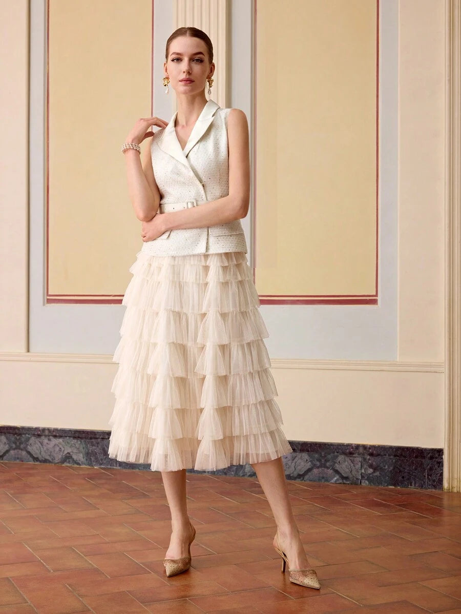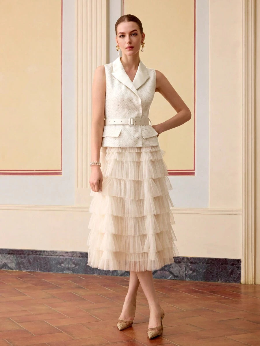 MIU Elegant Sleeveless Long Dress With Mottled Collar, Ruffled Hem For Women