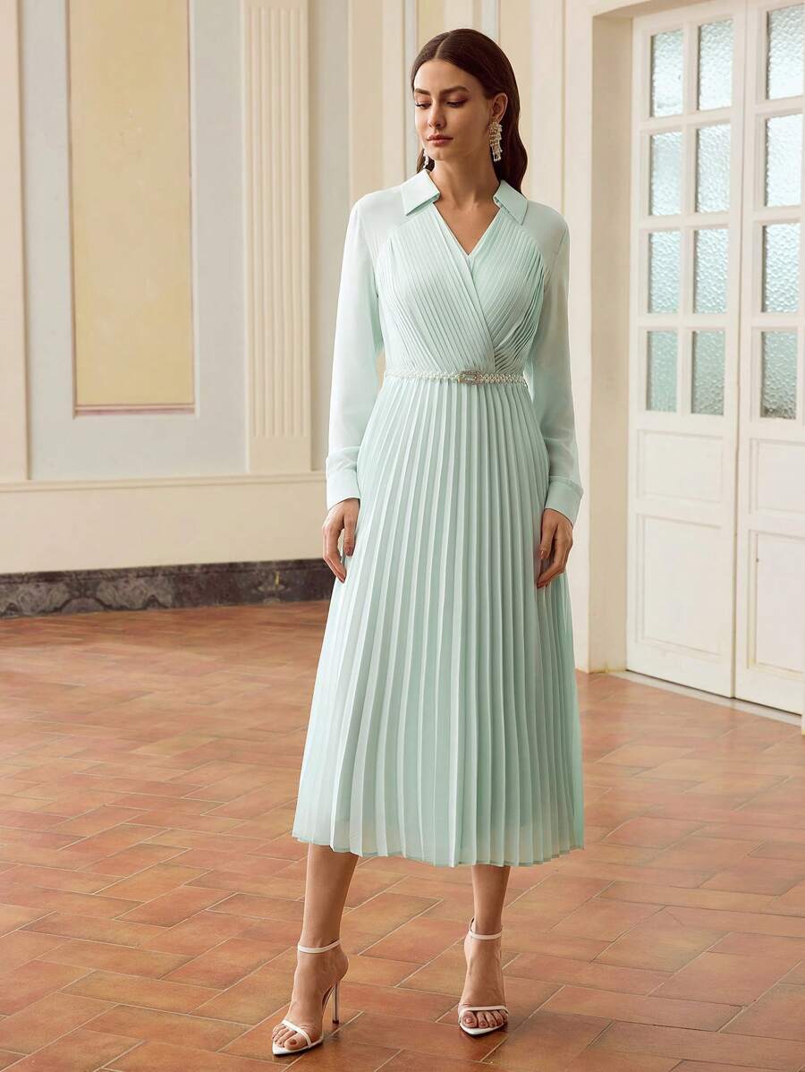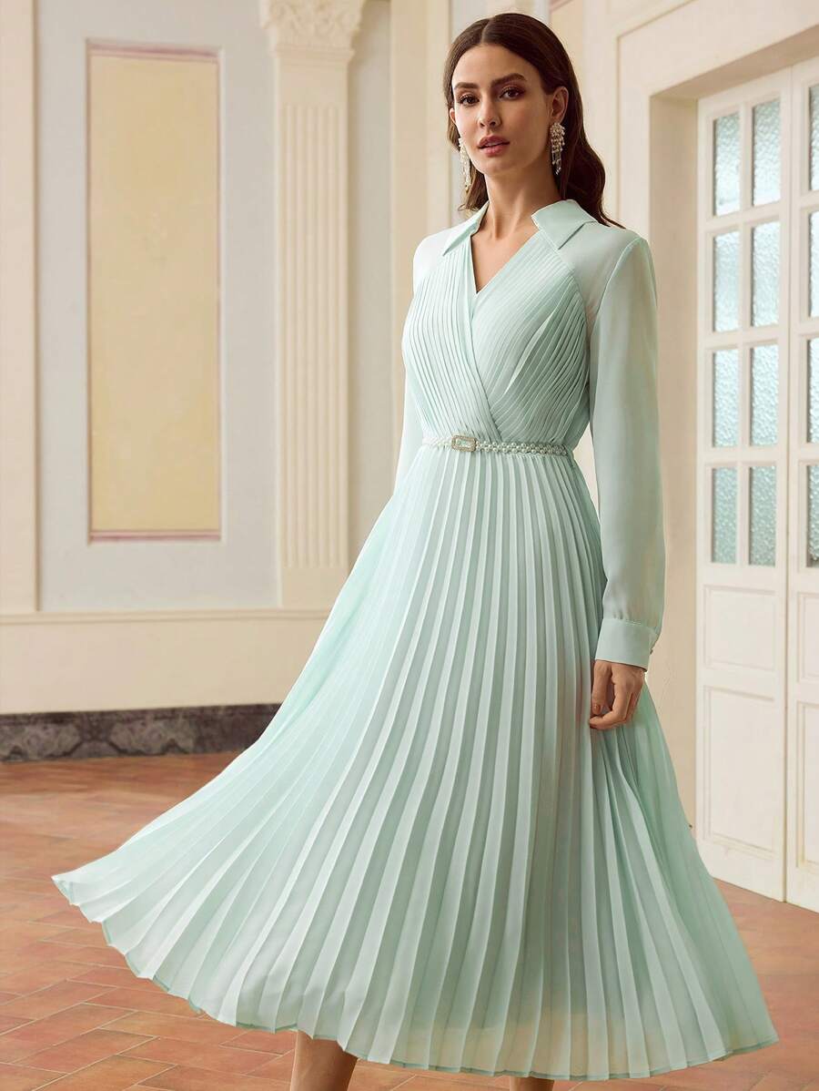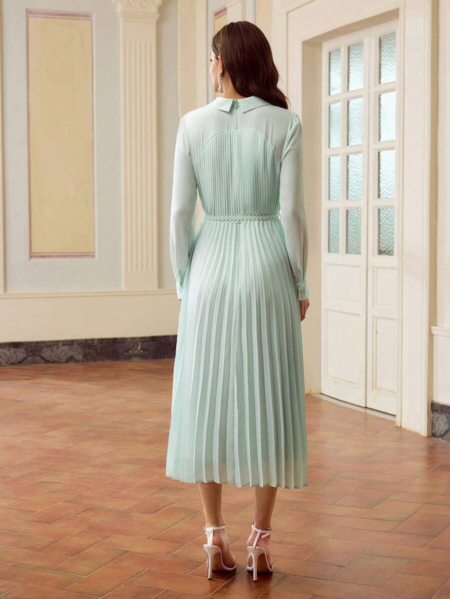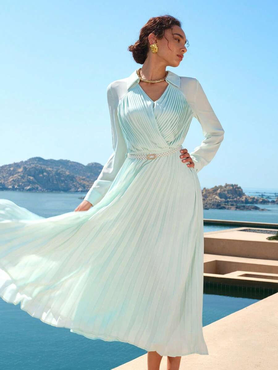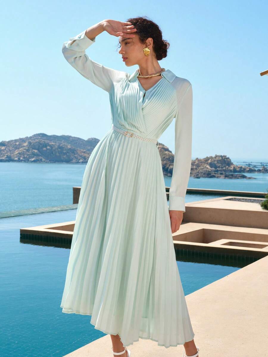MIU Elegant Solid Color Raglan Sleeve Pleated Dress