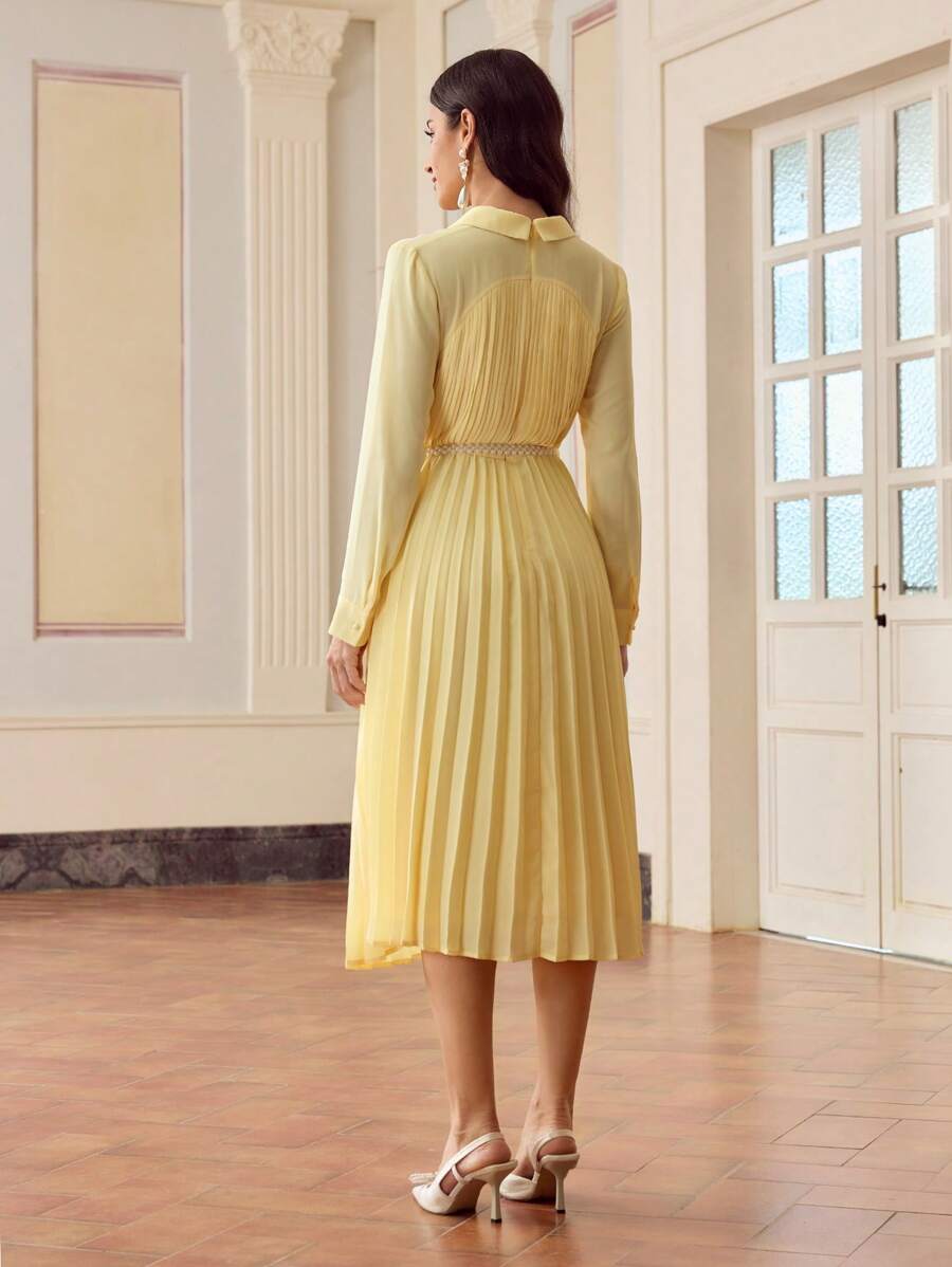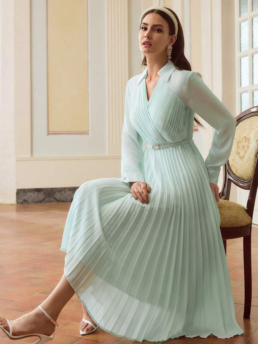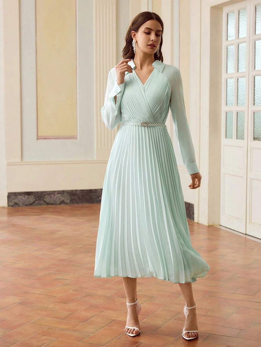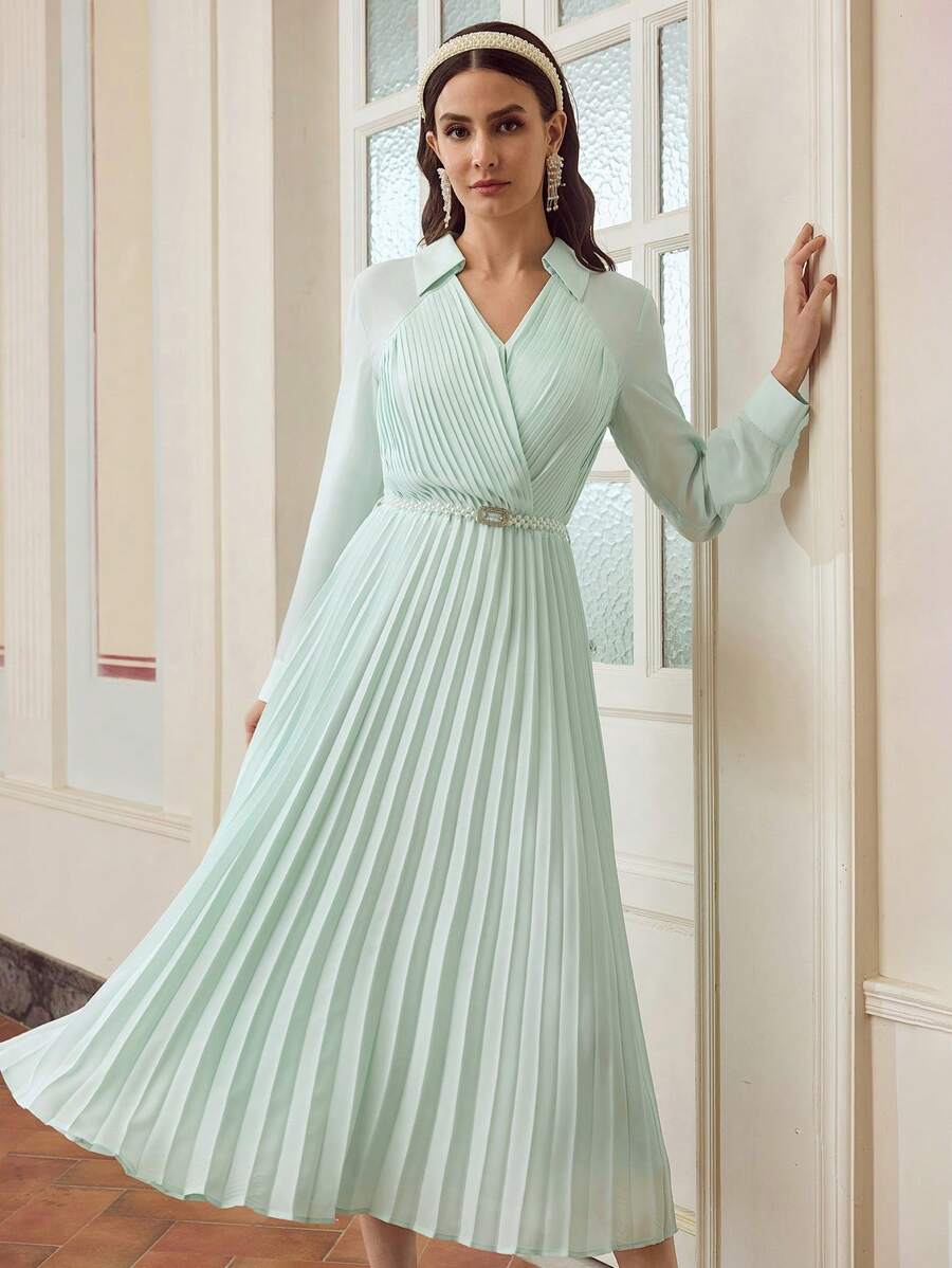 MIU Elegant Solid Color Raglan Sleeve Pleated Dress