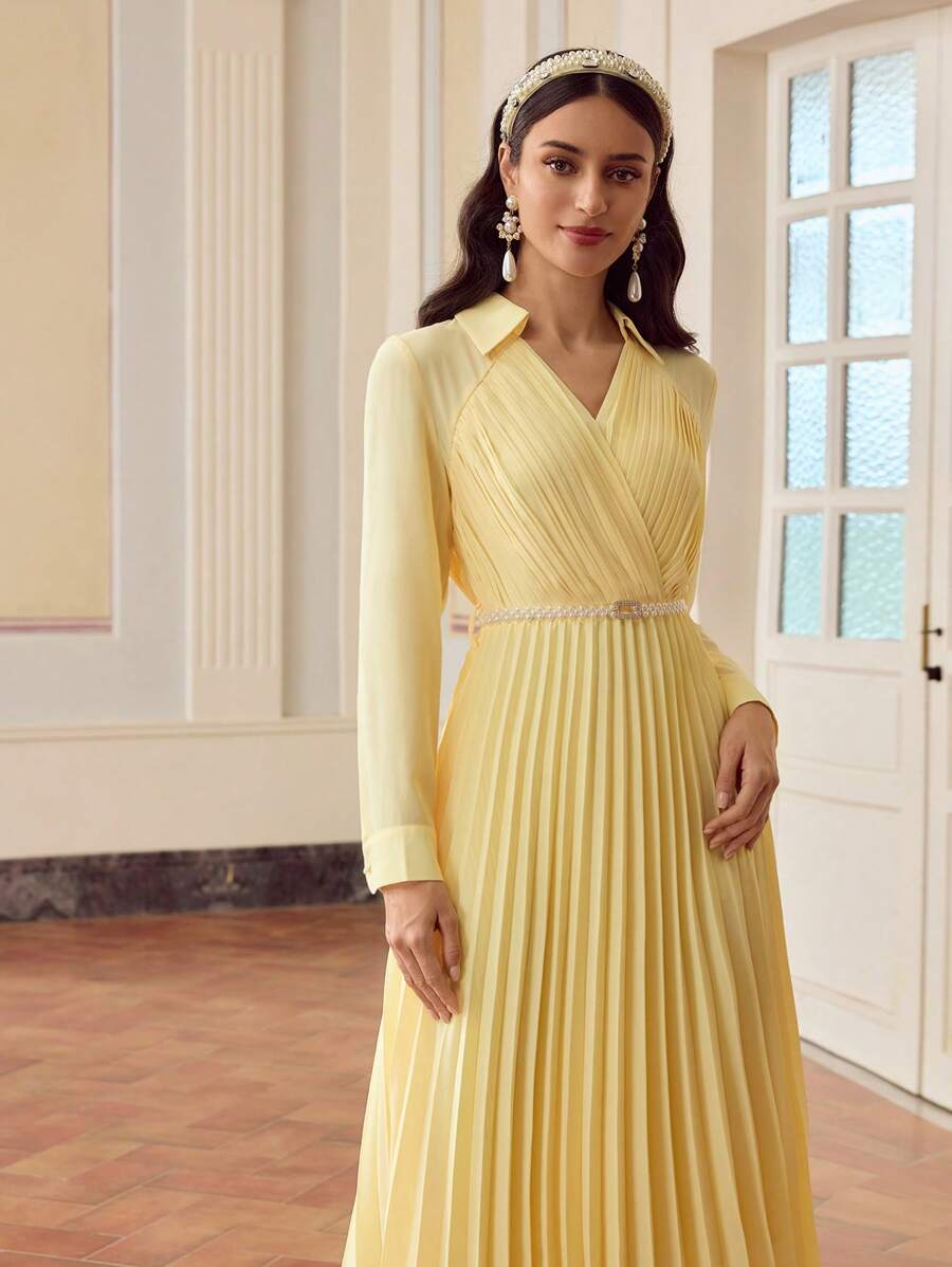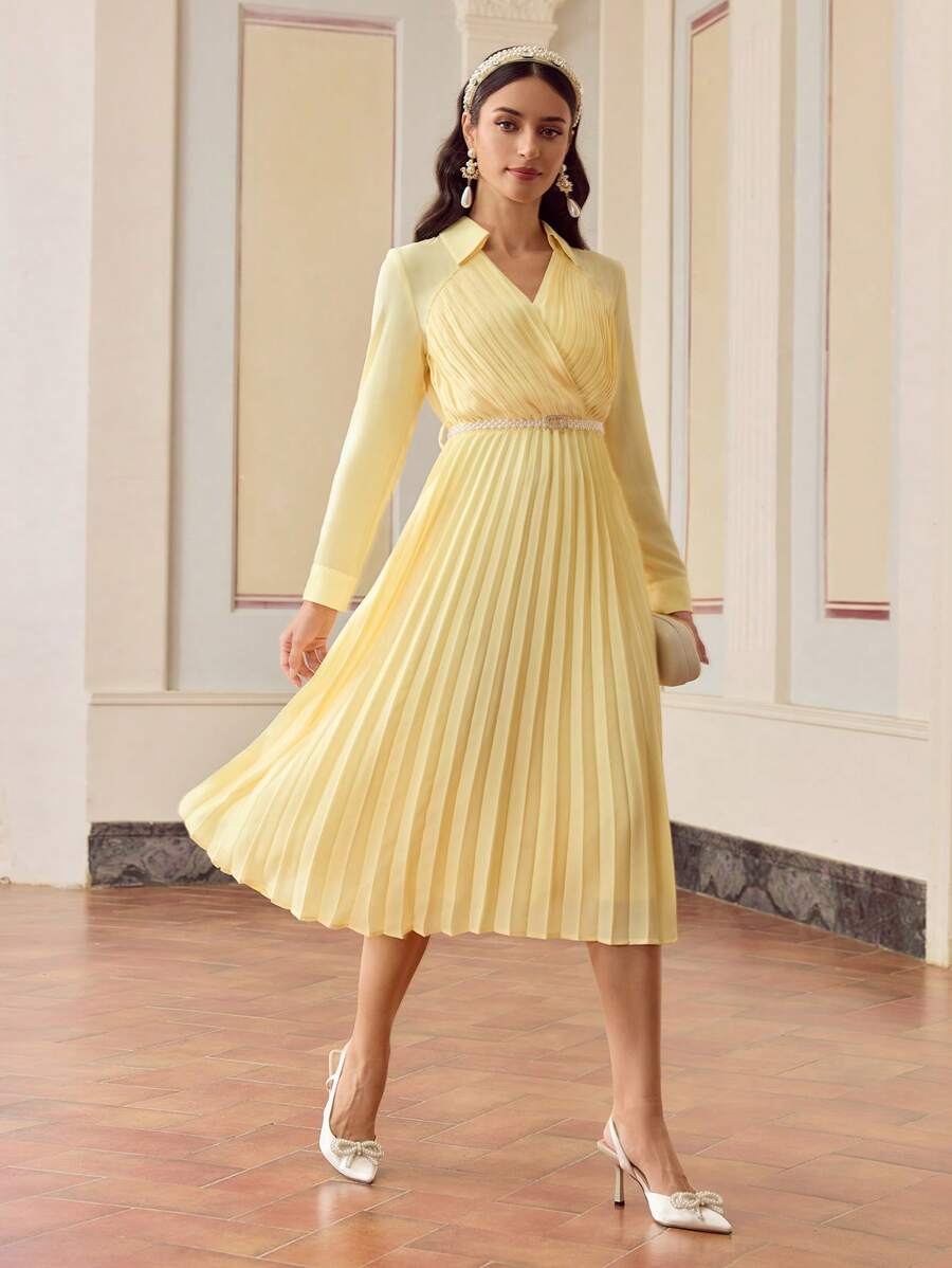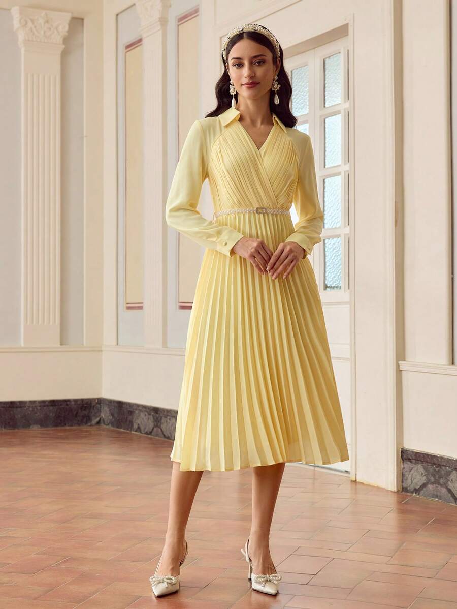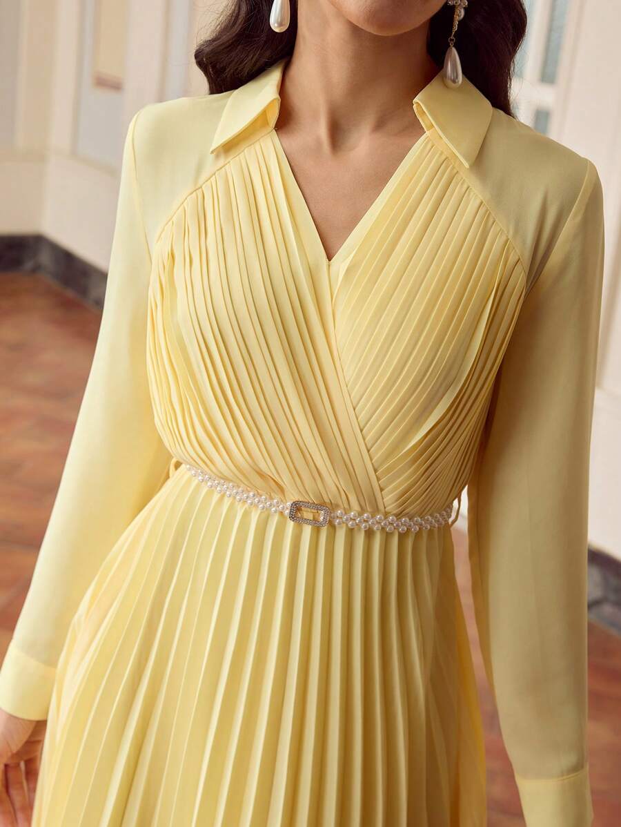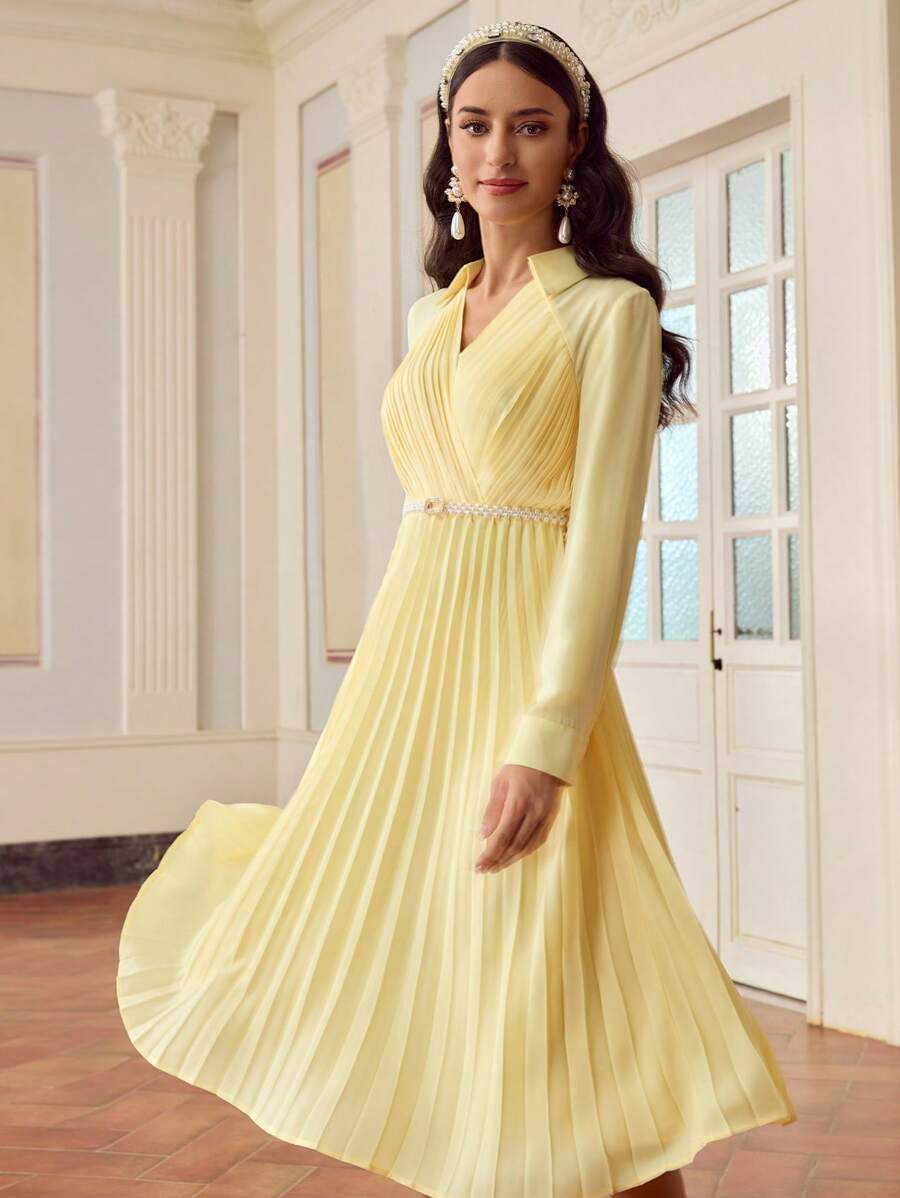 MIU Elegant Solid Color Raglan Sleeve Pleated Dress