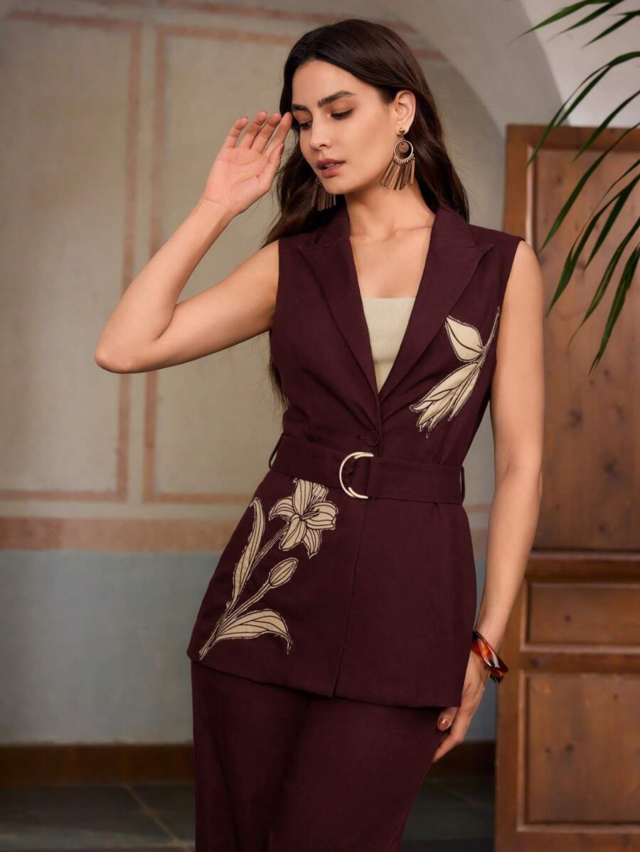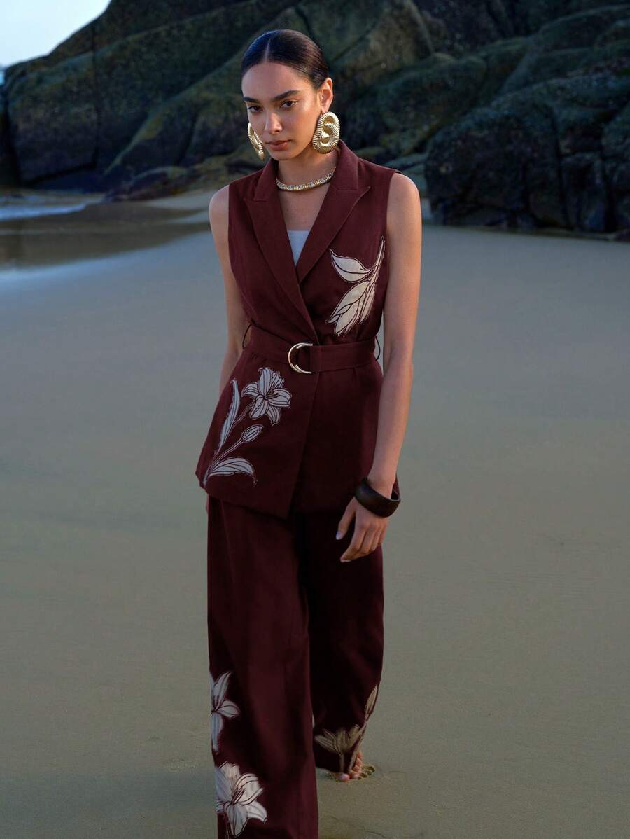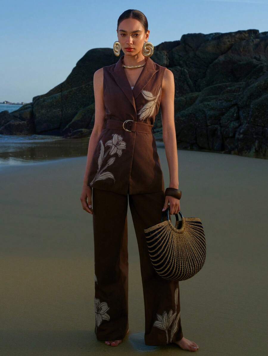 MIU Embroidered Linen Loose Double-Breasted Blazer, Fashionable For Summer