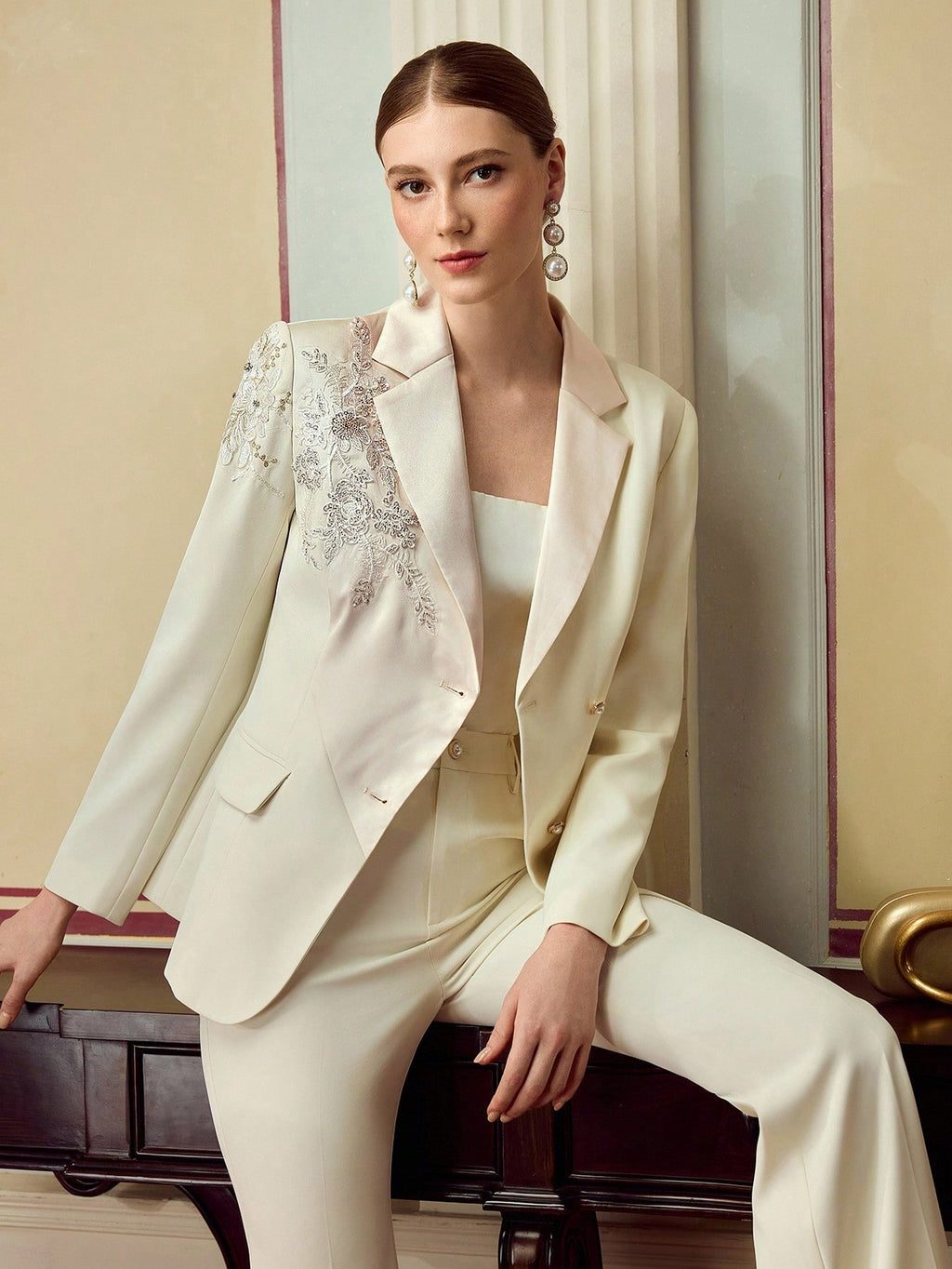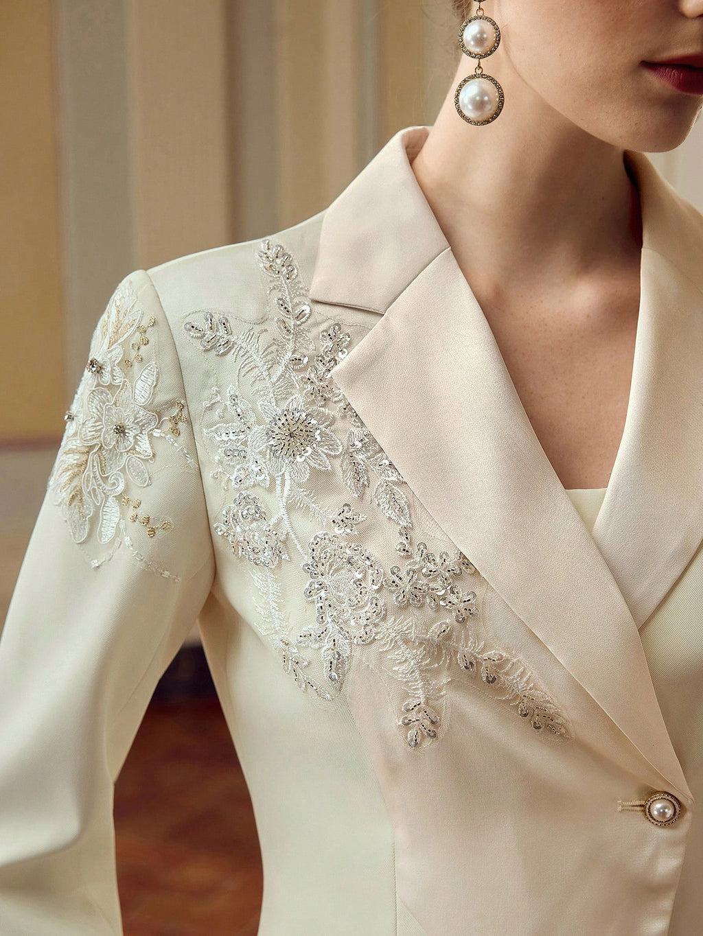 MIU EMBROIDERY APPLIQUES BLAZER JACKET