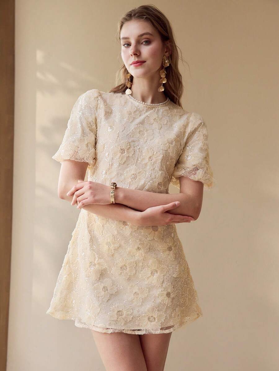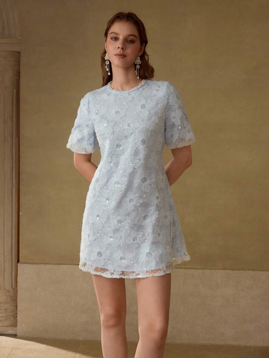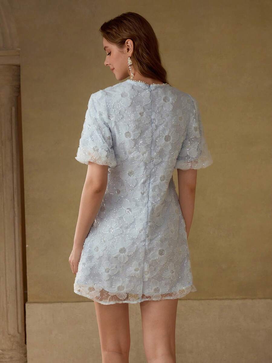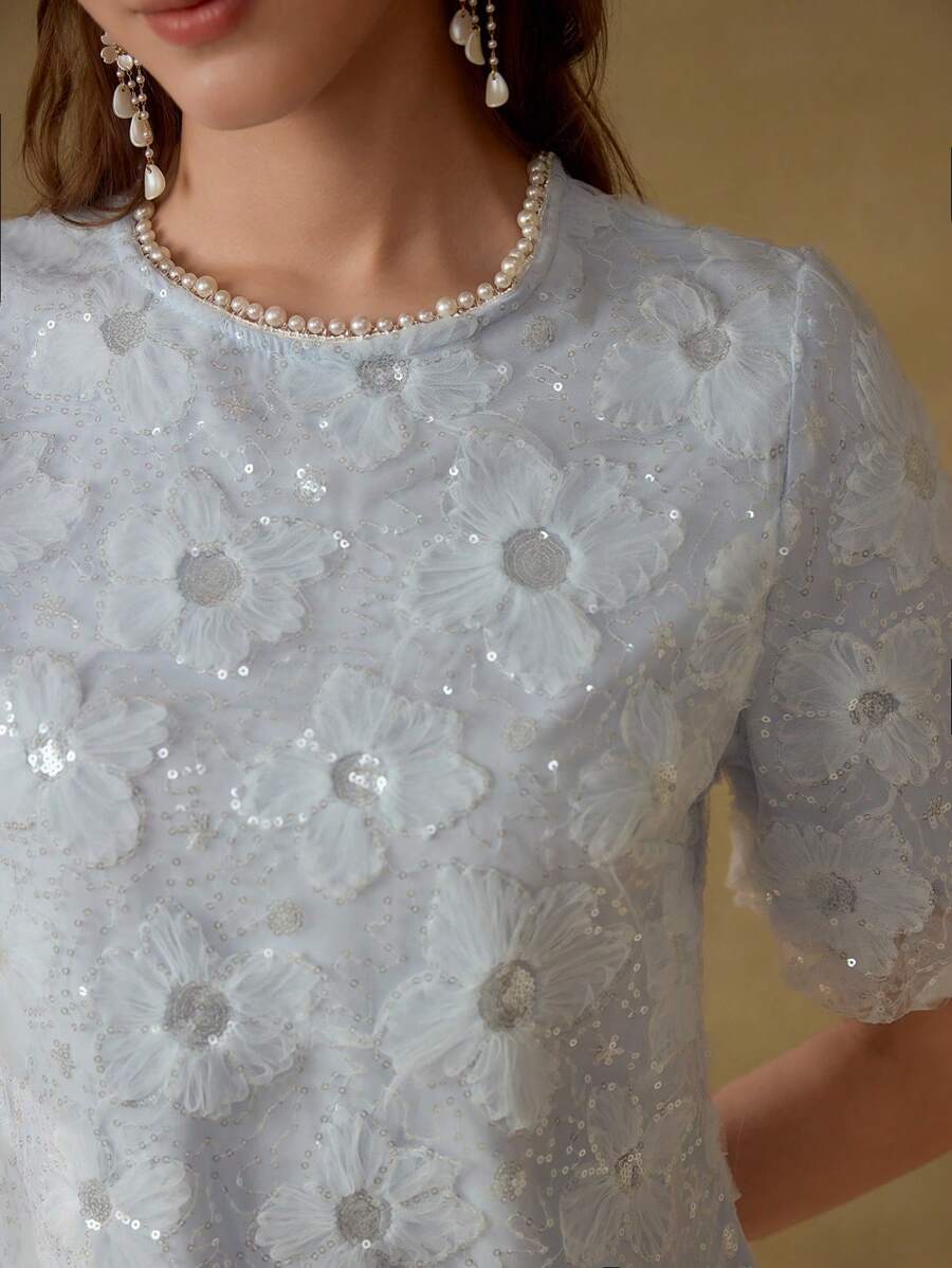 MIU EMBROIDERY FAUX PEARL TRIM DRESS