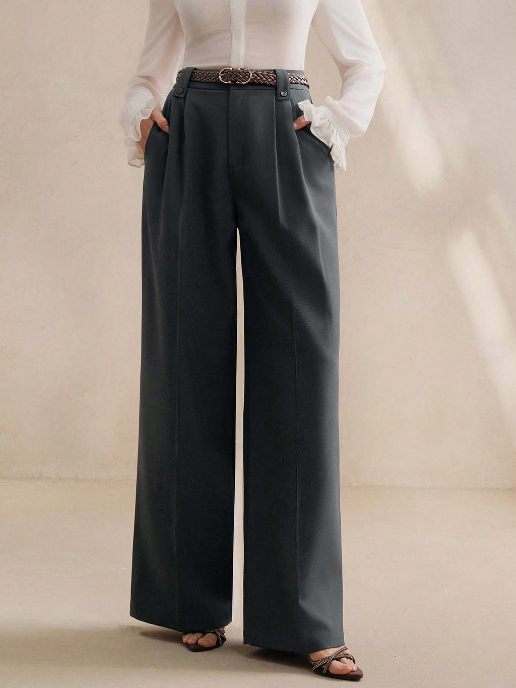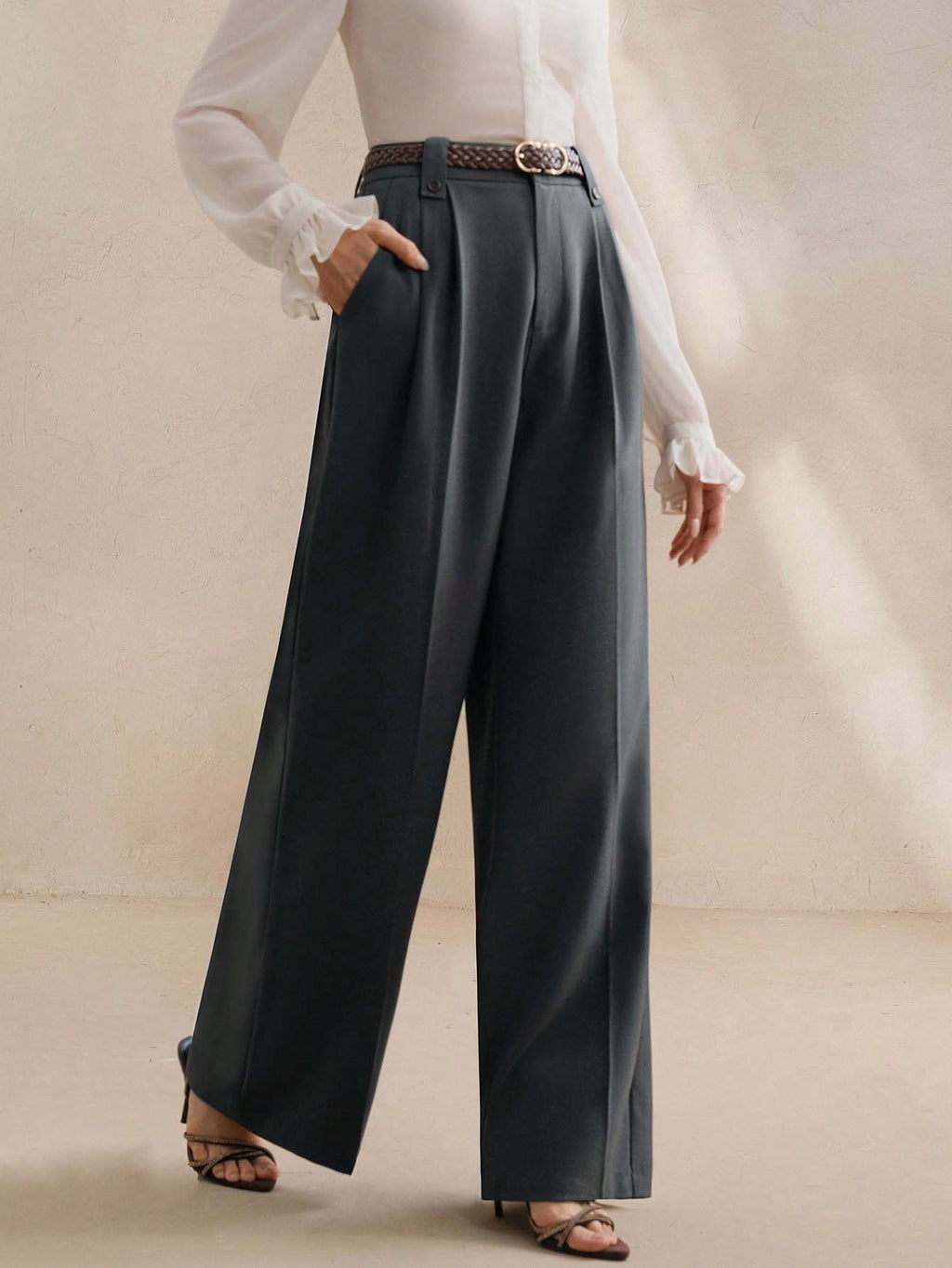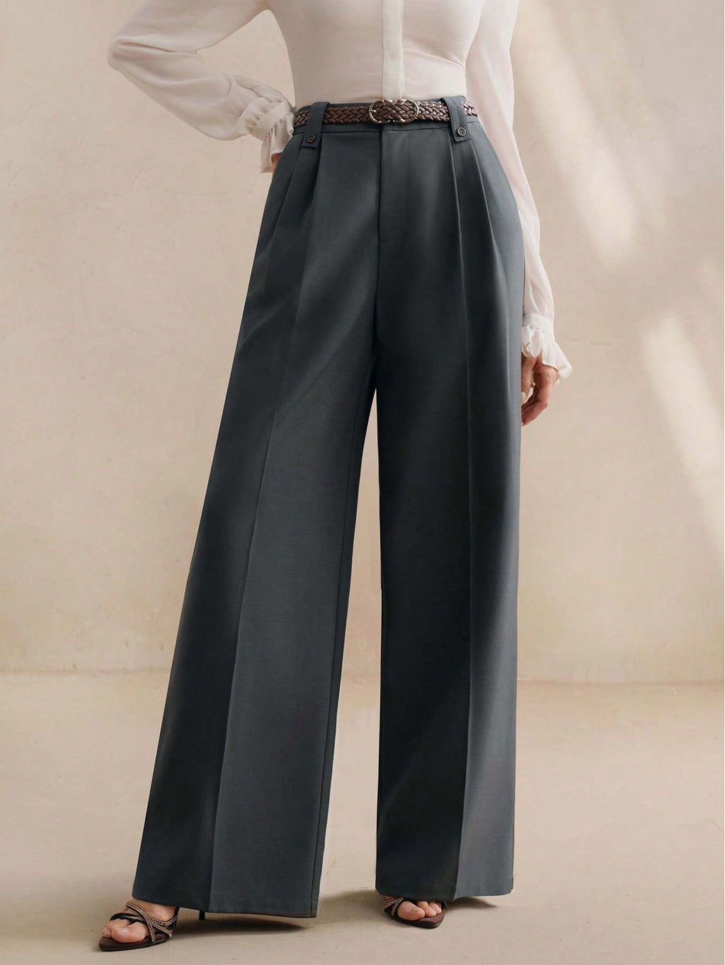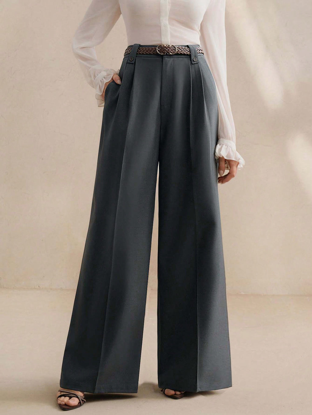 MIU Fashionable Modern Commute Faux Linen Woven Brown Leather Belt, Suitable For Women's Suit Pants, Modest And Old Money Style