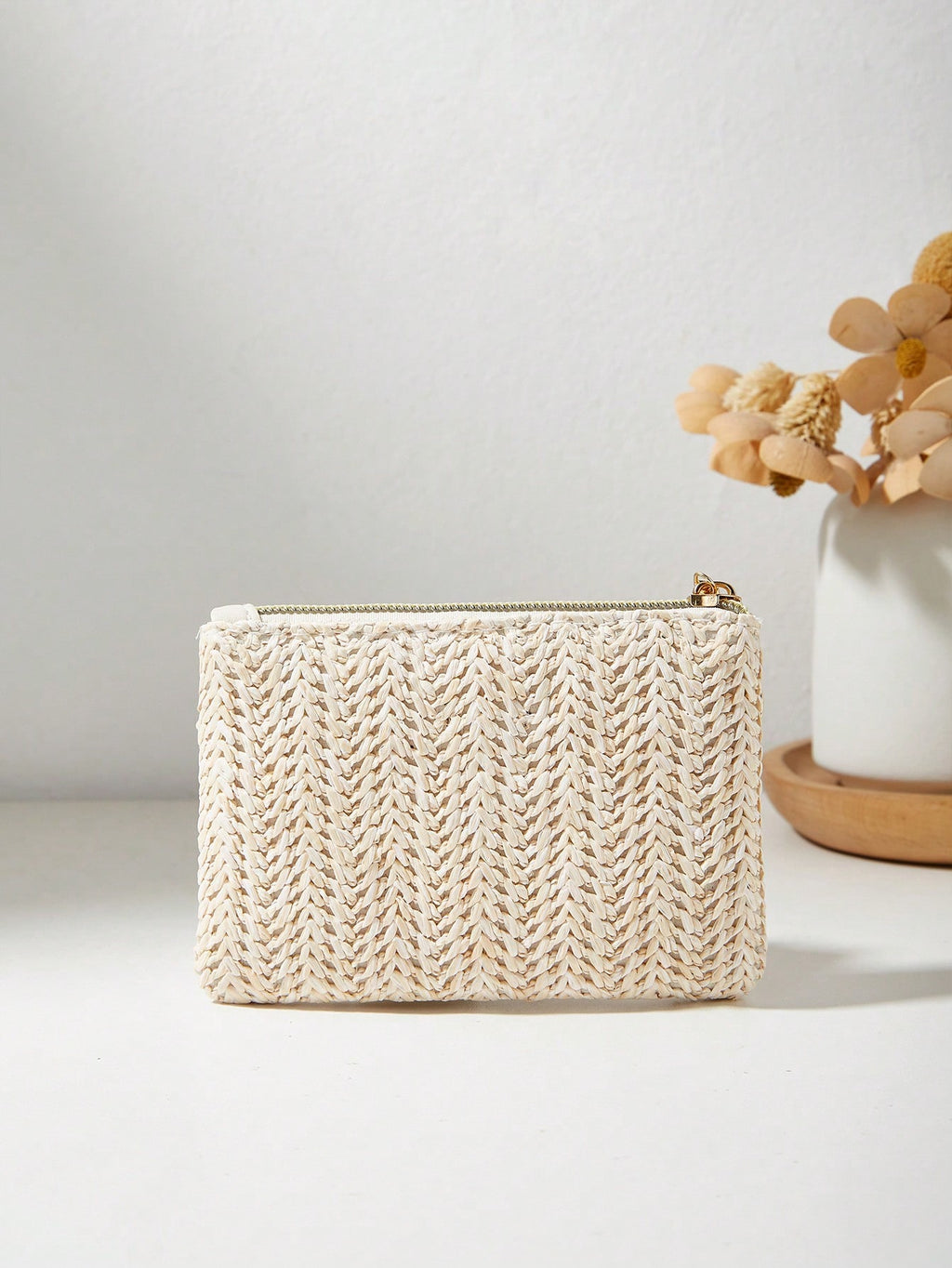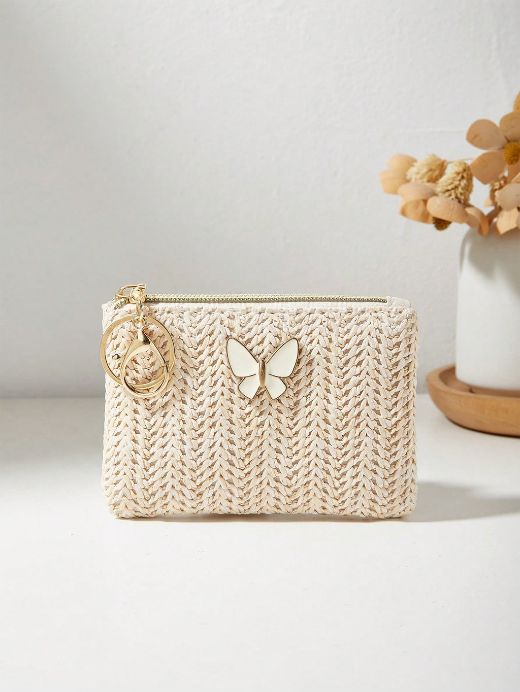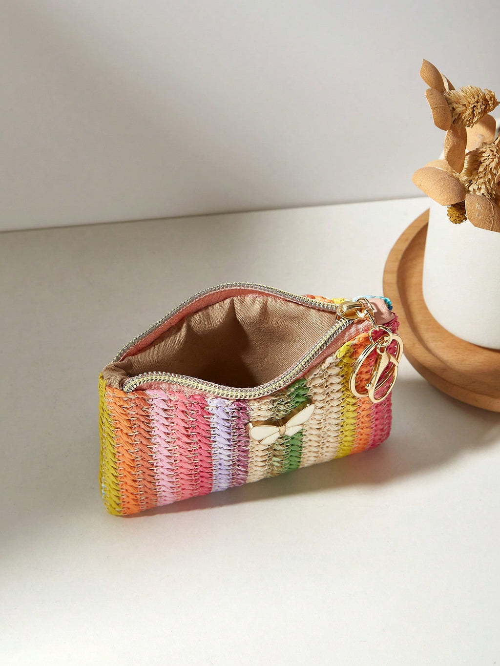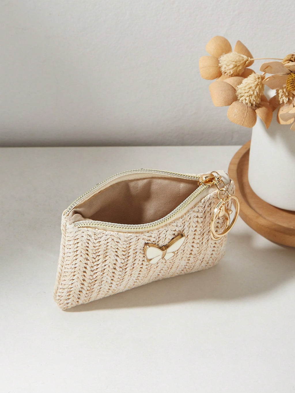 MIU Fashionable New Straw Weave Bag Bow Decor Lipstick