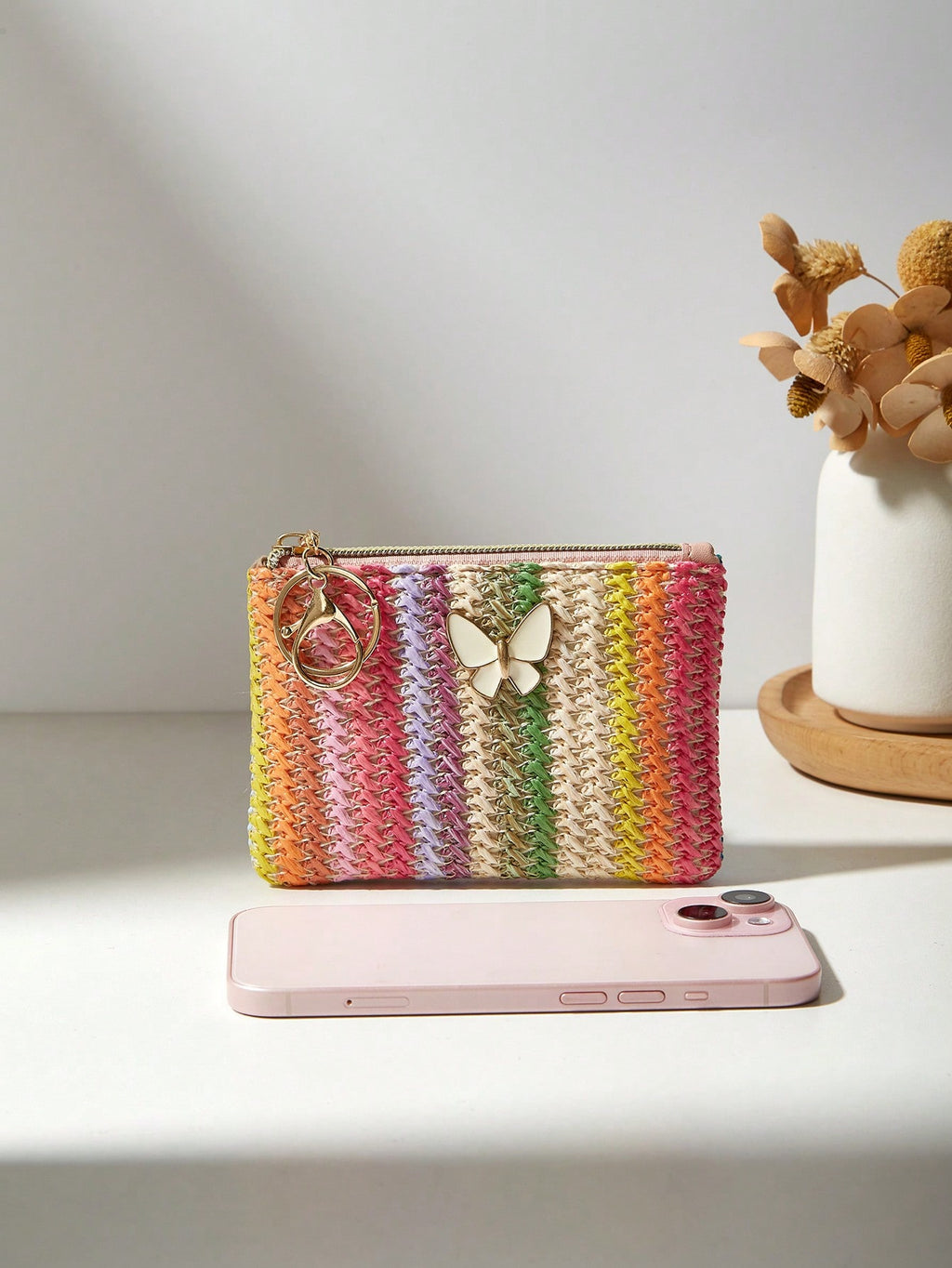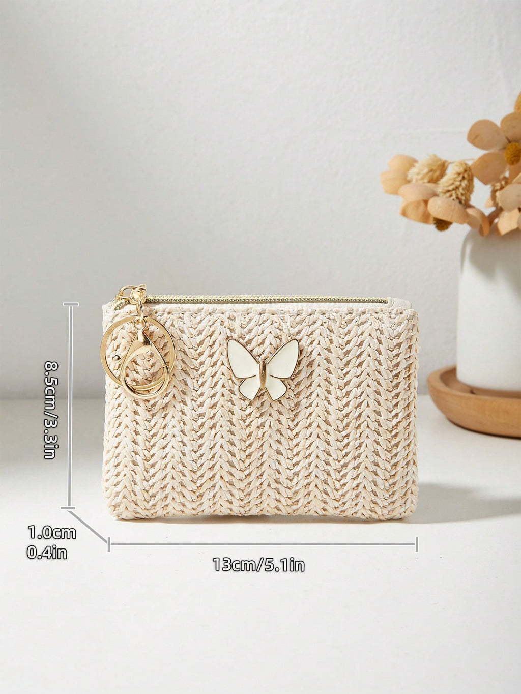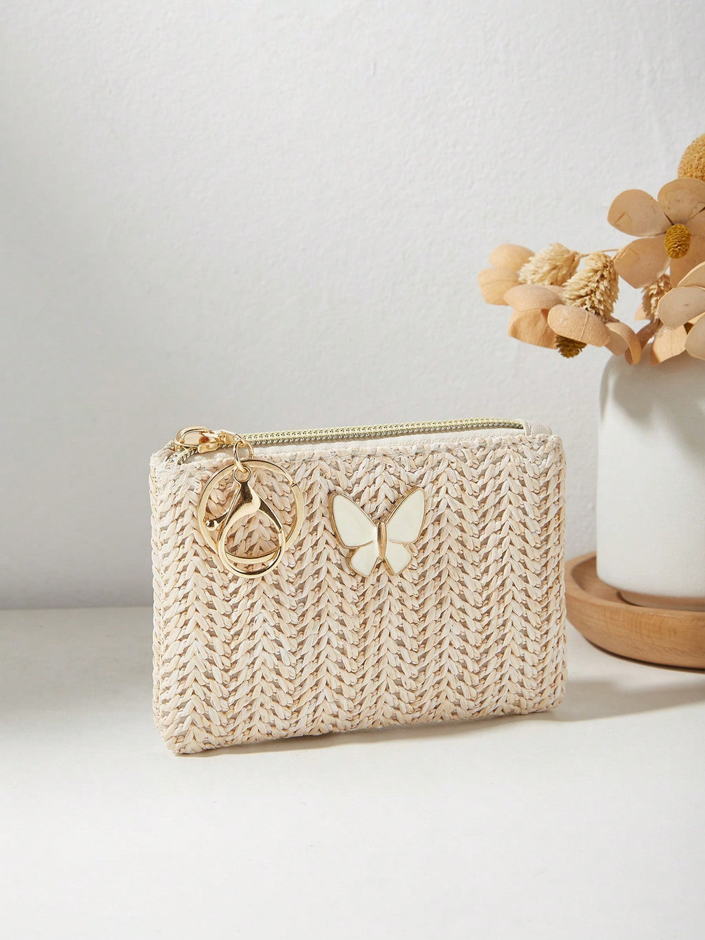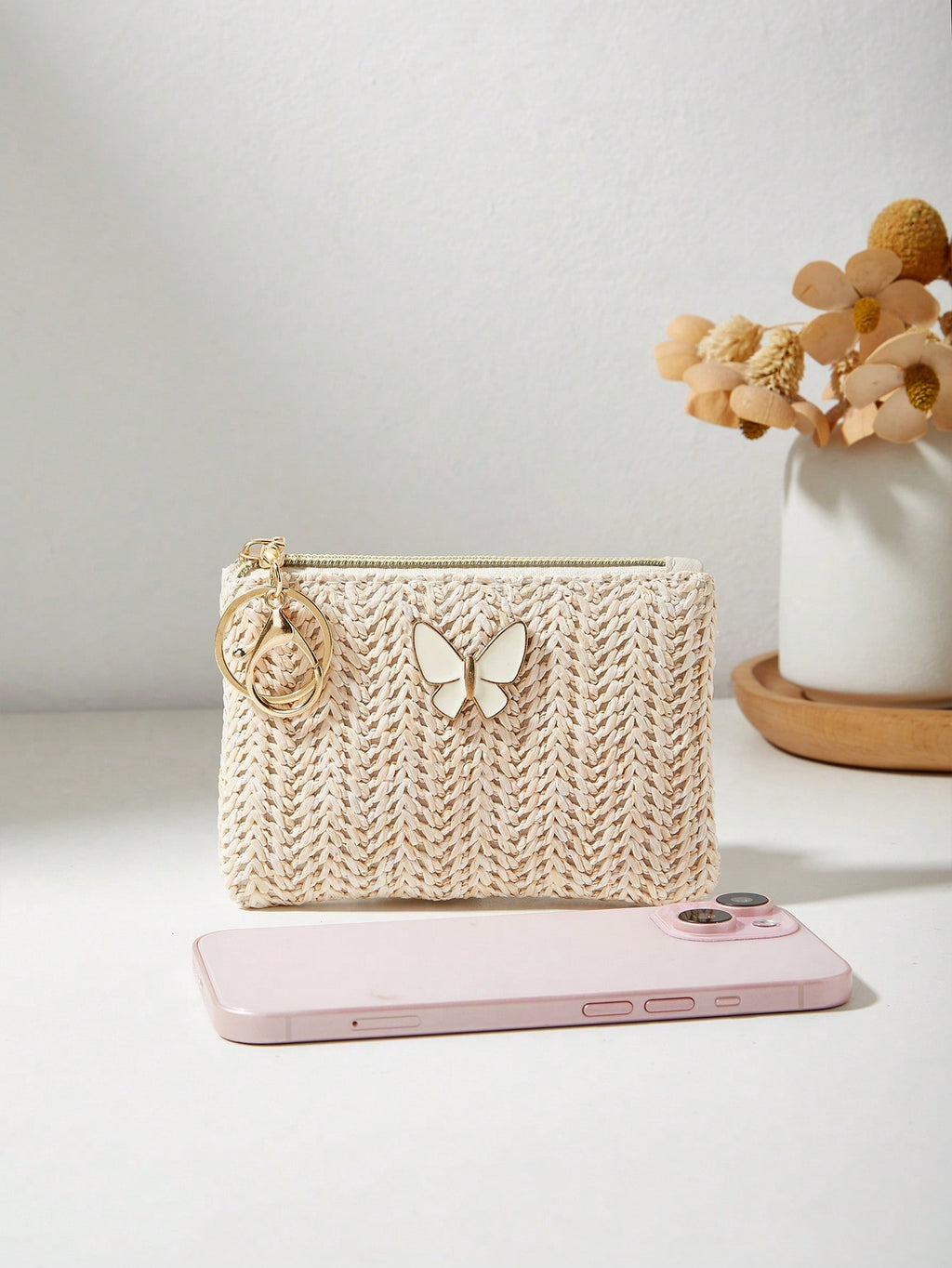 MIU Fashionable New Straw Weave Bag Bow Decor Lipstick
