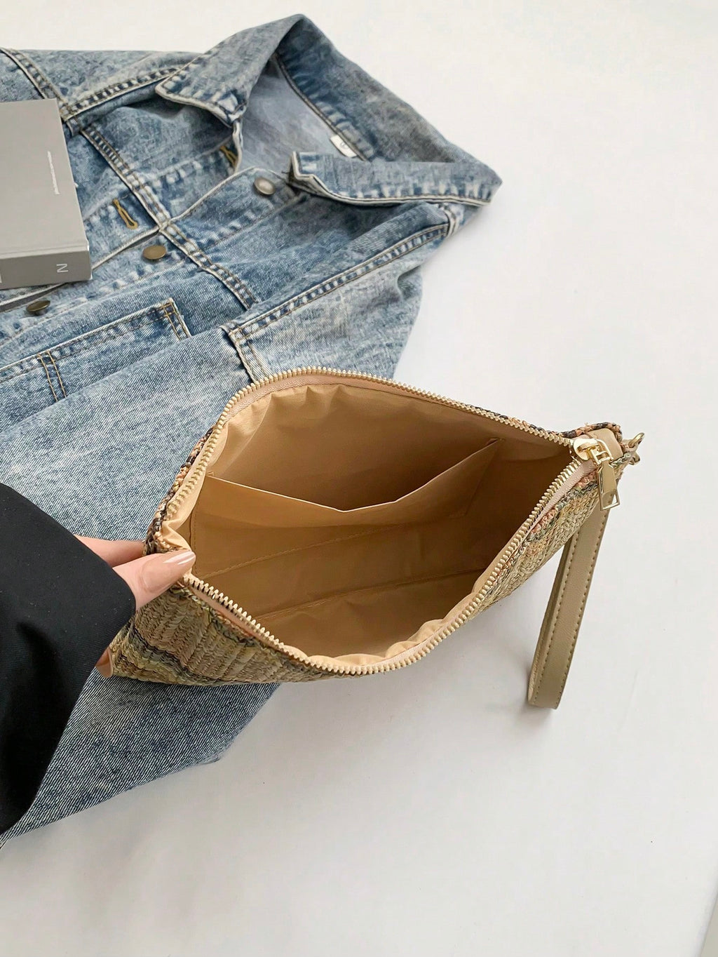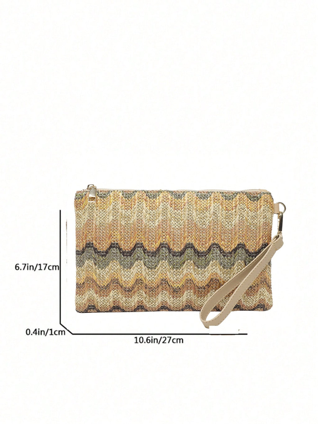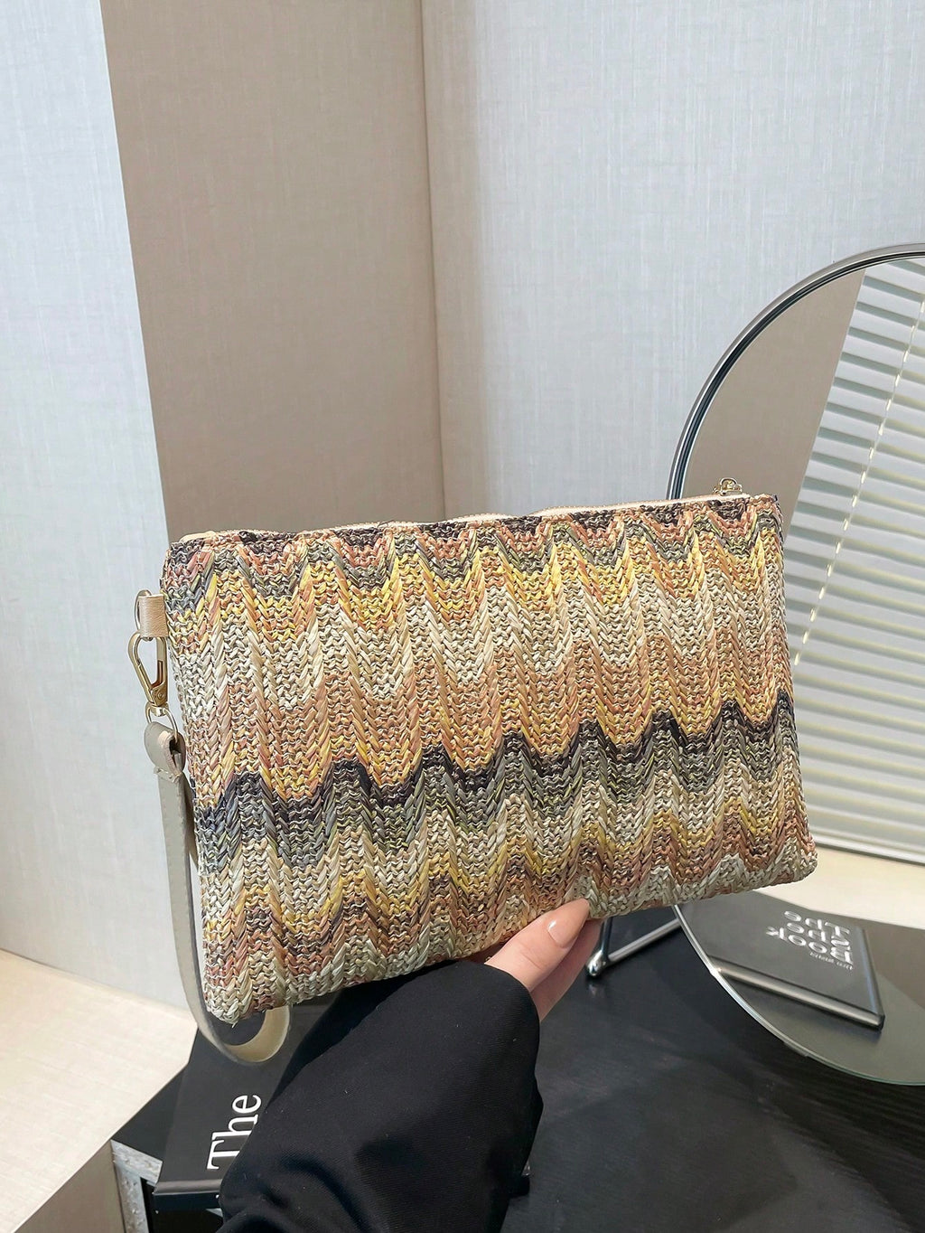 MIU Fashionable Spring/Summer New Multi-Purpose Woven Envelope Bag, Casual Color Block Wave Pattern Handbag