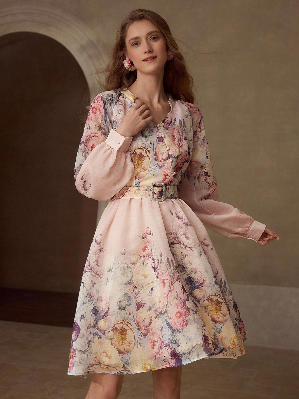 MIU FLORAL PRINT BELTED DRESS
