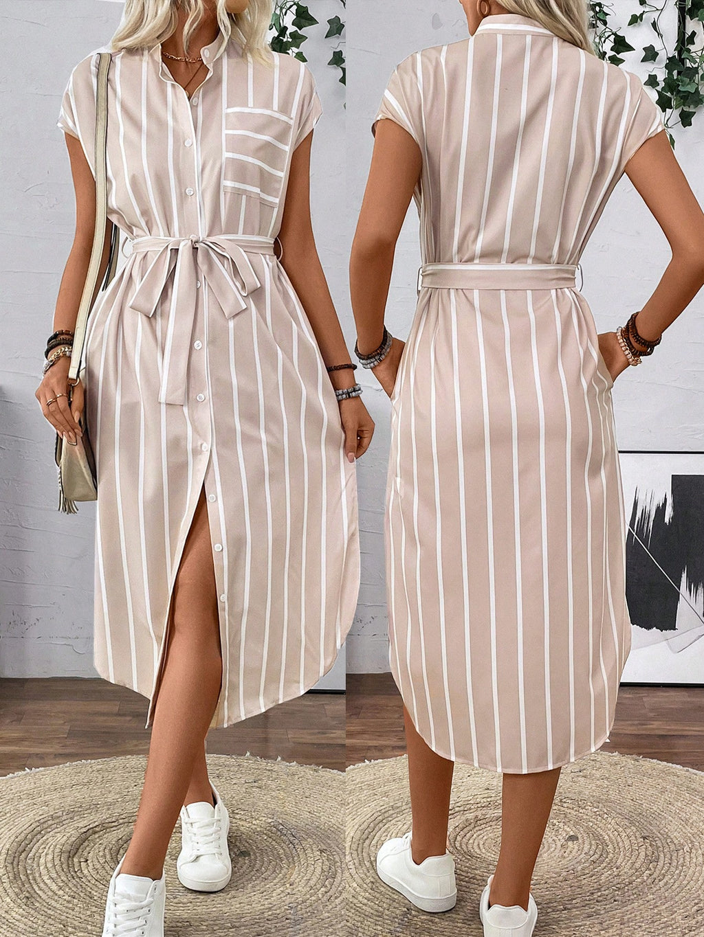 MIU AZRA Ženska Casual Prugasta Košulja sa Dugmadima