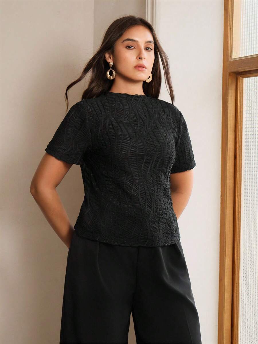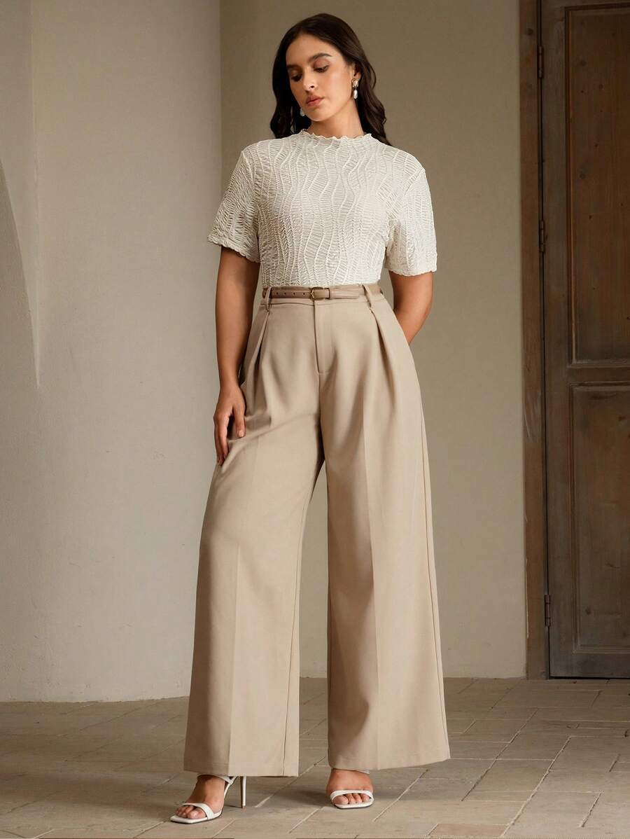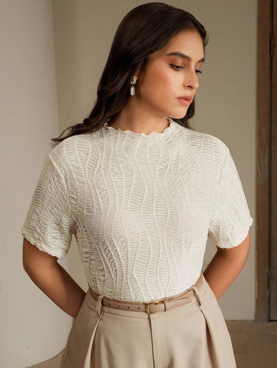 MIU Ladies' Spring/Summer Large Elegant And Fashionable Apricot Short Sleeved T-Shirt