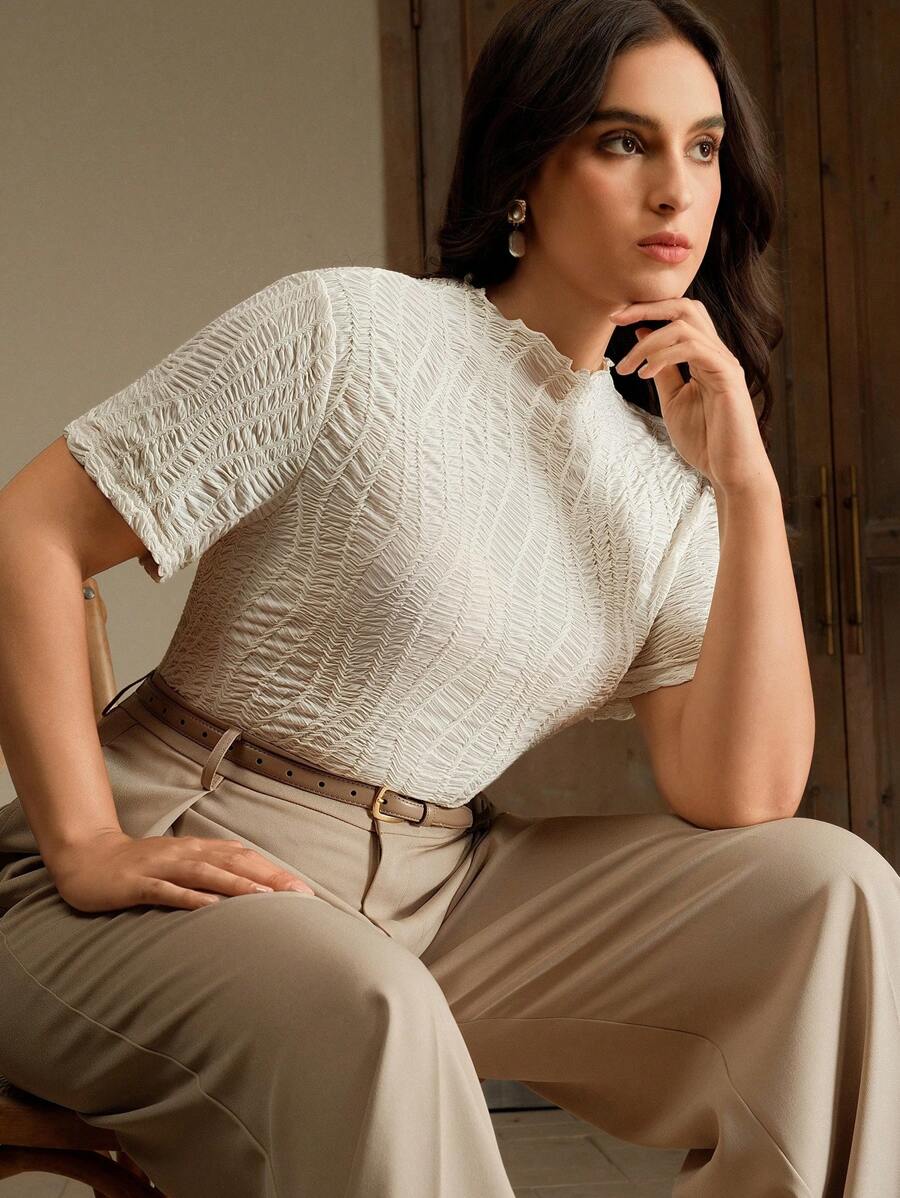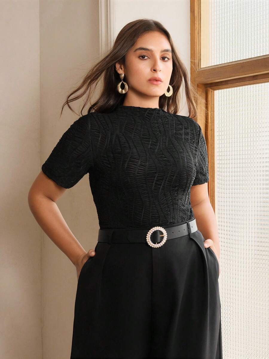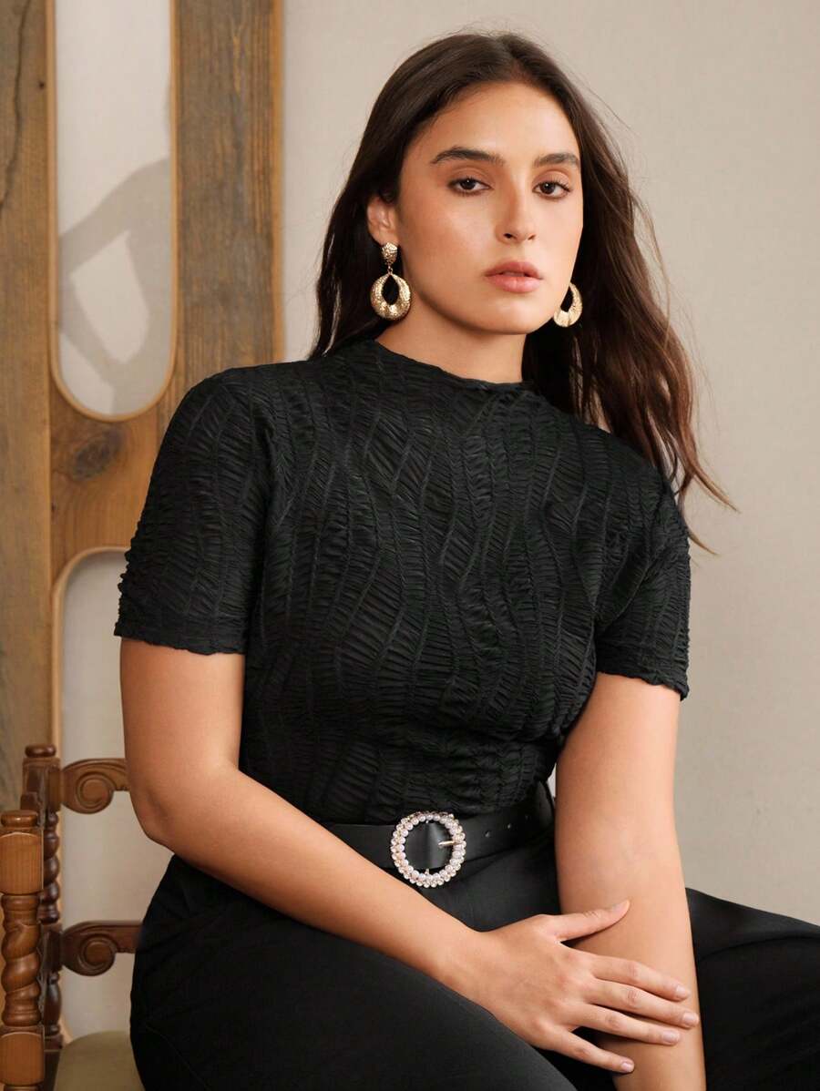 MIU Ladies' Spring/Summer Large Elegant And Fashionable Apricot Short Sleeved T-Shirt