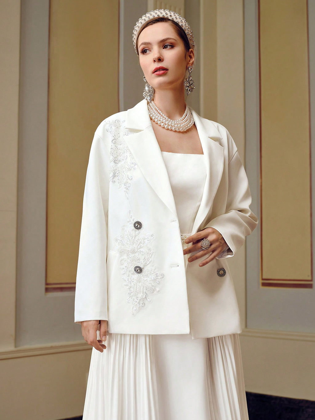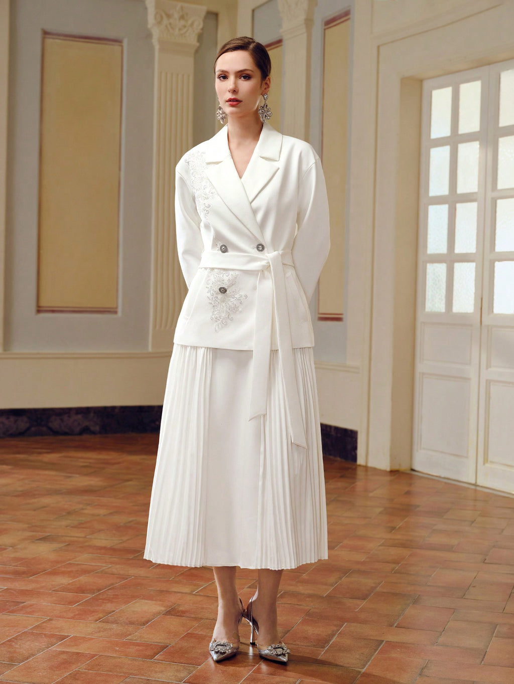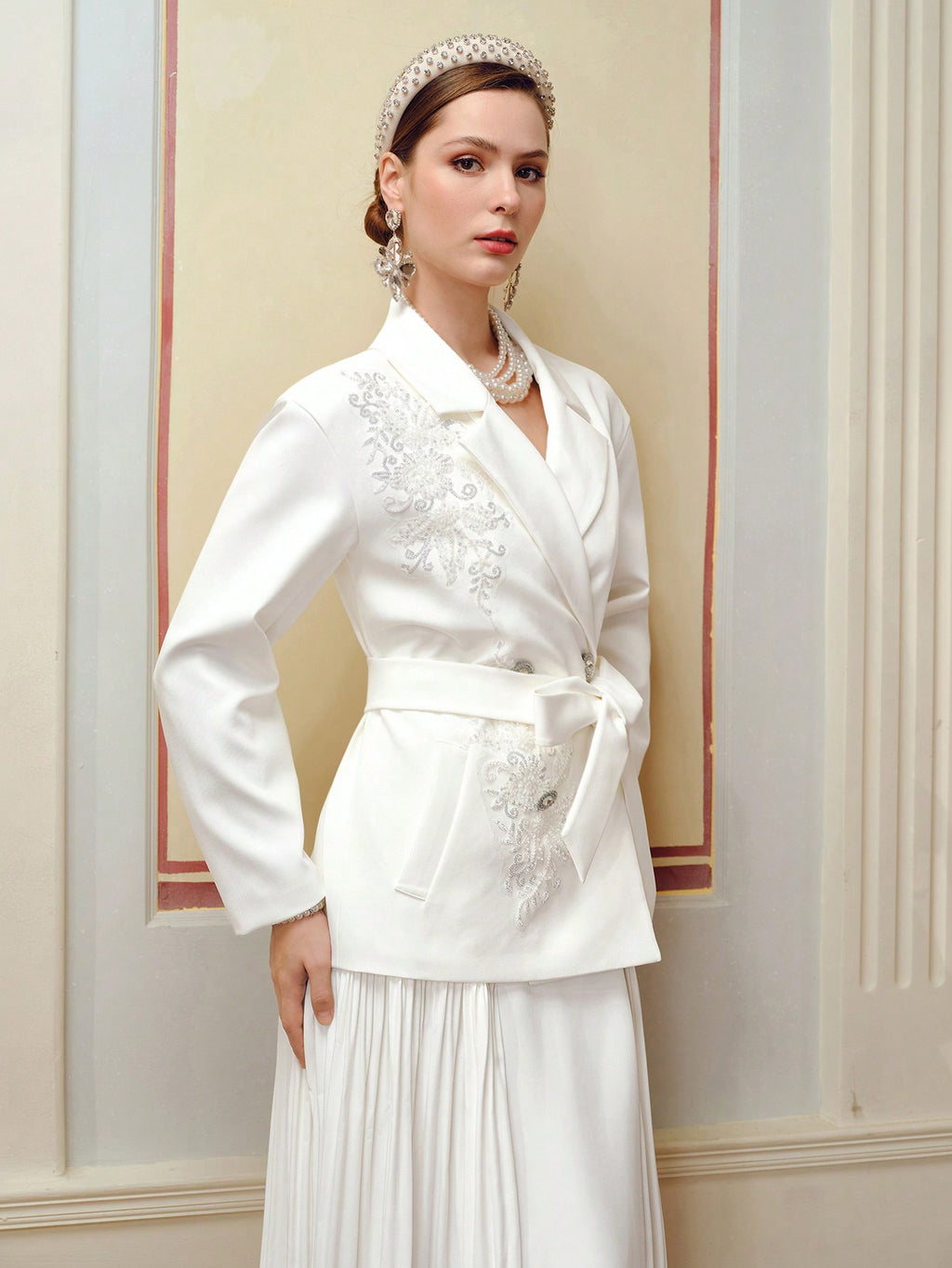 MIU LAPEL COLLAR SEQUIN DETAIL BELTED DOUBLE BREASTED PLACKET BLAZER