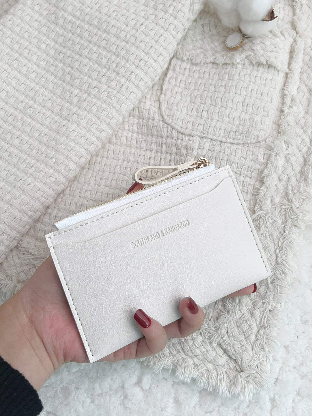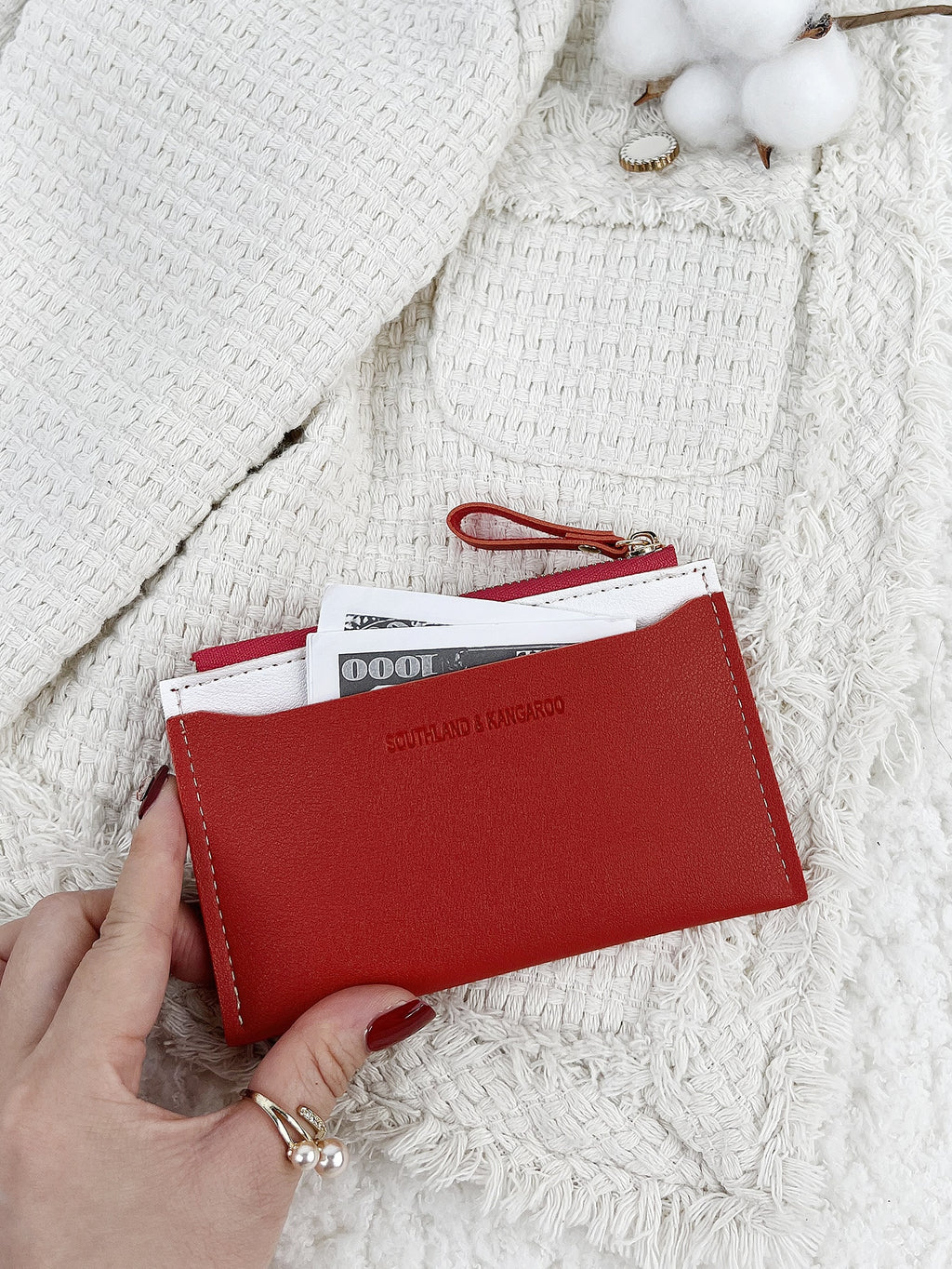 MIU AZRA Elegantna mini suknja s perlama u crvenom tweedu za žene