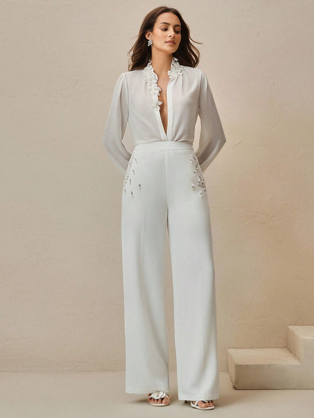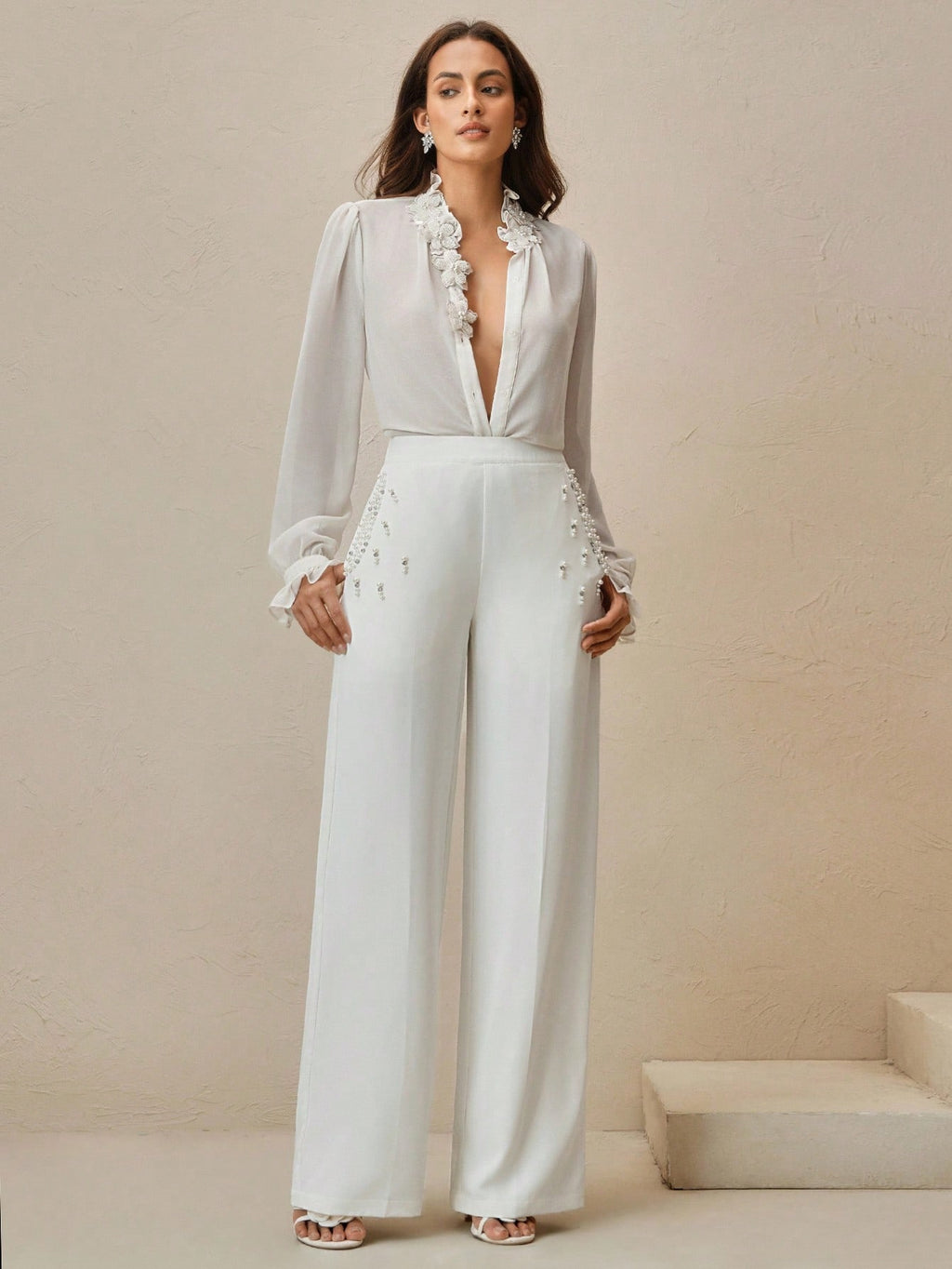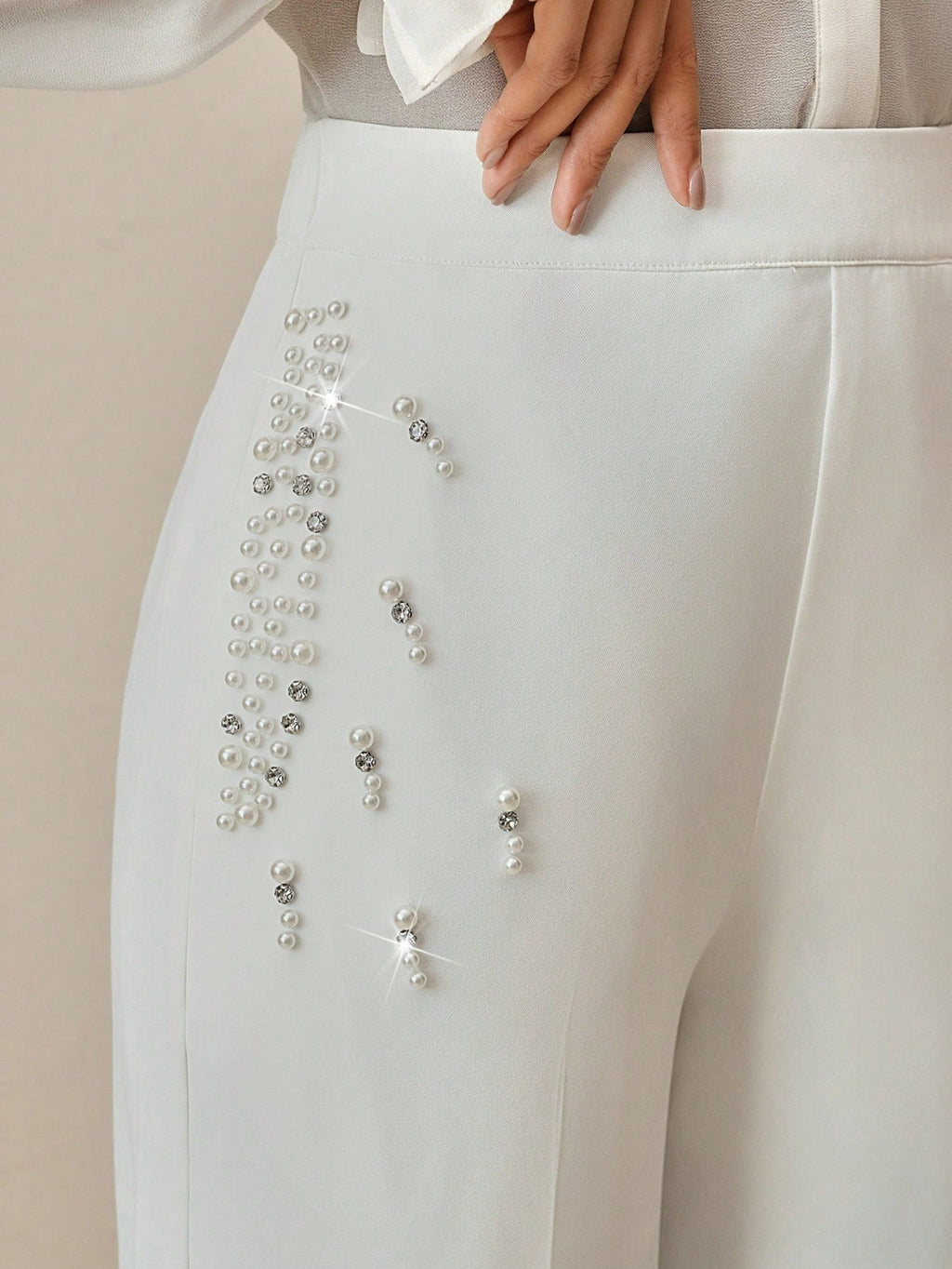 MIU Luxury Studded Embellished High Waist Loose Straight Leg Women Pants
