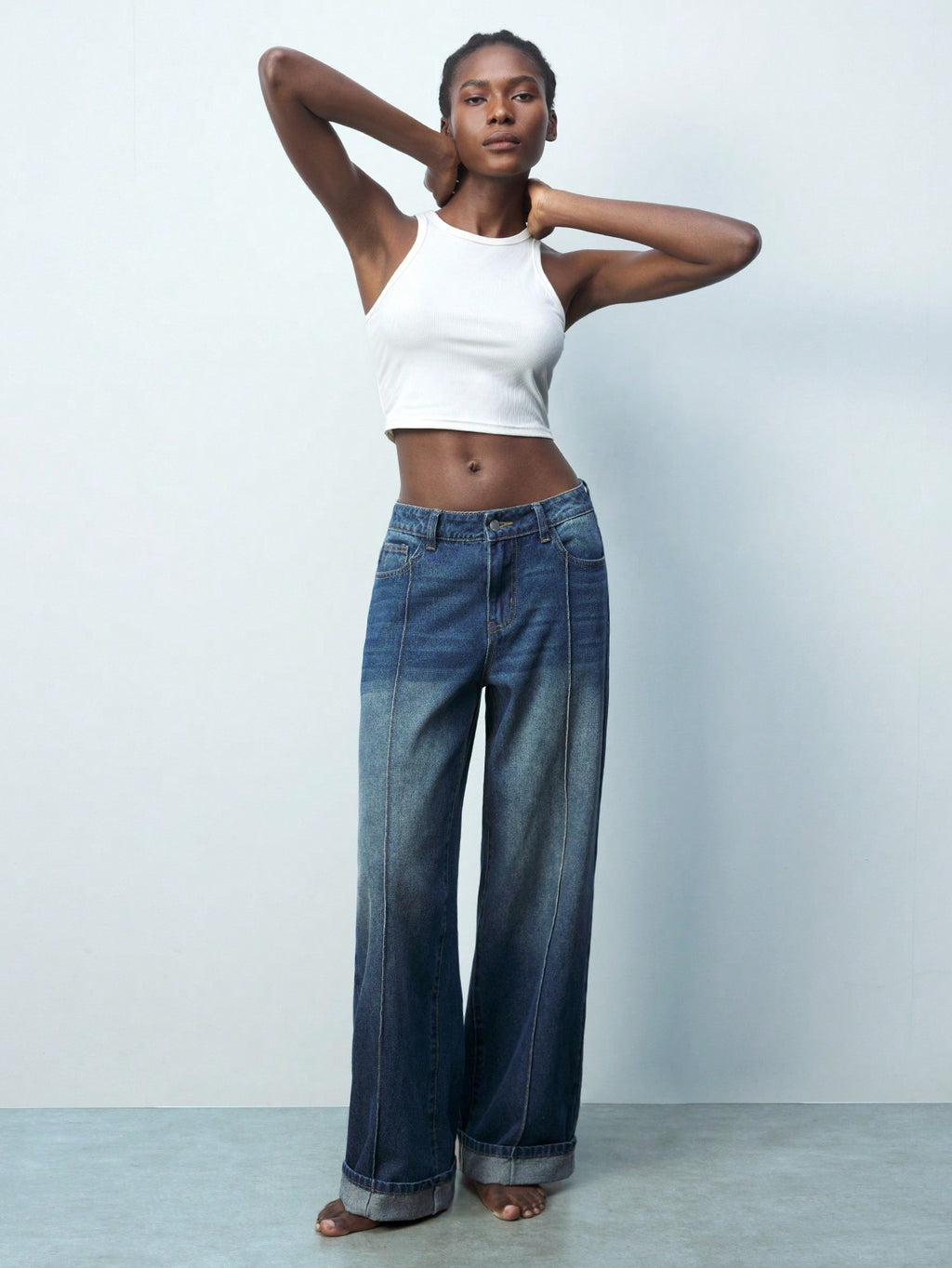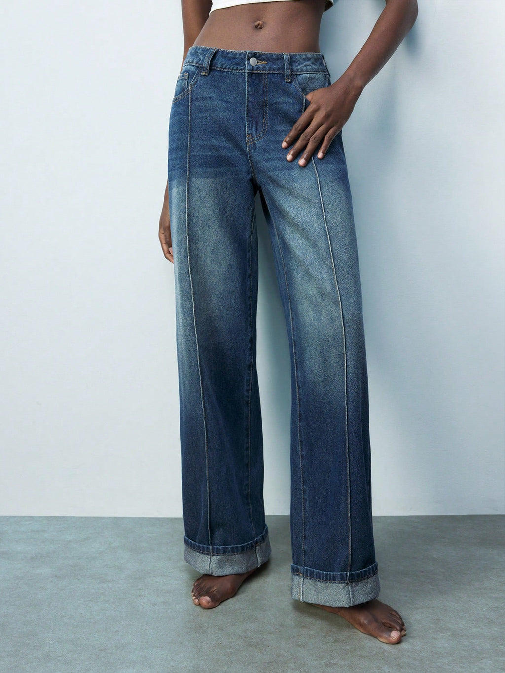 MIU Modern Casual Close-Fitting Mid-Waist Women's Jeans, Fashion Classic Versatile Spring/Summer Western Wear Women