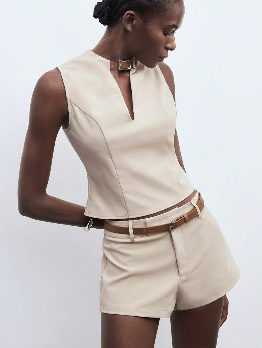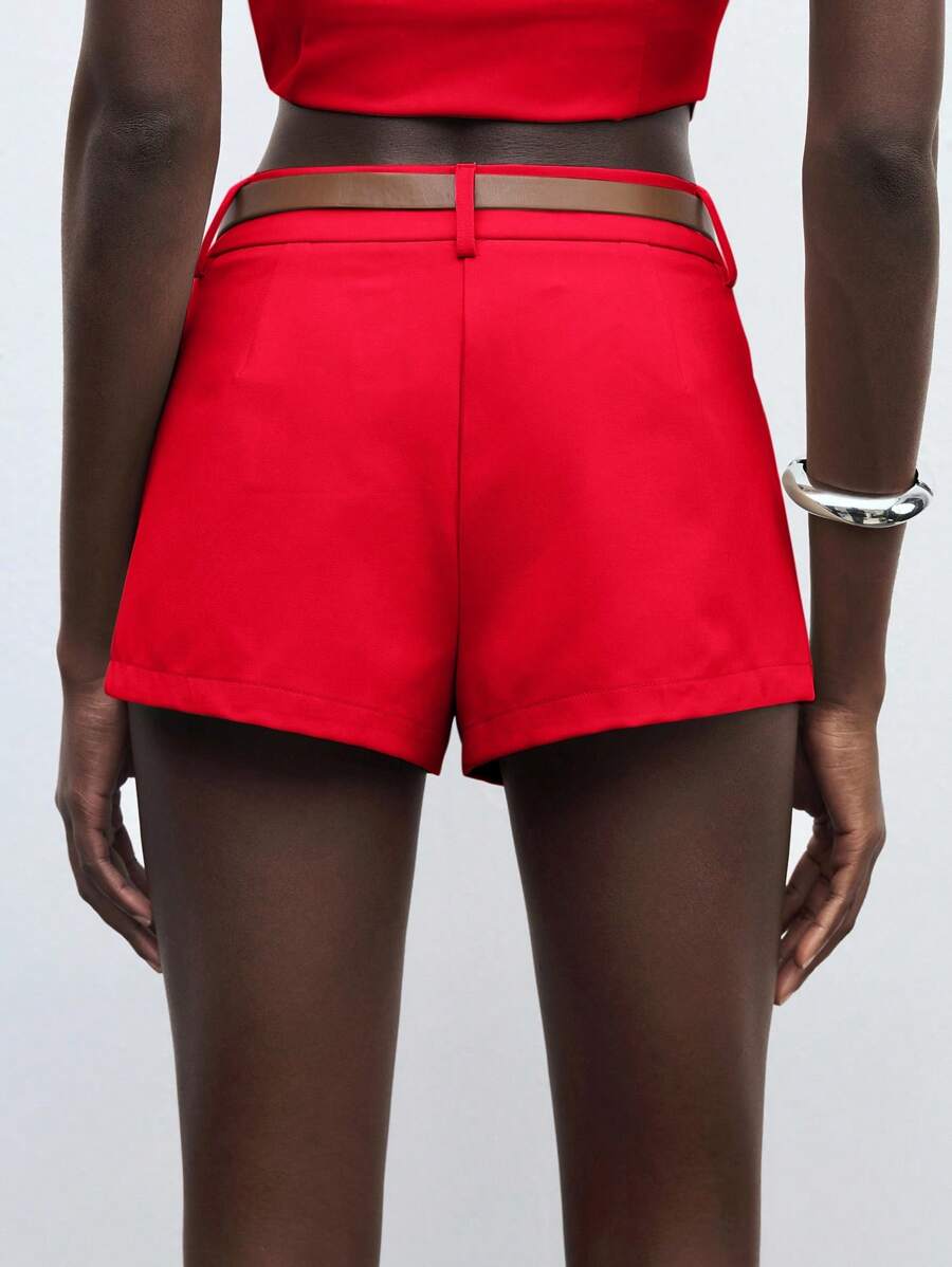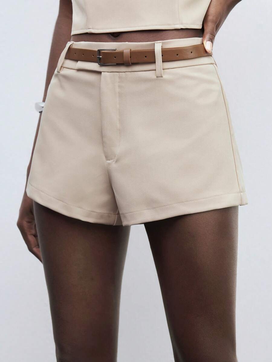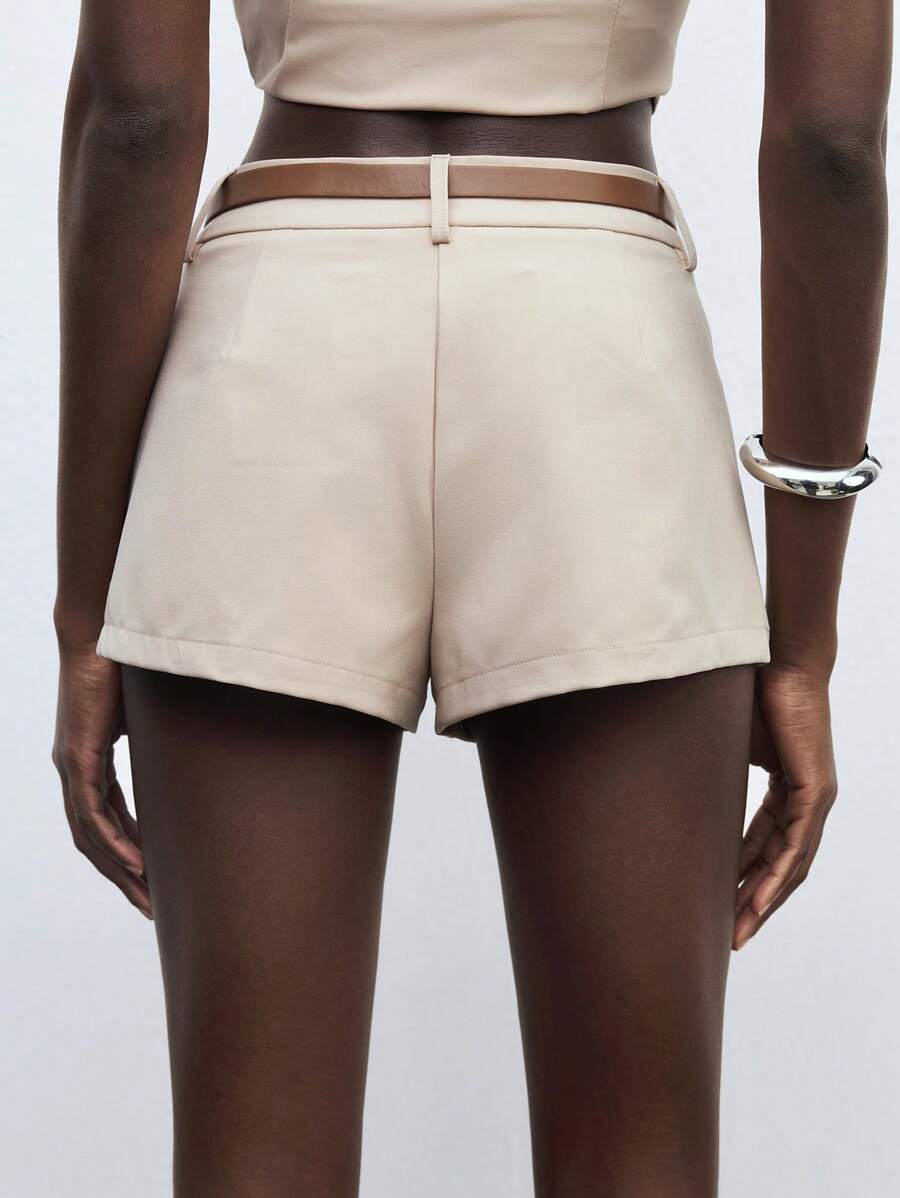 MIU Modern Urban Style Women Shorts With Belt Decor, Minimalist Fashionable Chic, Versatile Summer Outfit