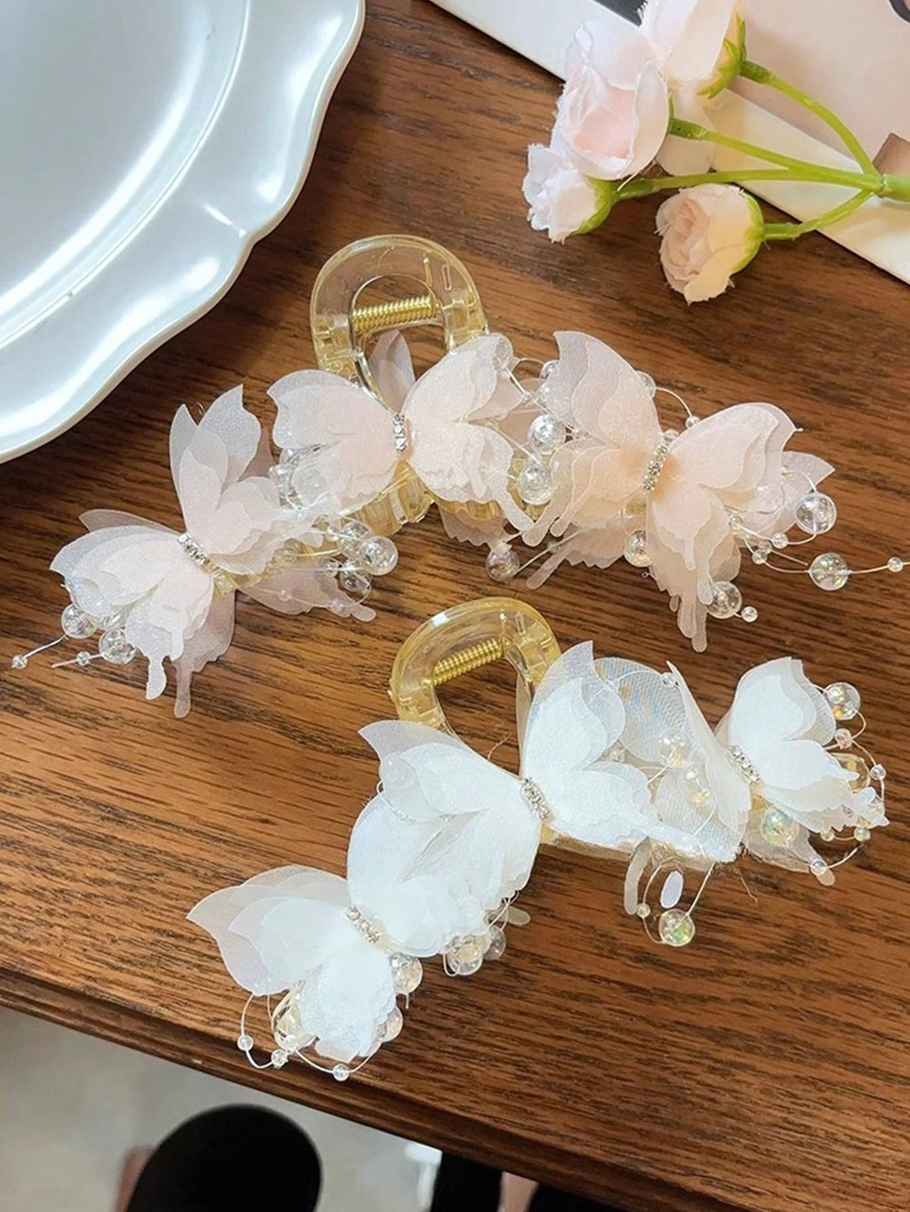 MIU Multi-Layered Mesh Butterfly Hair Claw, Sweet And High-Grade Hair Clip, New Style Hair Jaw Clip For Women's Updo Hairstyles