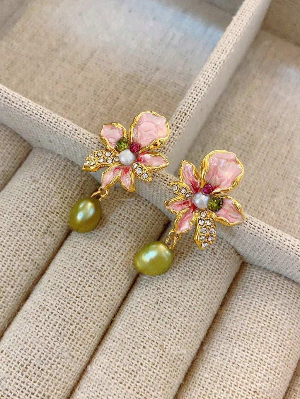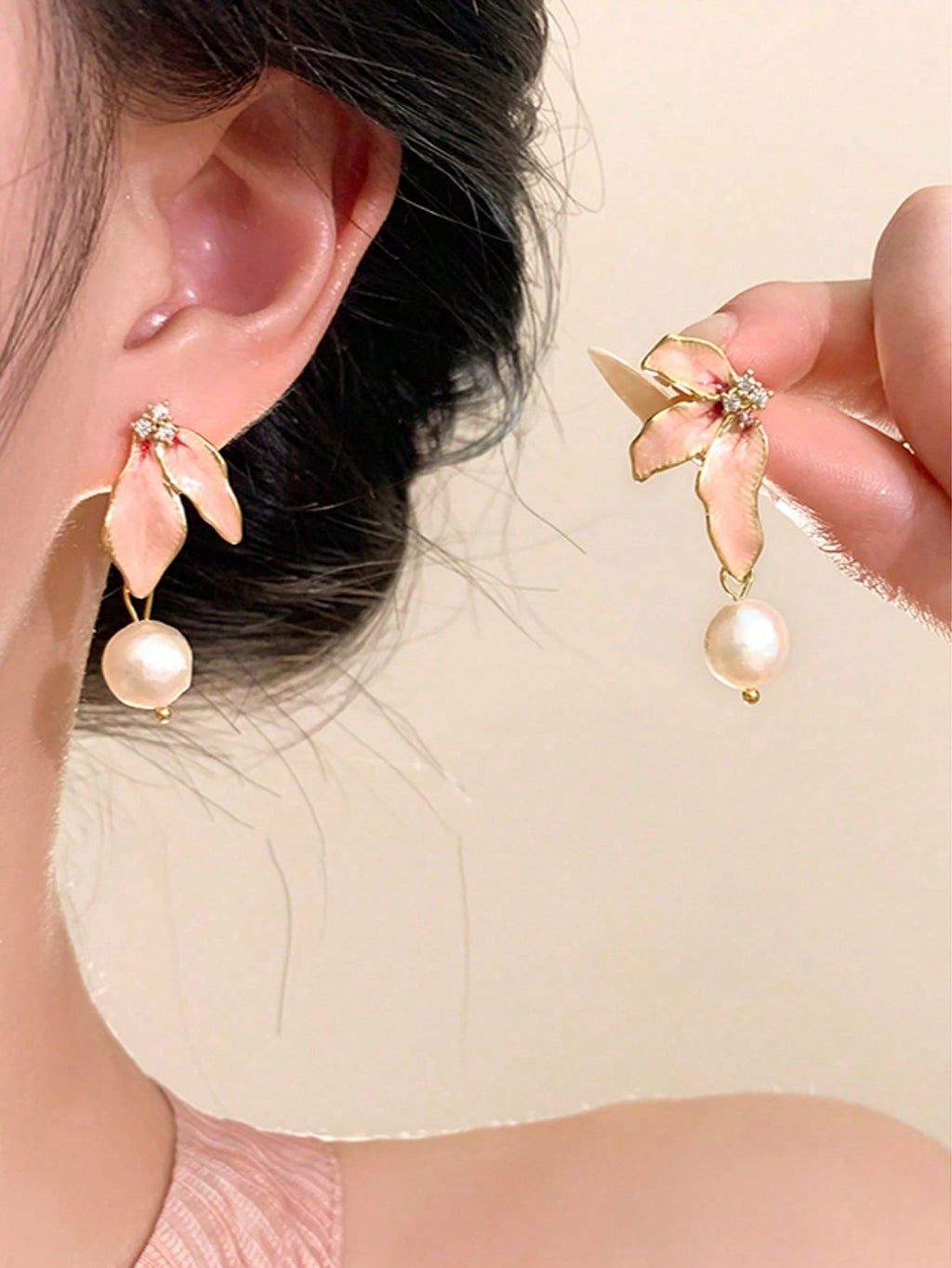 MIU Natural Faux Pearl Flower Earrings For Women, Vintage