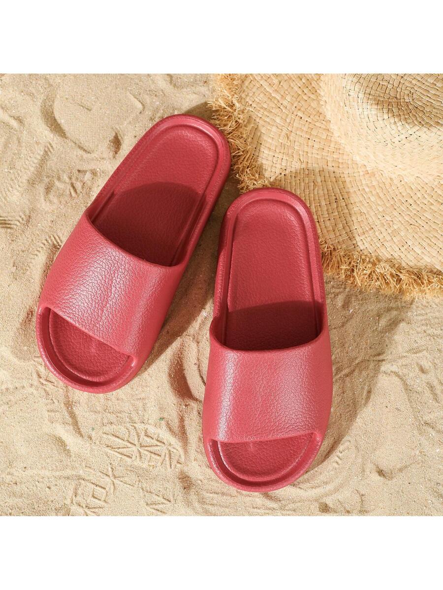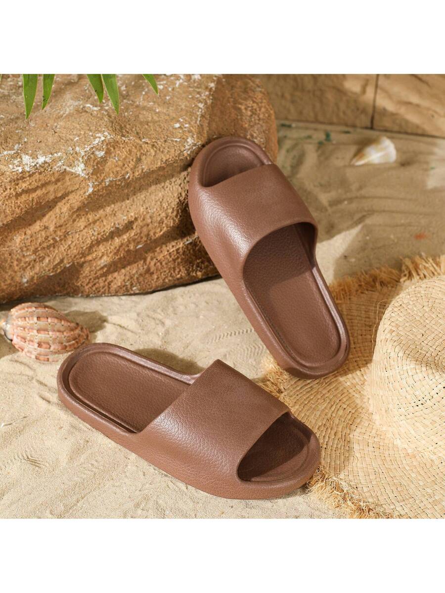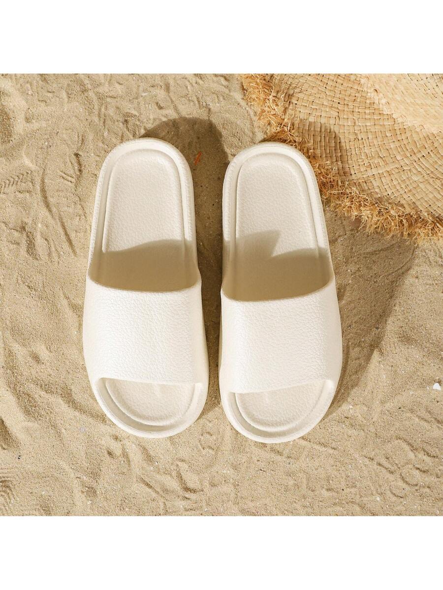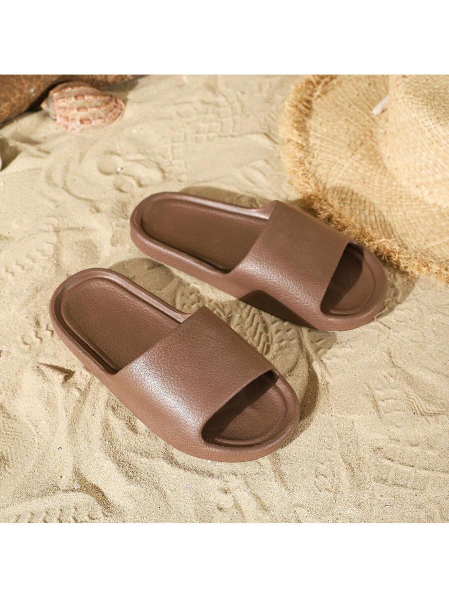 MIU New Fashion Striped Faux Leather Texture EVA Slippers, High-End Simple Ins Style, Suitable For Home, Bathroom And Outdoor Guest Slippers, Lightweight, Comfortable, And Soft