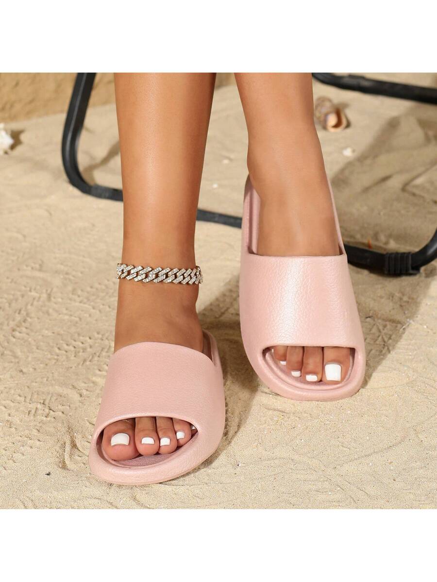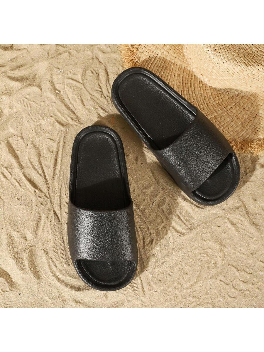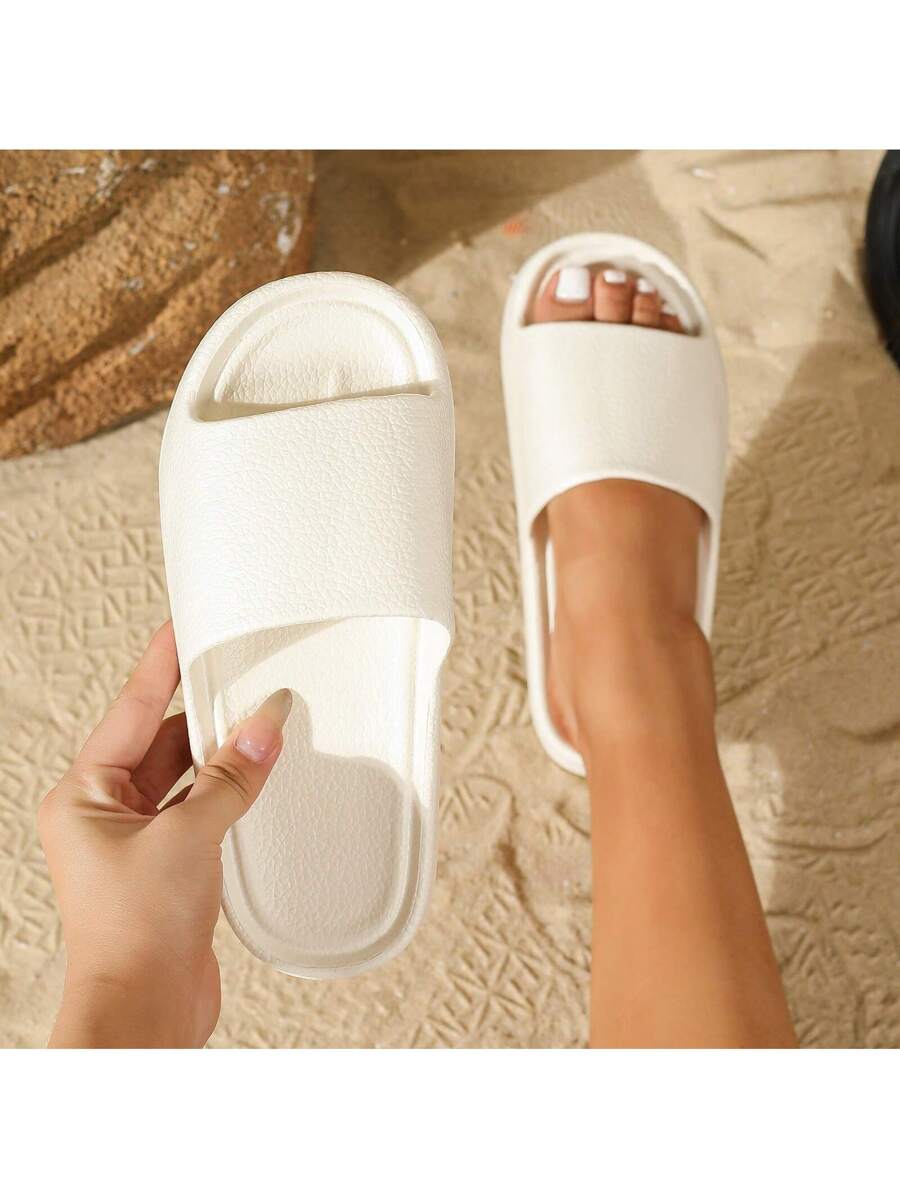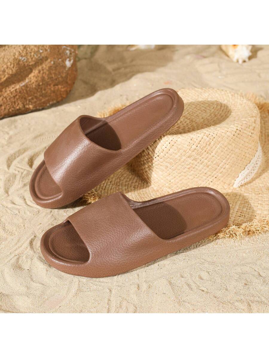 MIU New Fashion Striped Faux Leather Texture EVA Slippers, High-End Simple Ins Style, Suitable For Home, Bathroom And Outdoor Guest Slippers, Lightweight, Comfortable, And Soft