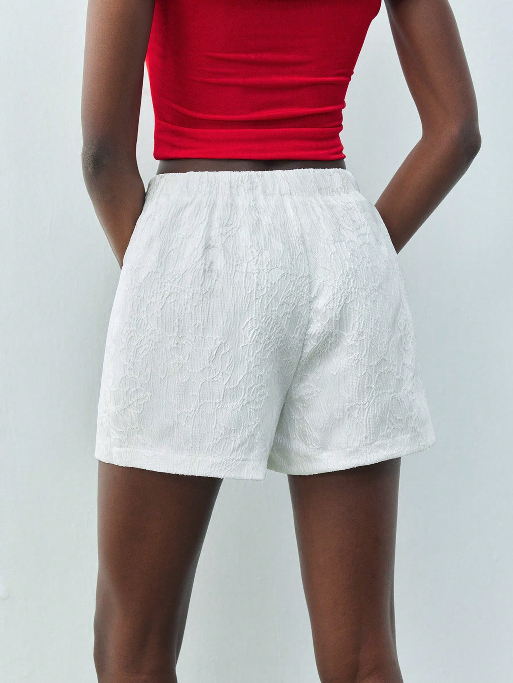 MIU New Spring And Summer Women's Shorts White Texture Flowers Elegant Modern Urban Daily Leisure Outing Valentine's Day Date Wear Old Money Style Outfit Valentine's Day Retro 90s Women's Clothing Bohemian Music Festival