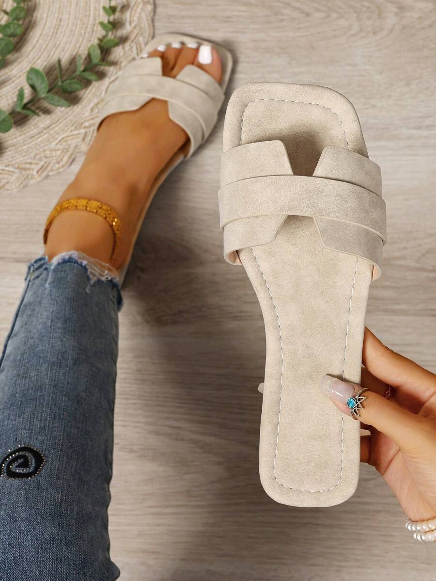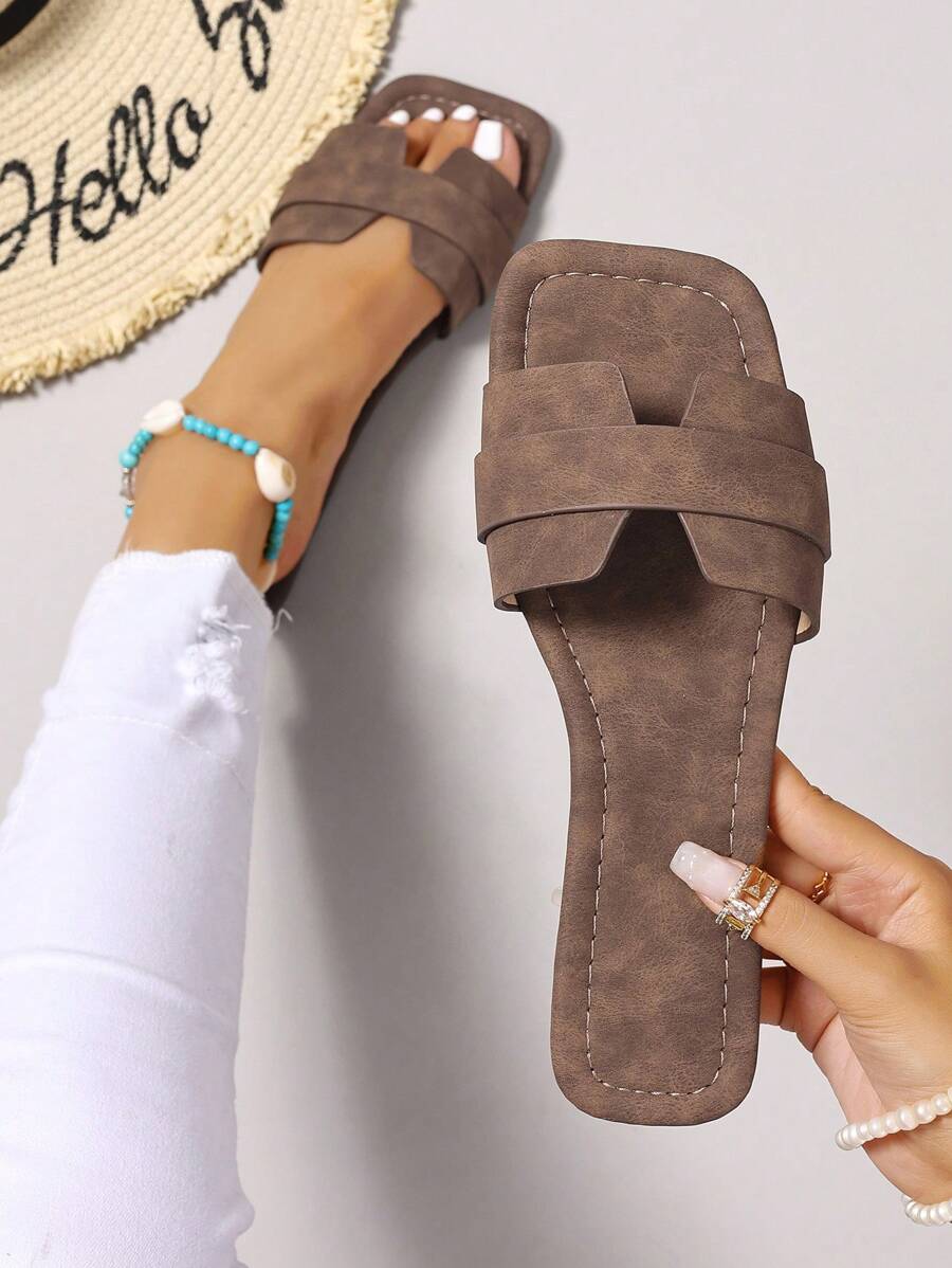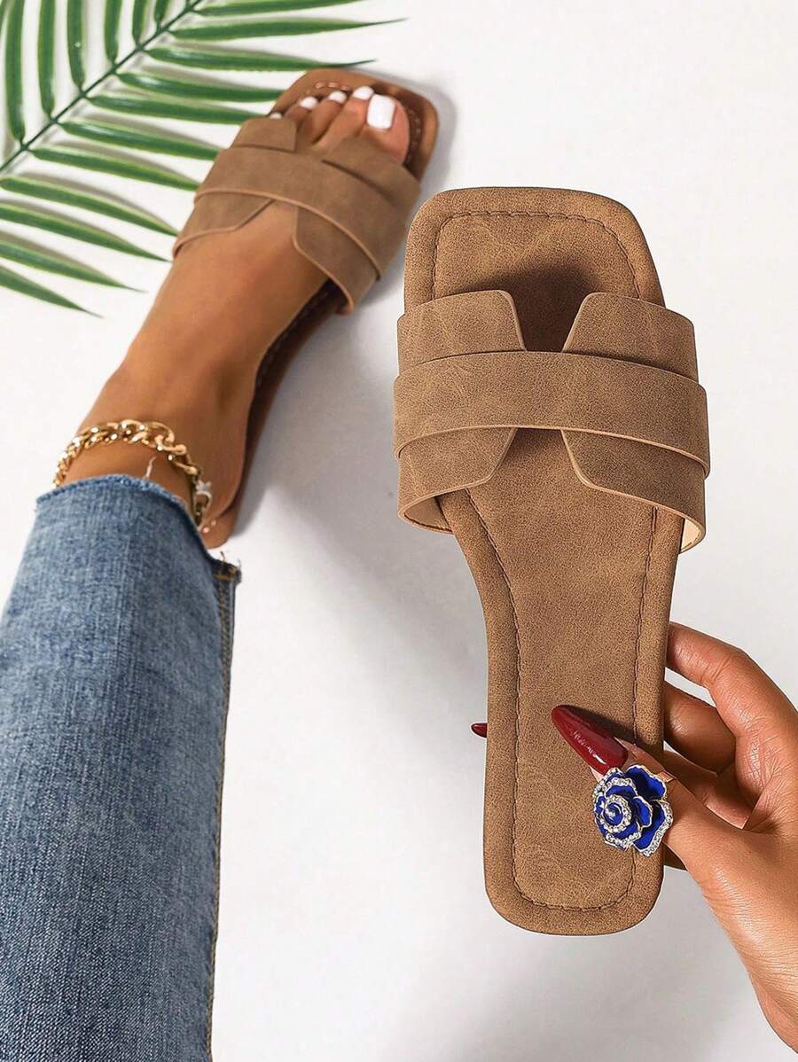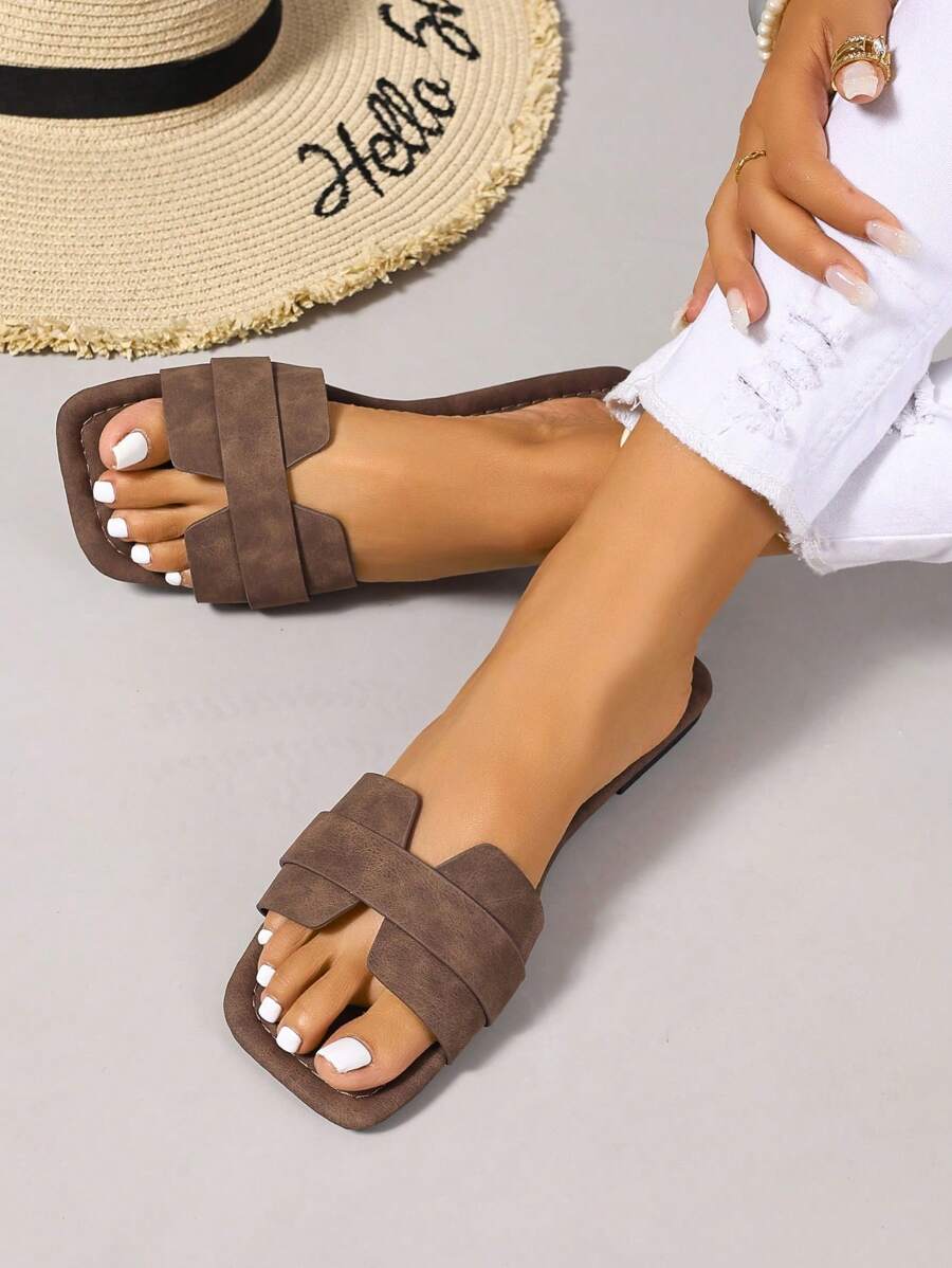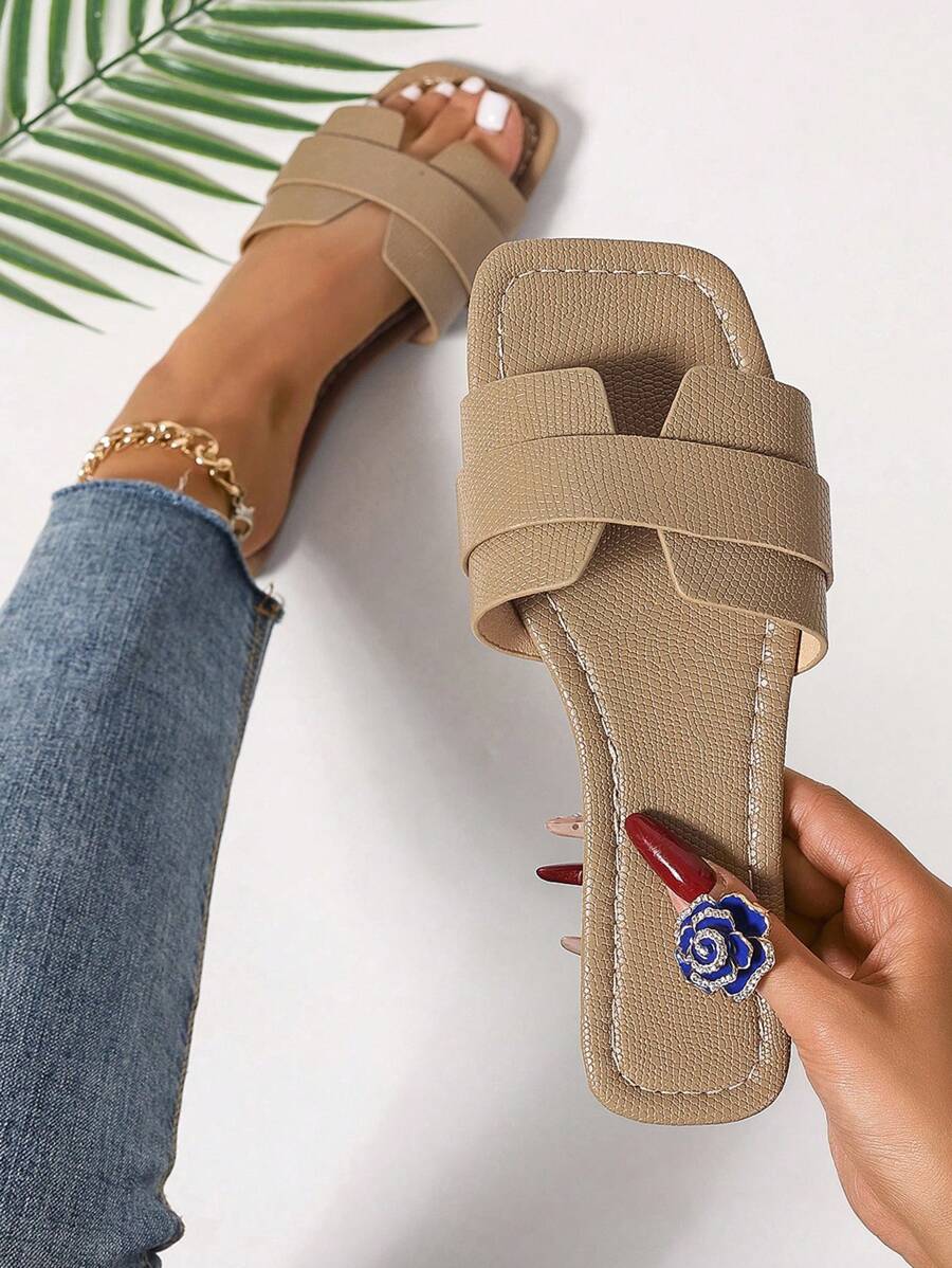 MIU New Spring/Summer Fashion Casual Strap Slip-On Sandals For Women, Comfortable Flat Slide Sandals, Suitable For Beach, Casual Wear