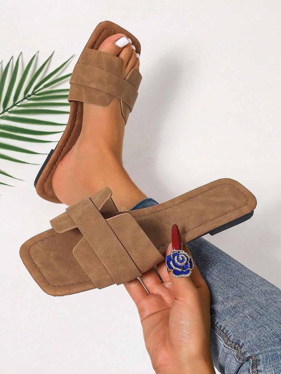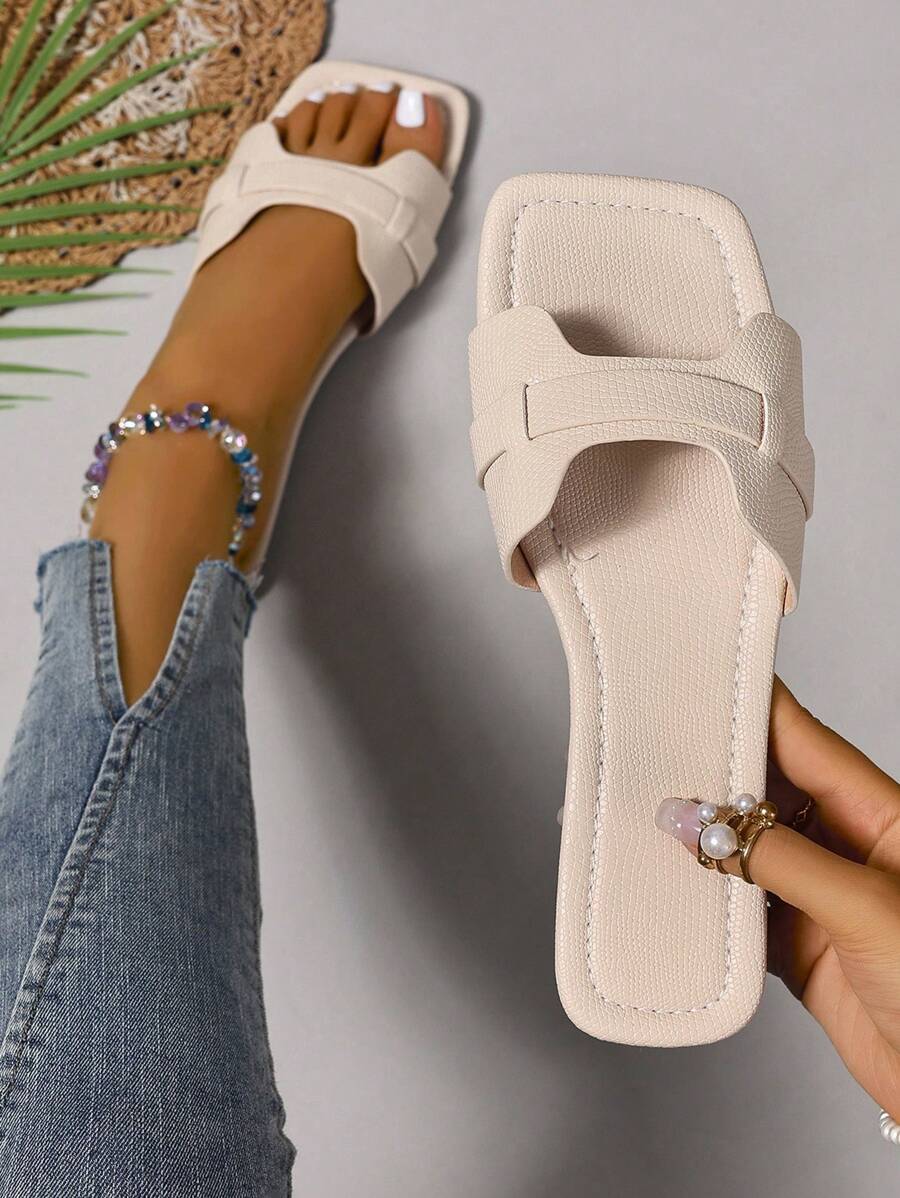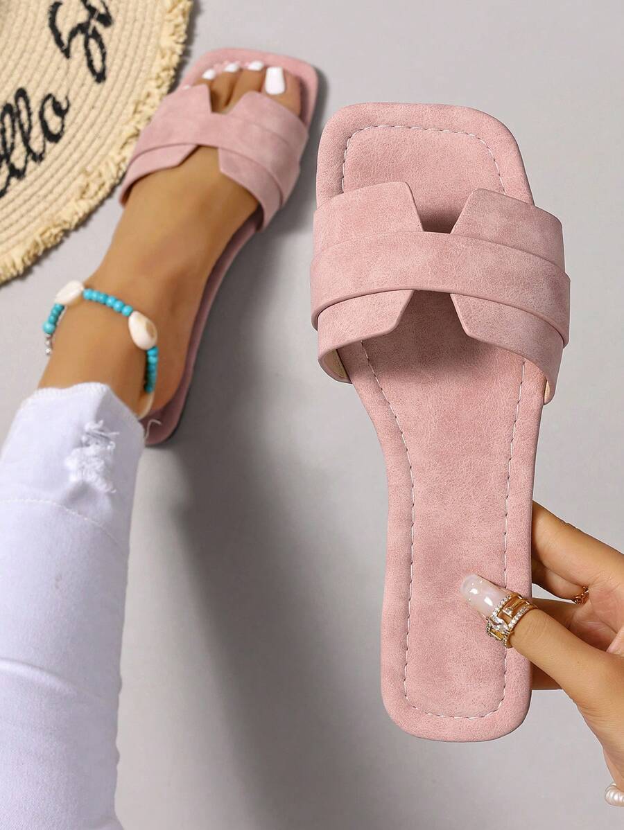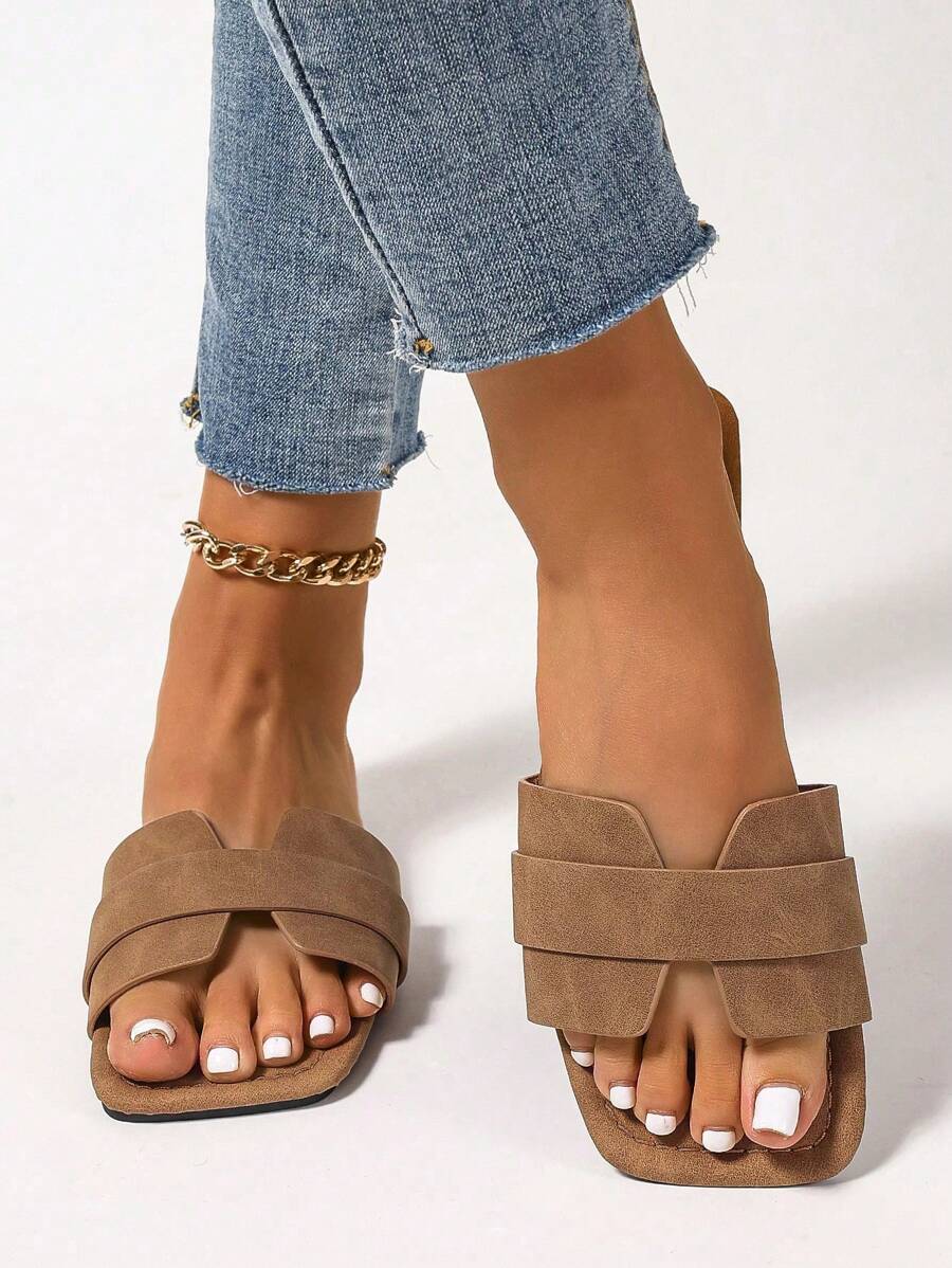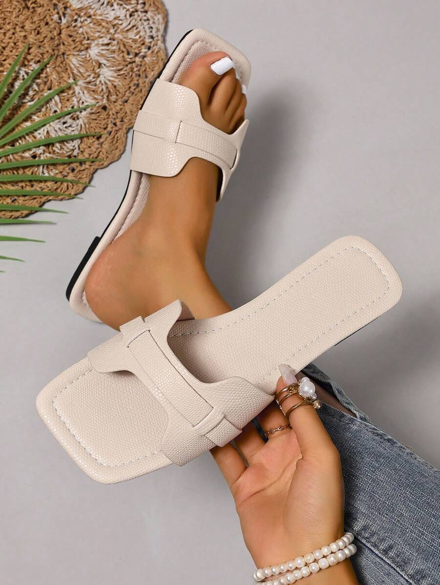 MIU New Spring/Summer Fashion Casual Strap Slip-On Sandals For Women, Comfortable Flat Slide Sandals, Suitable For Beach, Casual Wear