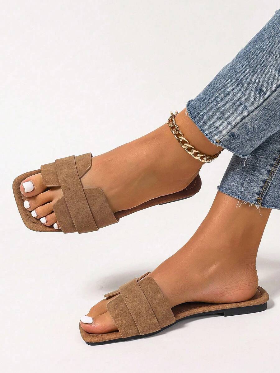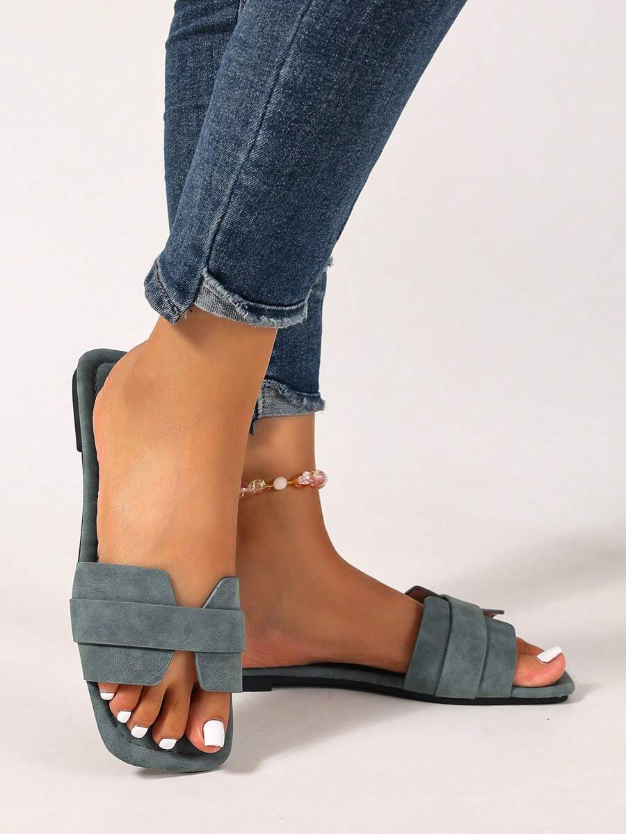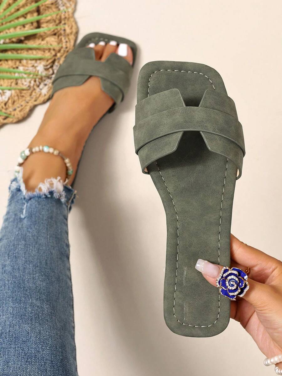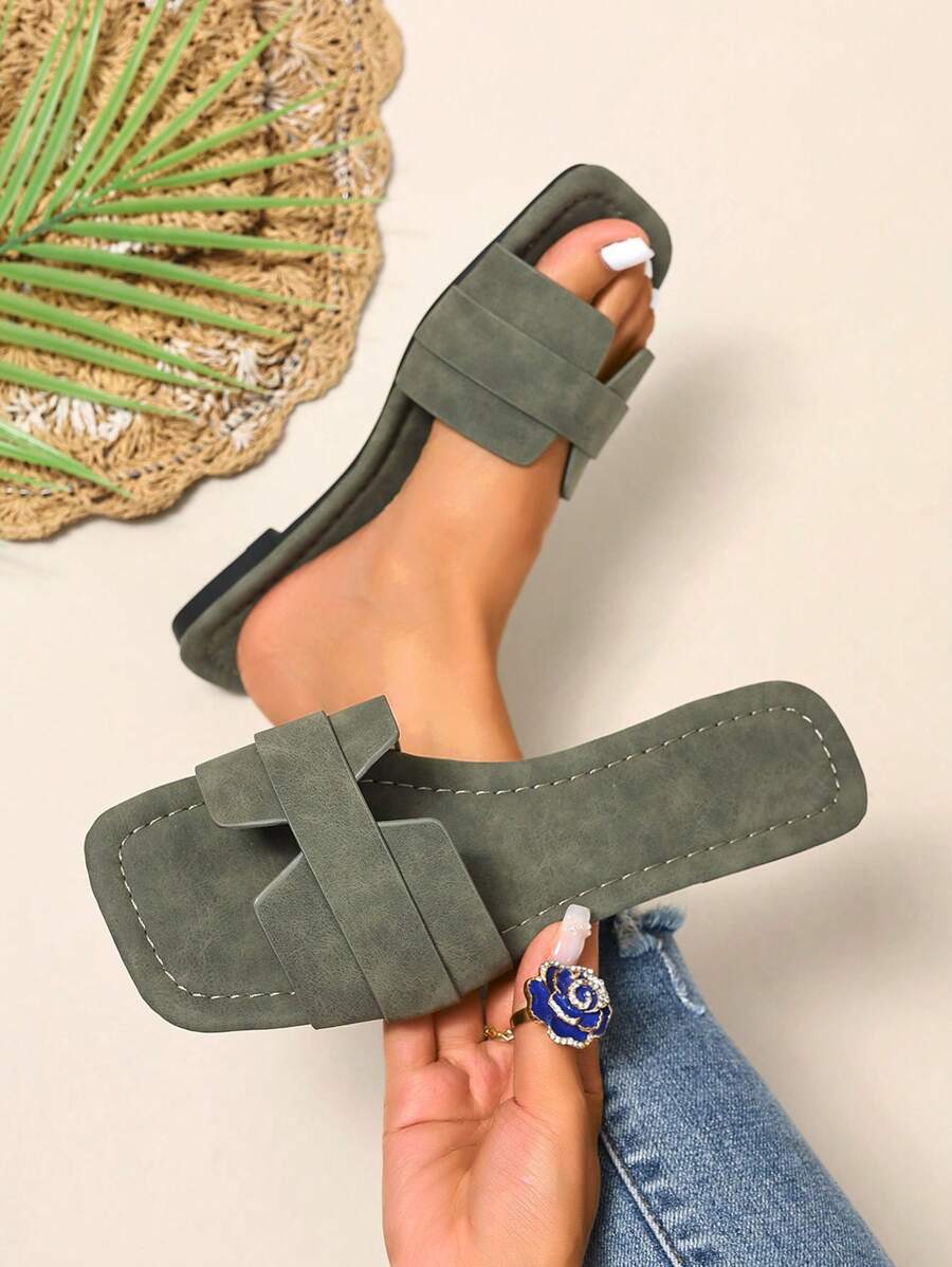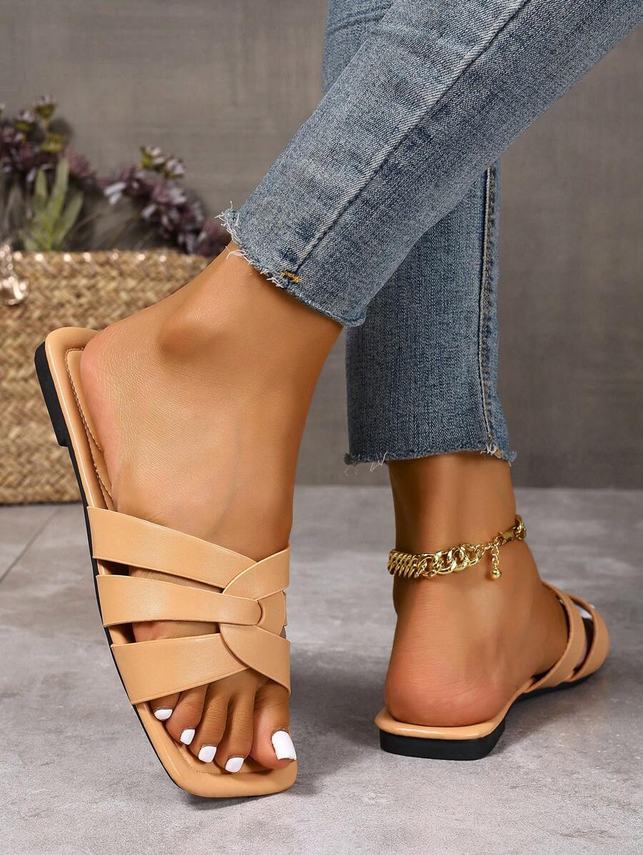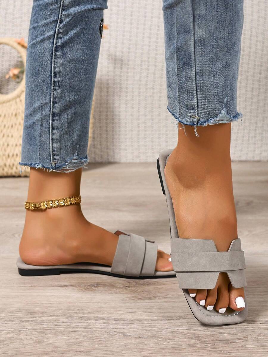 MIU New Spring/Summer Fashion Casual Strap Slip-On Sandals For Women, Comfortable Flat Slide Sandals, Suitable For Beach, Casual Wear