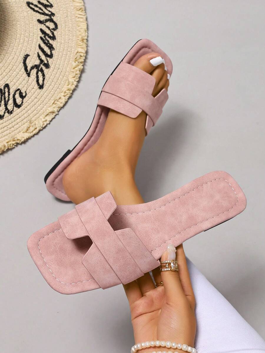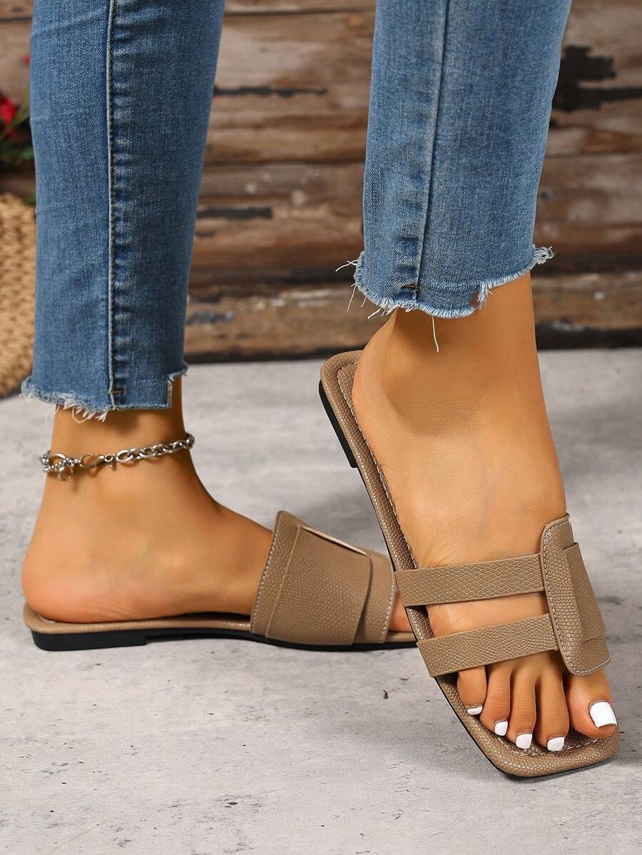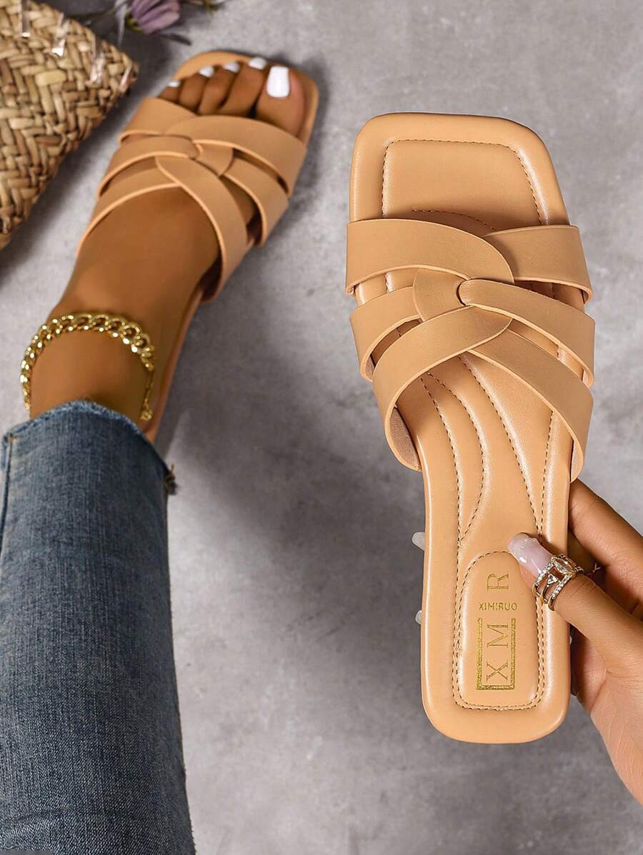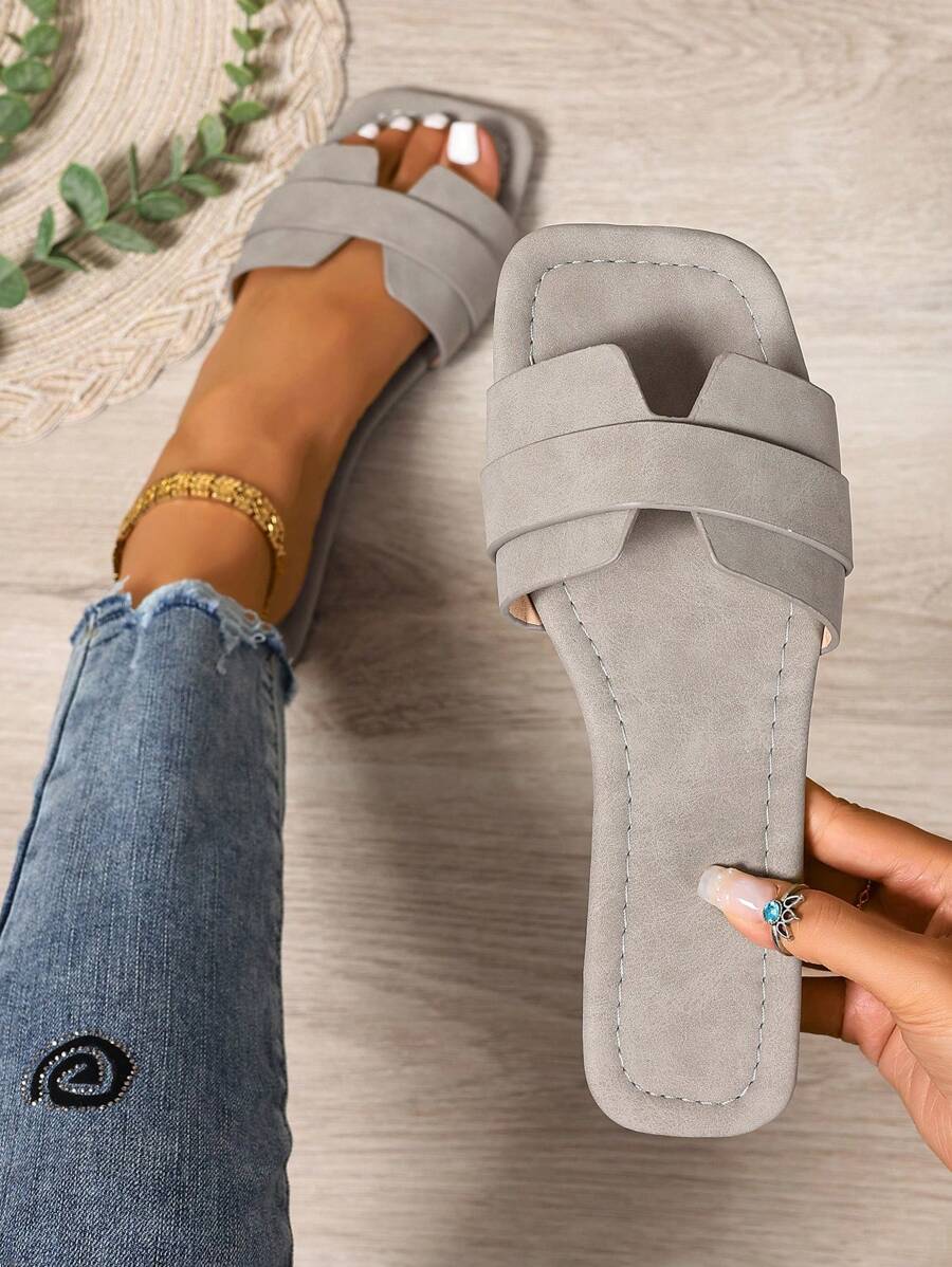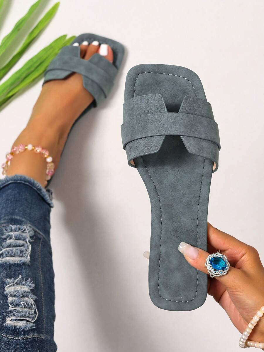 MIU New Spring/Summer Fashion Casual Strap Slip-On Sandals For Women, Comfortable Flat Slide Sandals, Suitable For Beach, Casual Wear