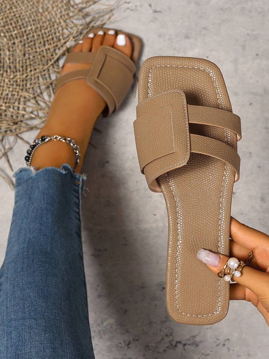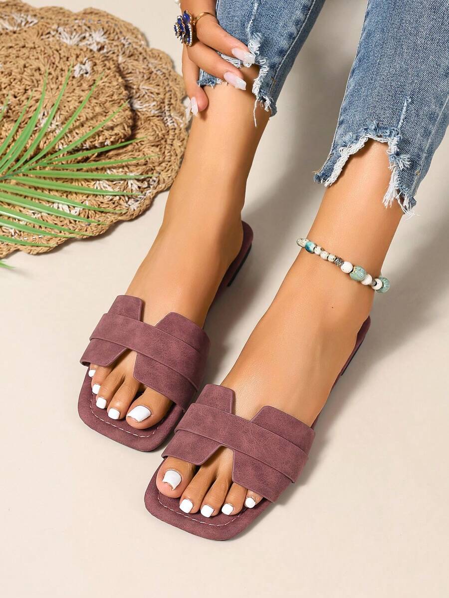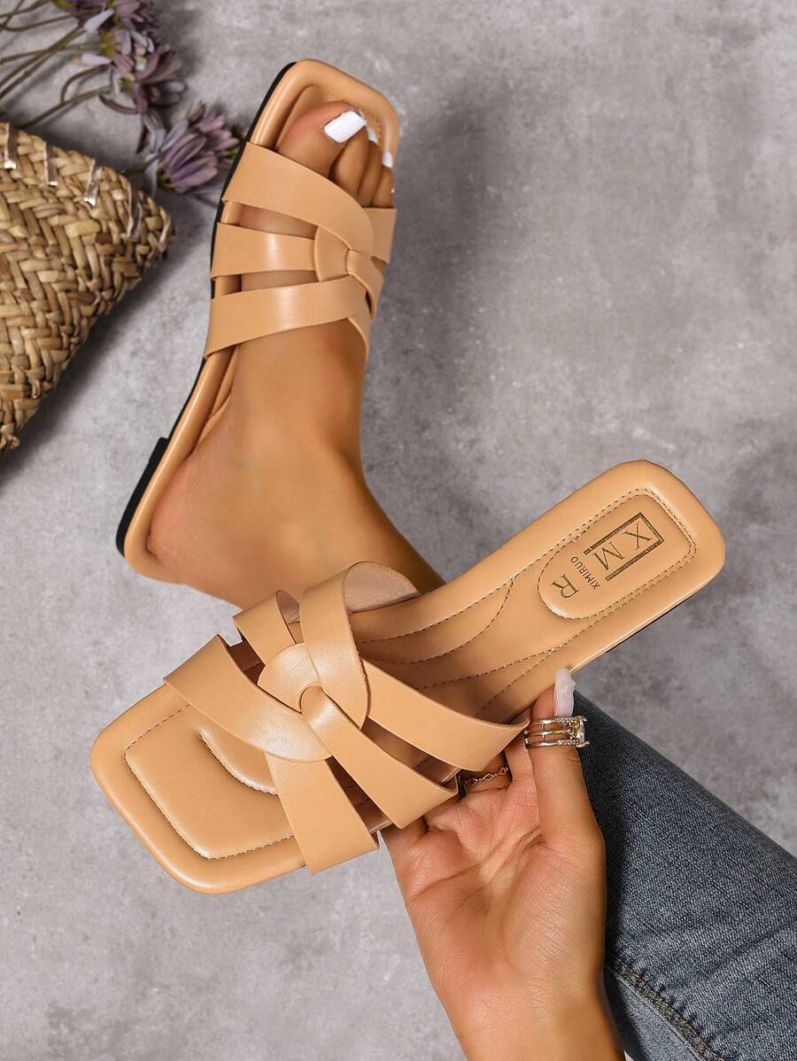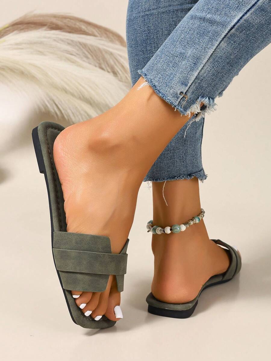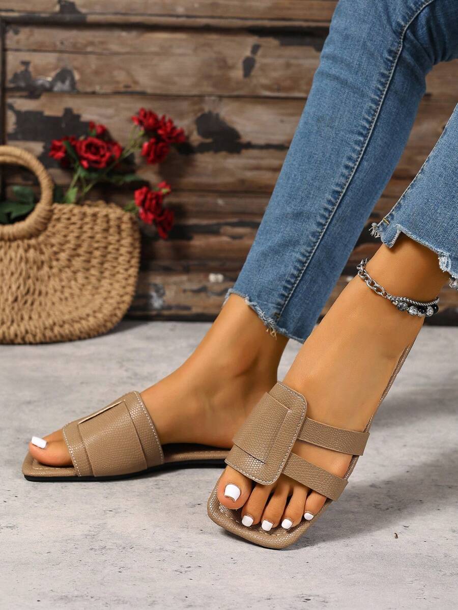 MIU New Spring/Summer Fashion Casual Strap Slip-On Sandals For Women, Comfortable Flat Slide Sandals, Suitable For Beach, Casual Wear