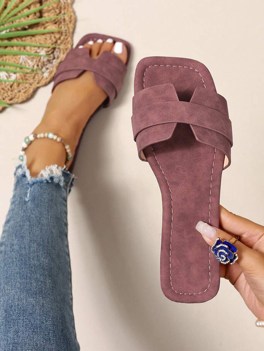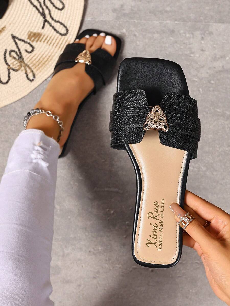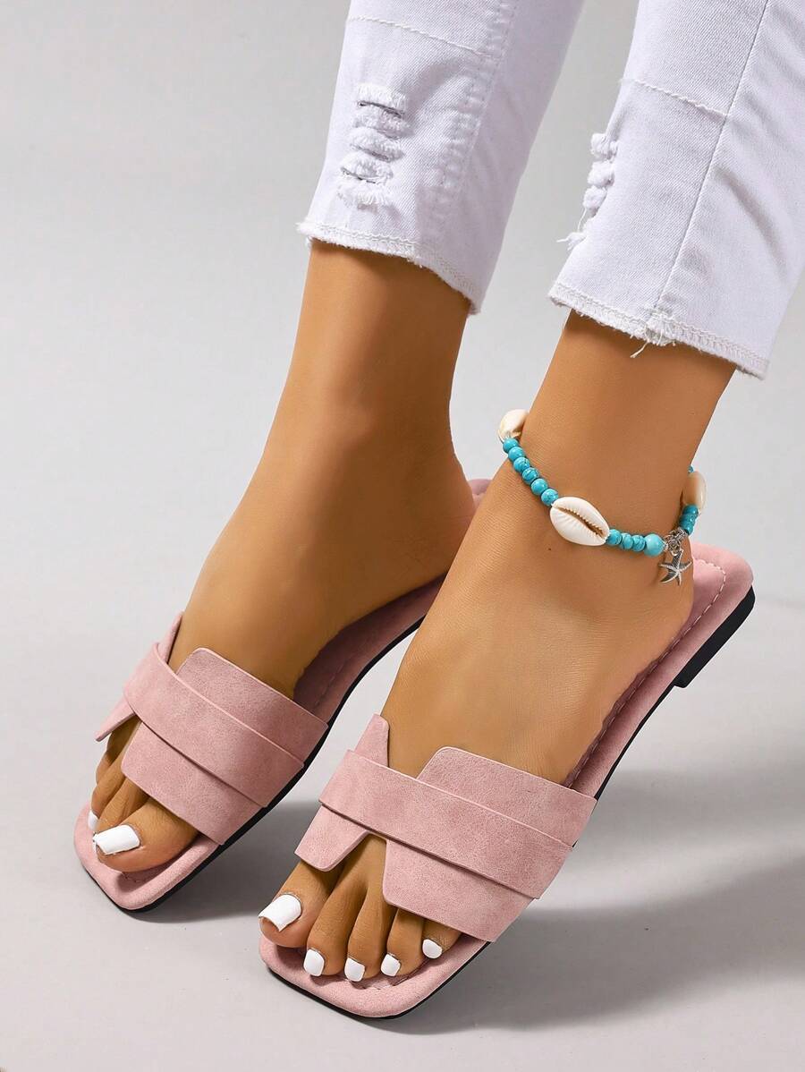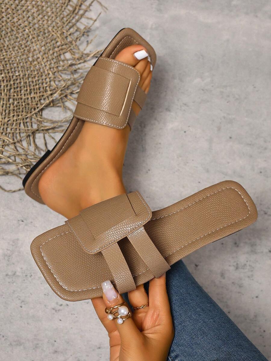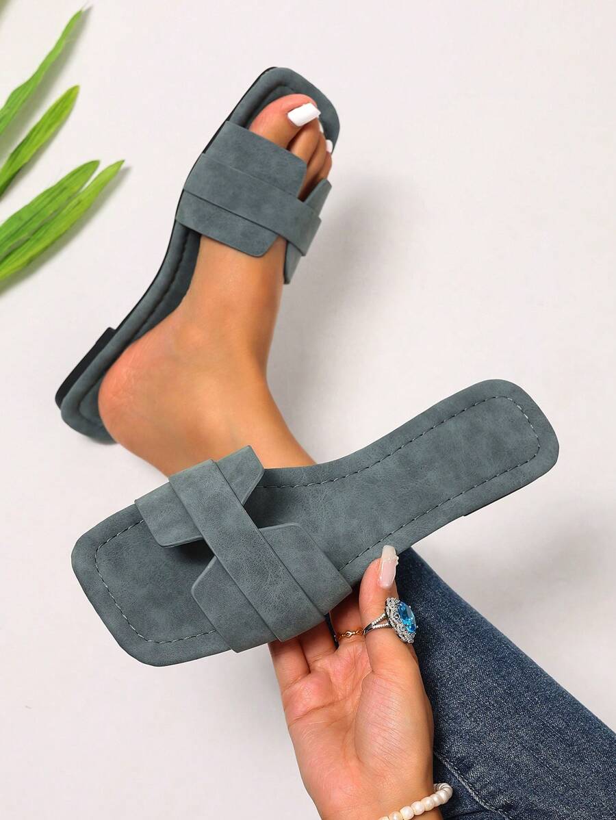 MIU New Spring/Summer Fashion Casual Strap Slip-On Sandals For Women, Comfortable Flat Slide Sandals, Suitable For Beach, Casual Wear