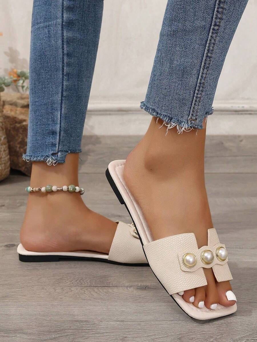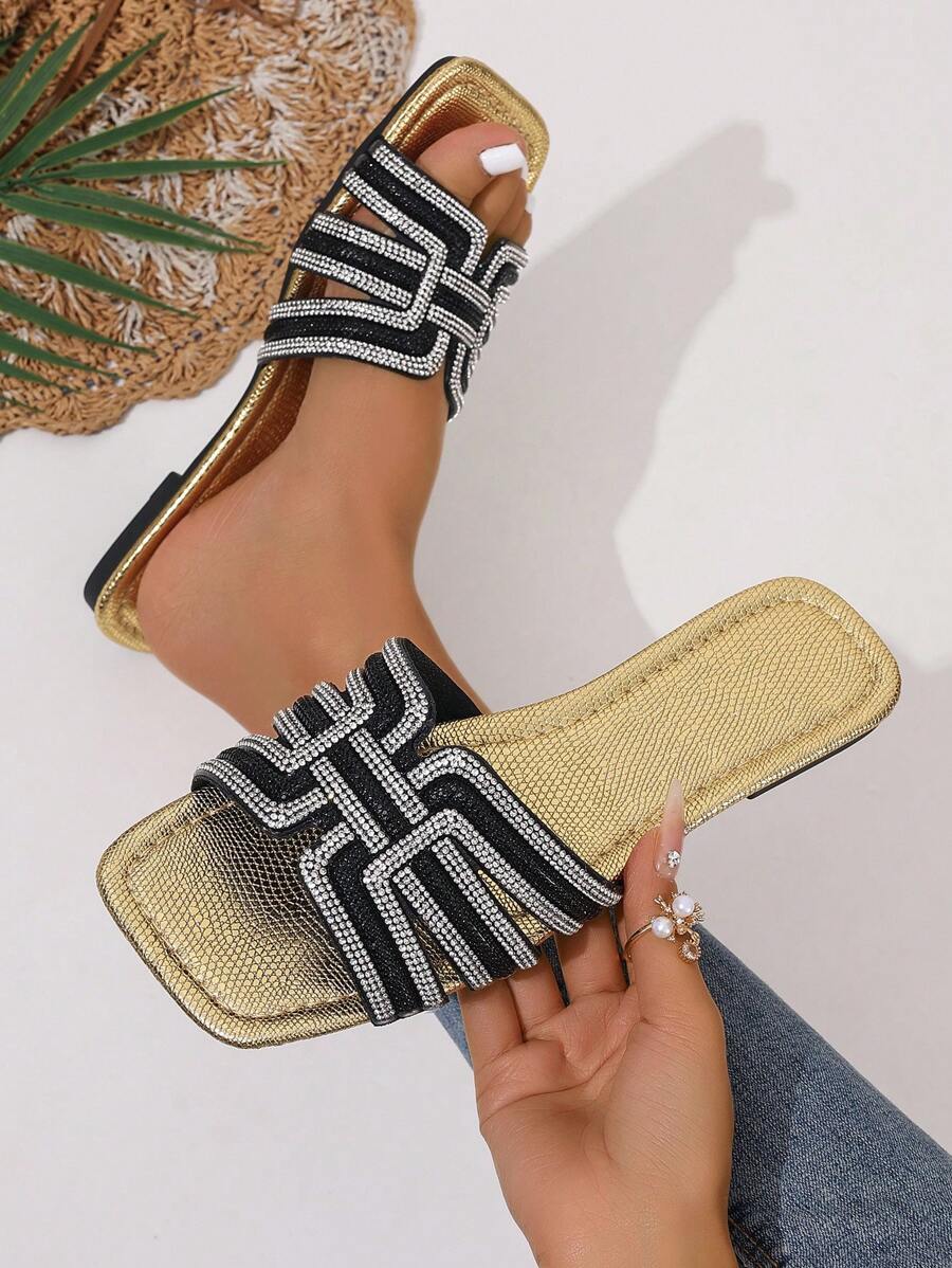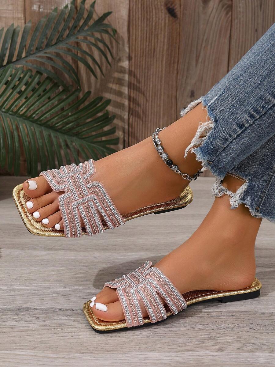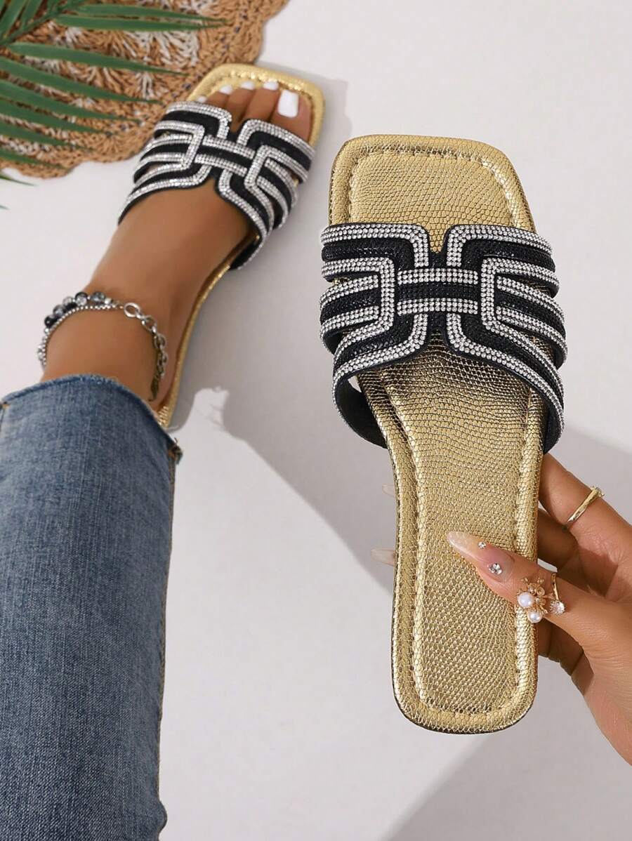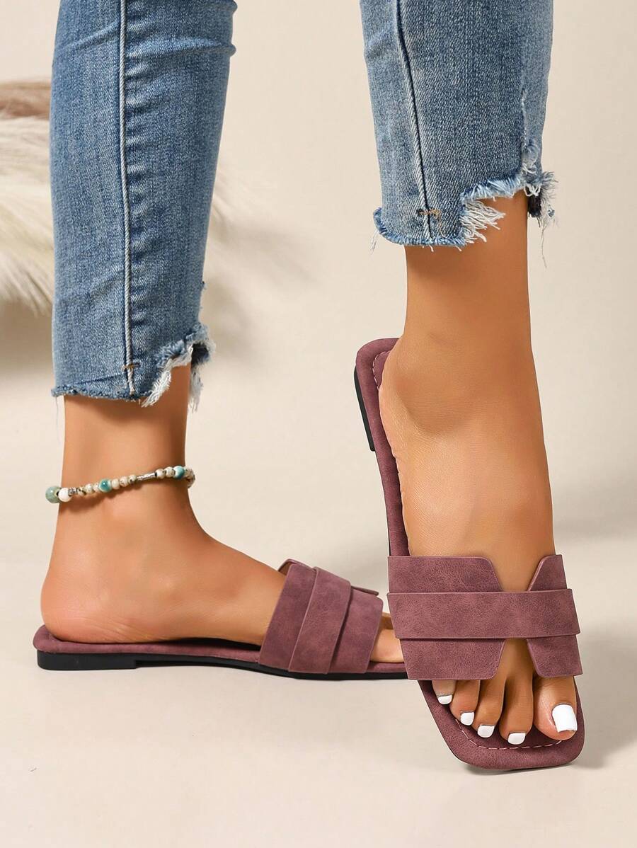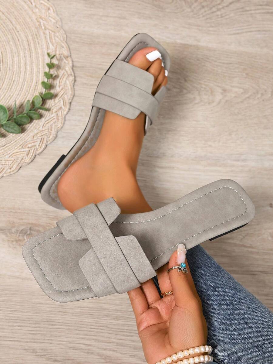 MIU New Spring/Summer Fashion Casual Strap Slip-On Sandals For Women, Comfortable Flat Slide Sandals, Suitable For Beach, Casual Wear