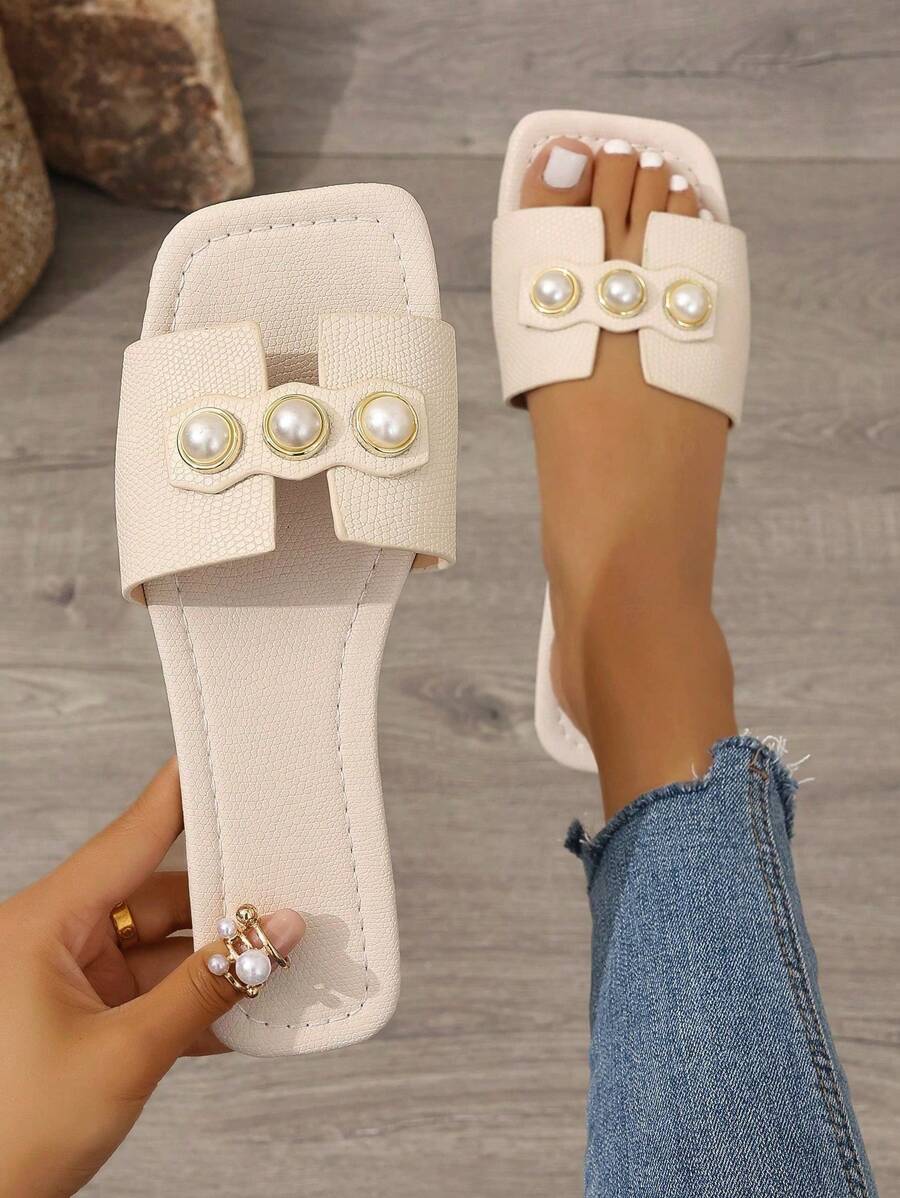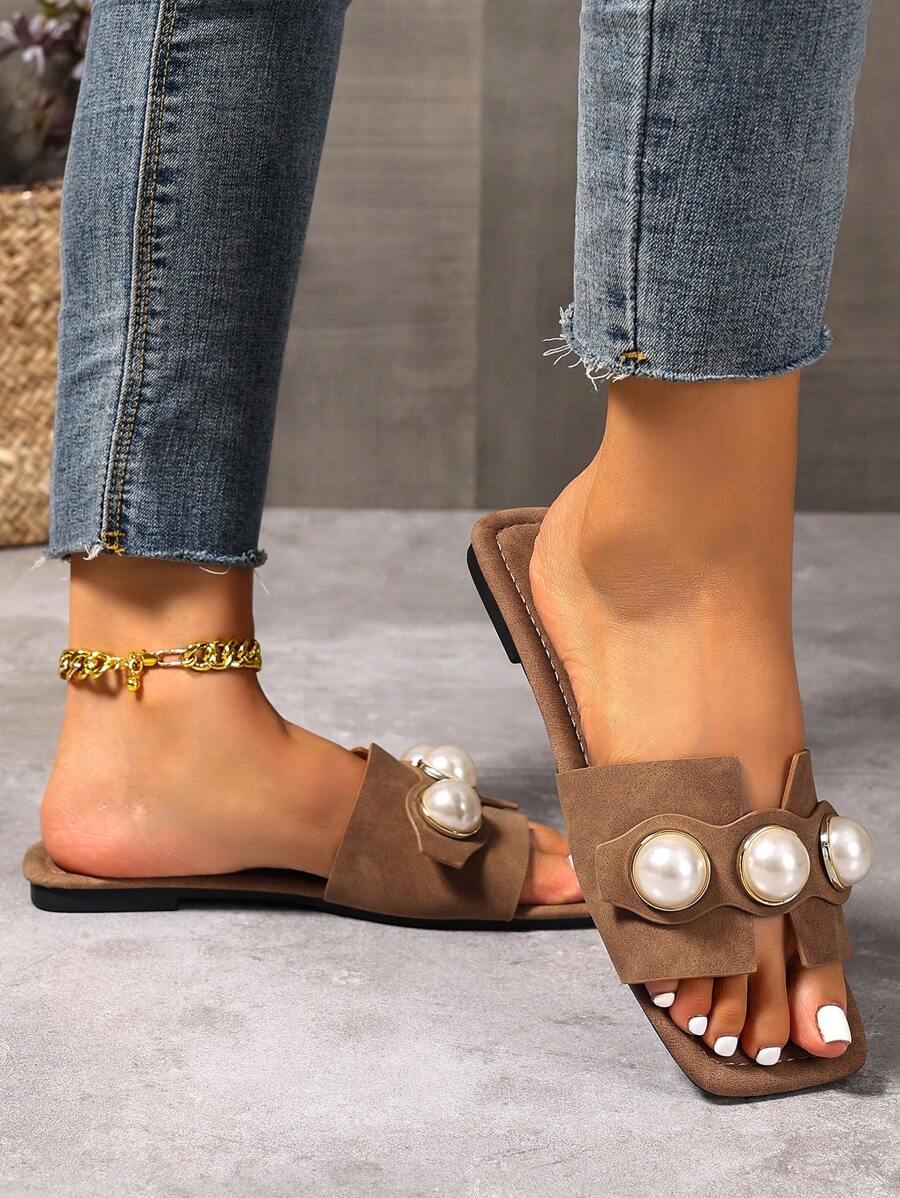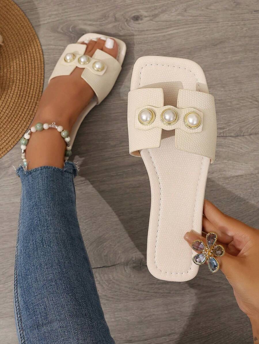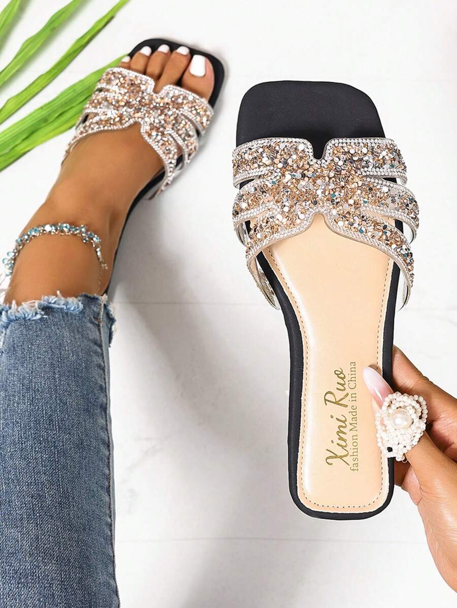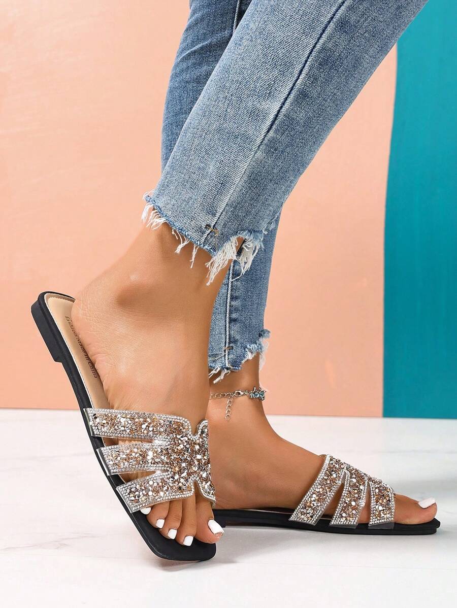 MIU New Spring/Summer Fashion Casual Strap Slip-On Sandals For Women, Comfortable Flat Slide Sandals, Suitable For Beach, Casual Wear
