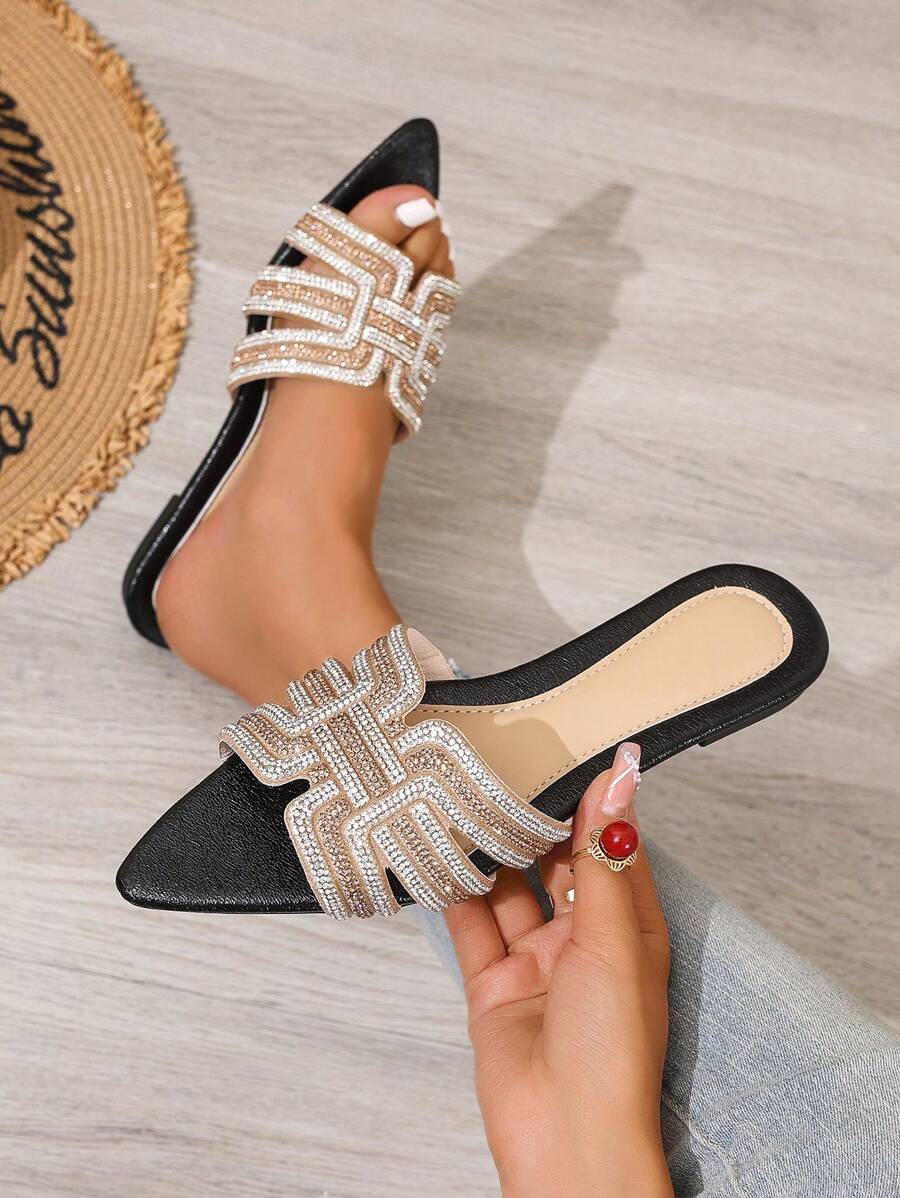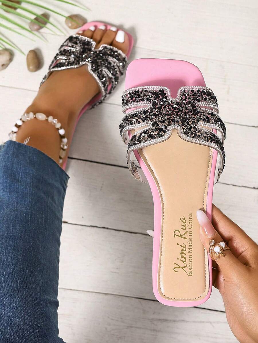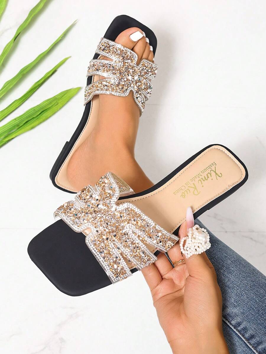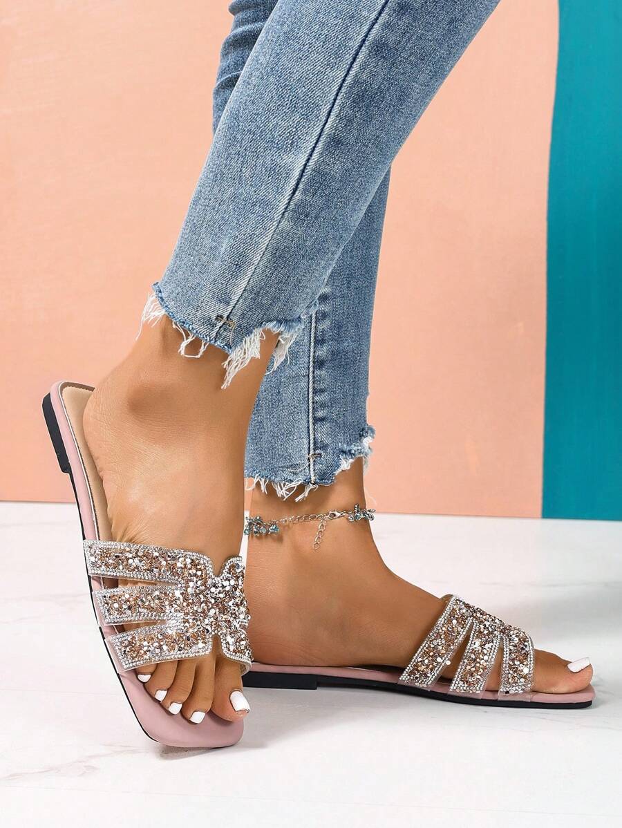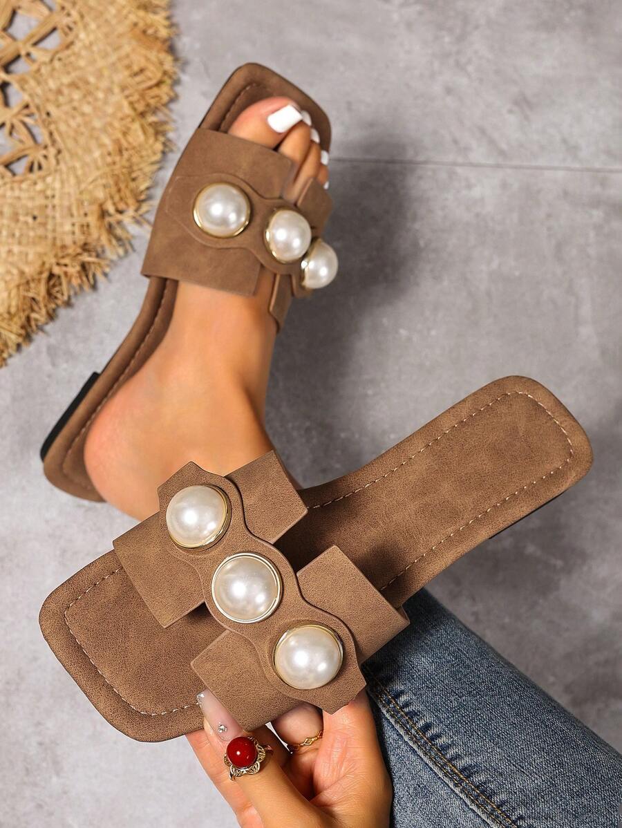 MIU New Spring/Summer Fashion Casual Strap Slip-On Sandals For Women, Comfortable Flat Slide Sandals, Suitable For Beach, Casual Wear