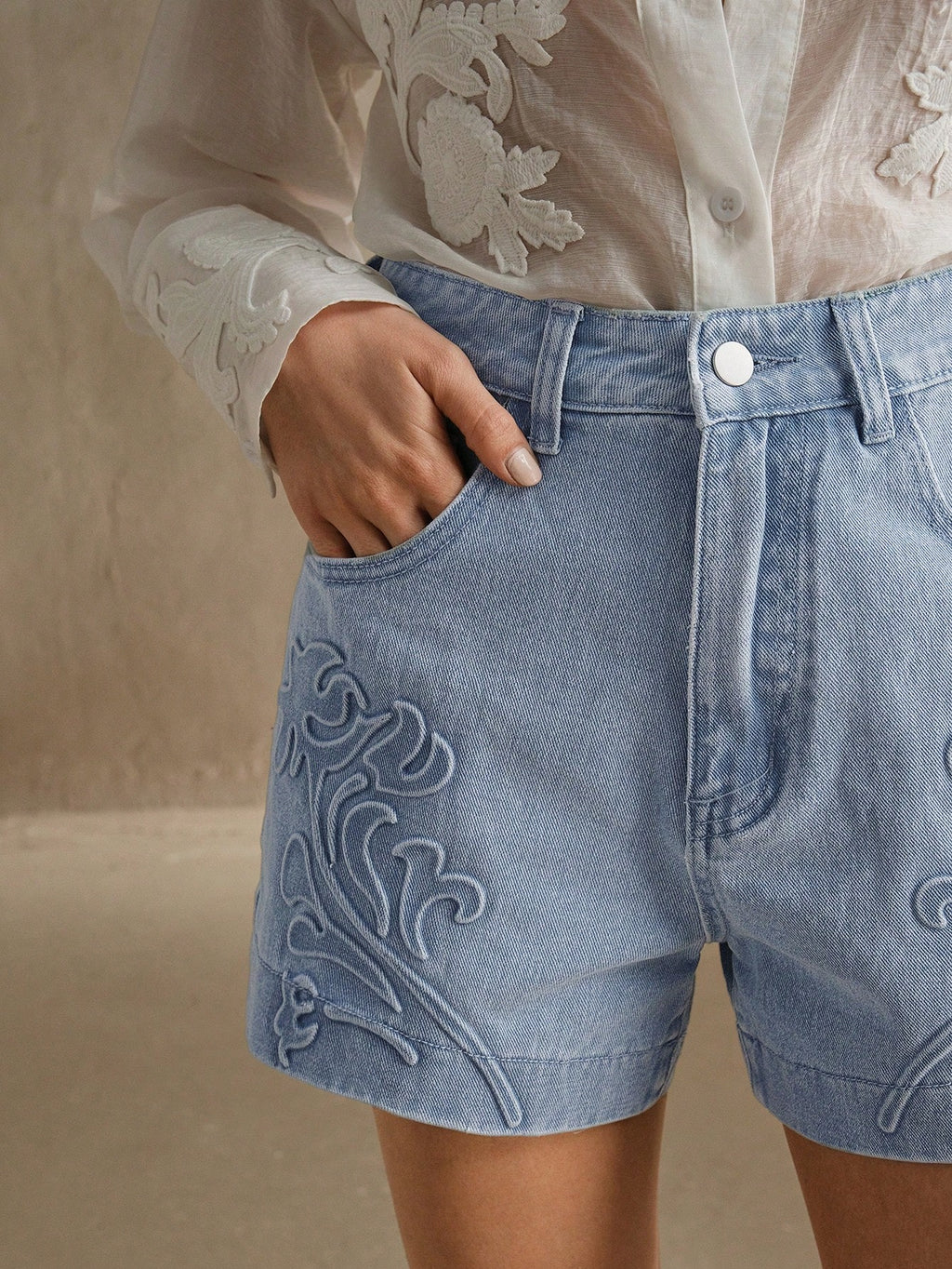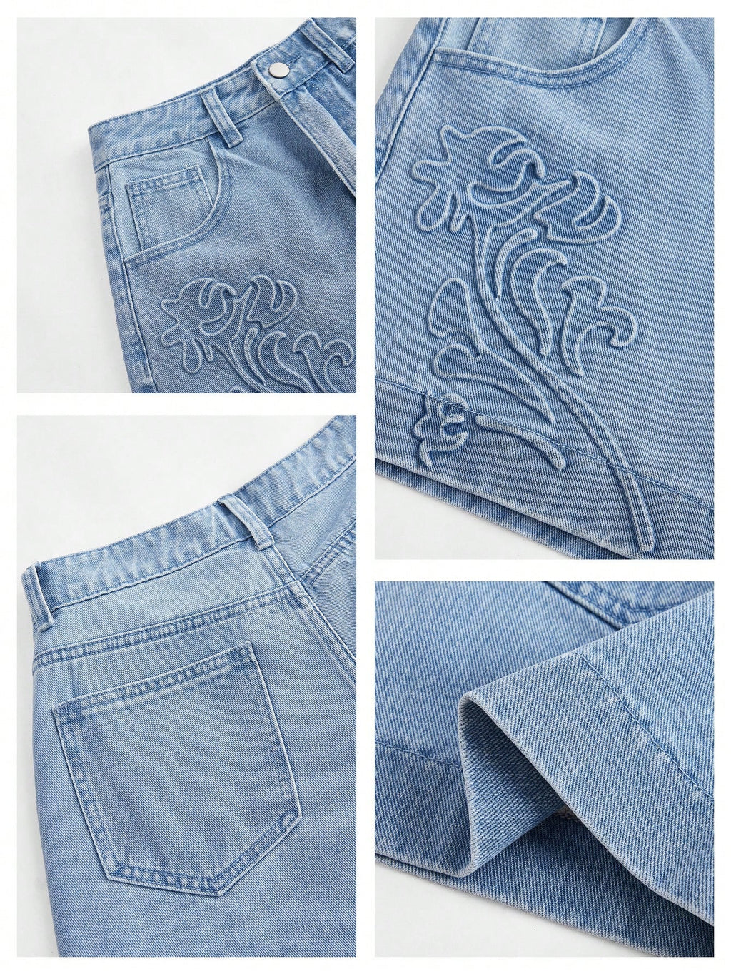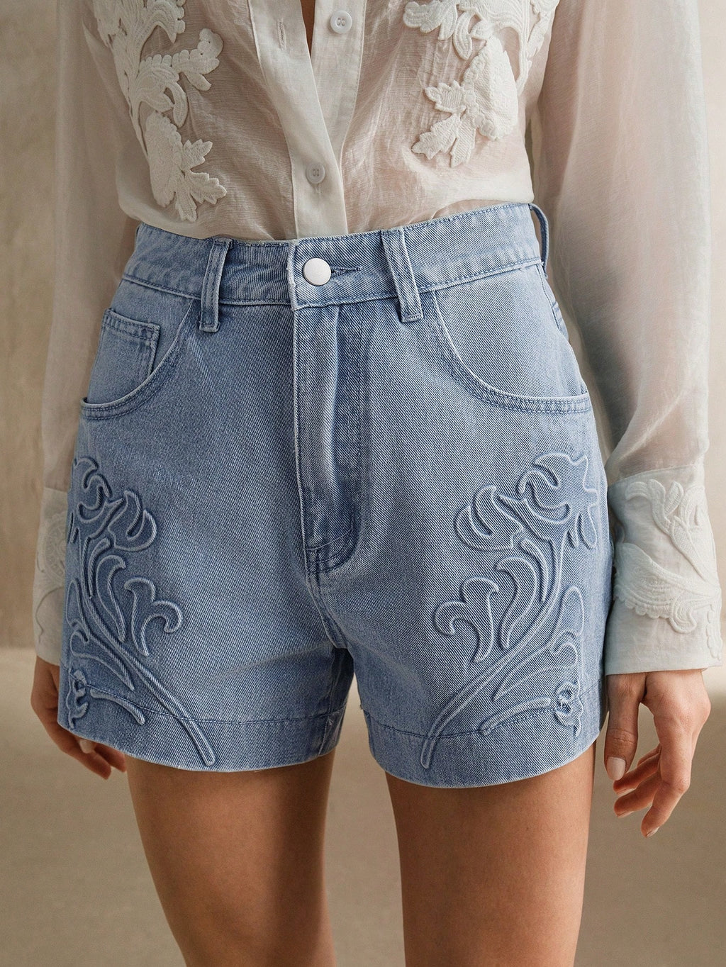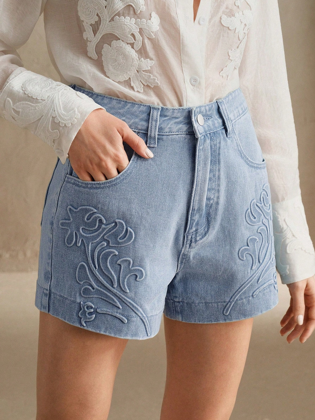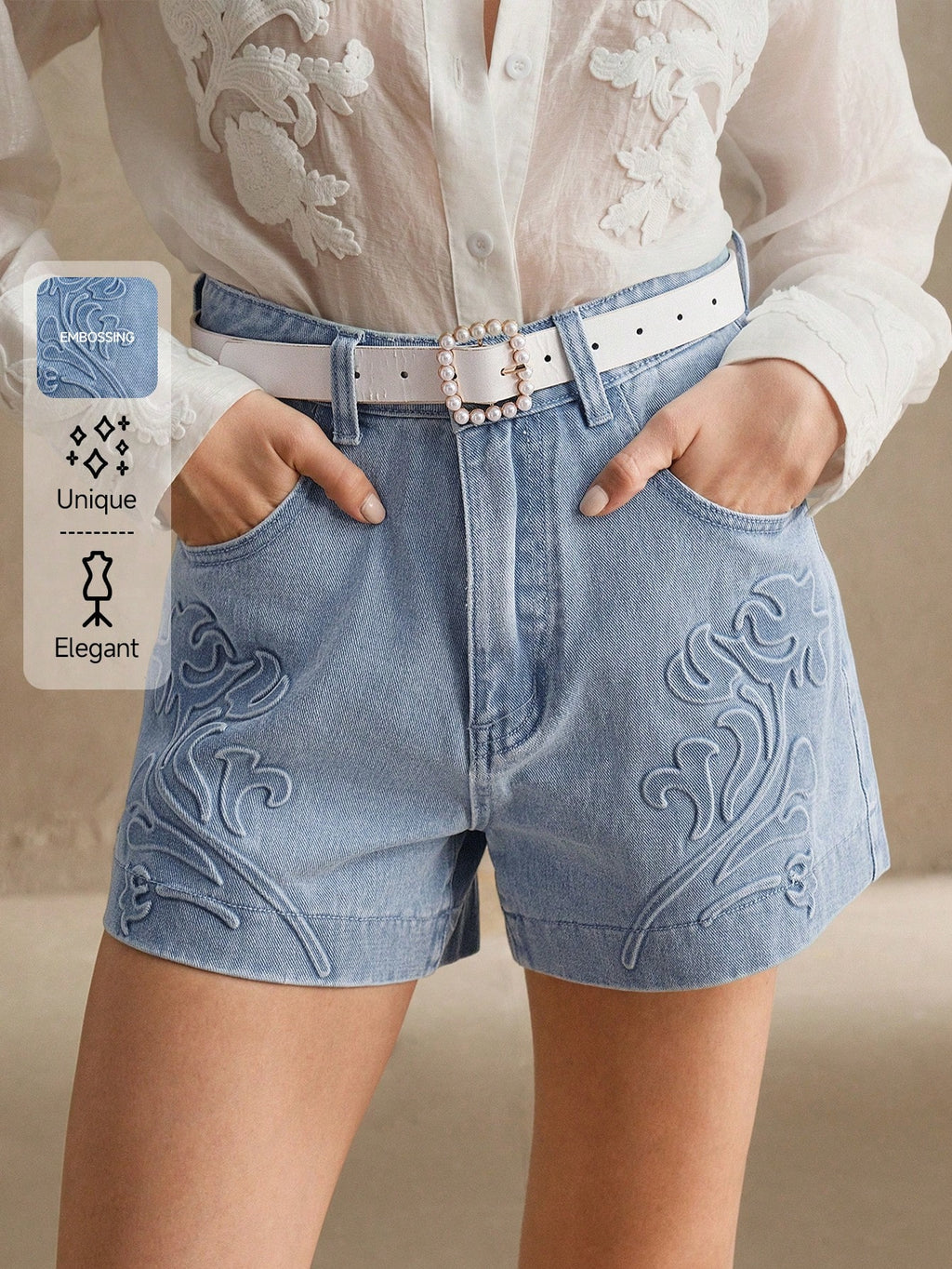 MIU Personalized Embossed Relaxed Fit Casual Denim Shorts For Women, Summer