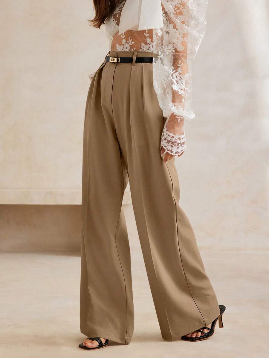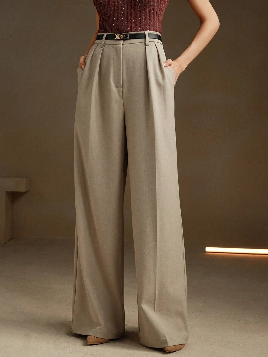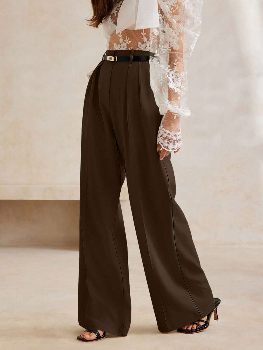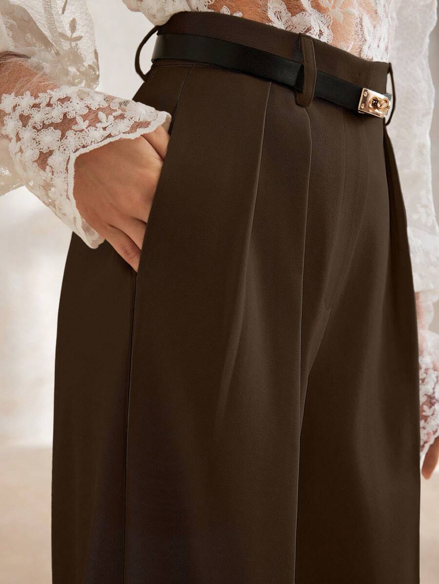 MIU Plain Pocket Simple Elegant Urban Women Dress Pants, Casual Daily Wear